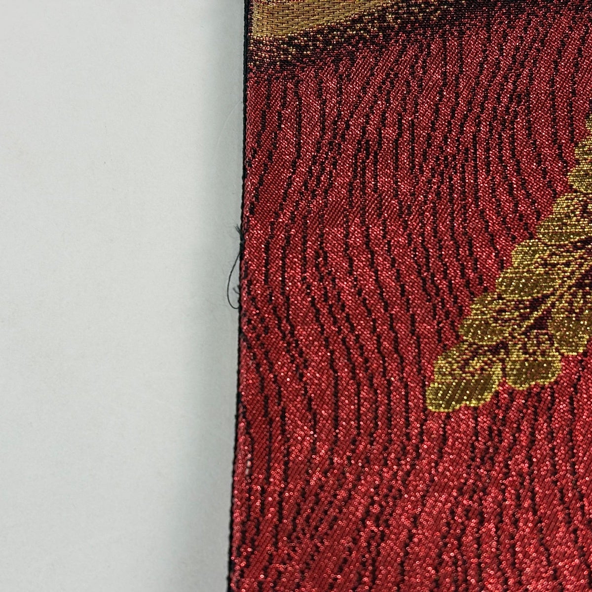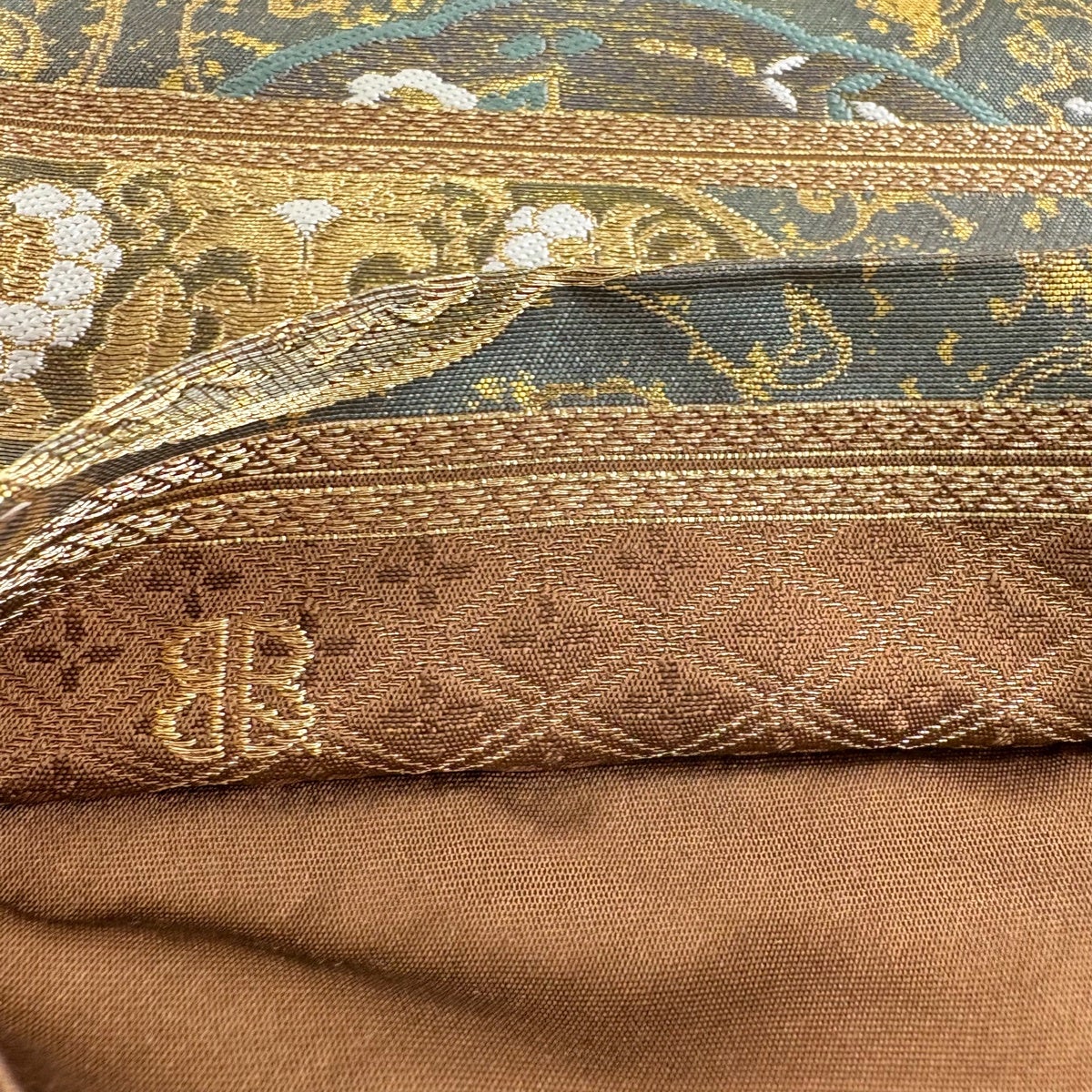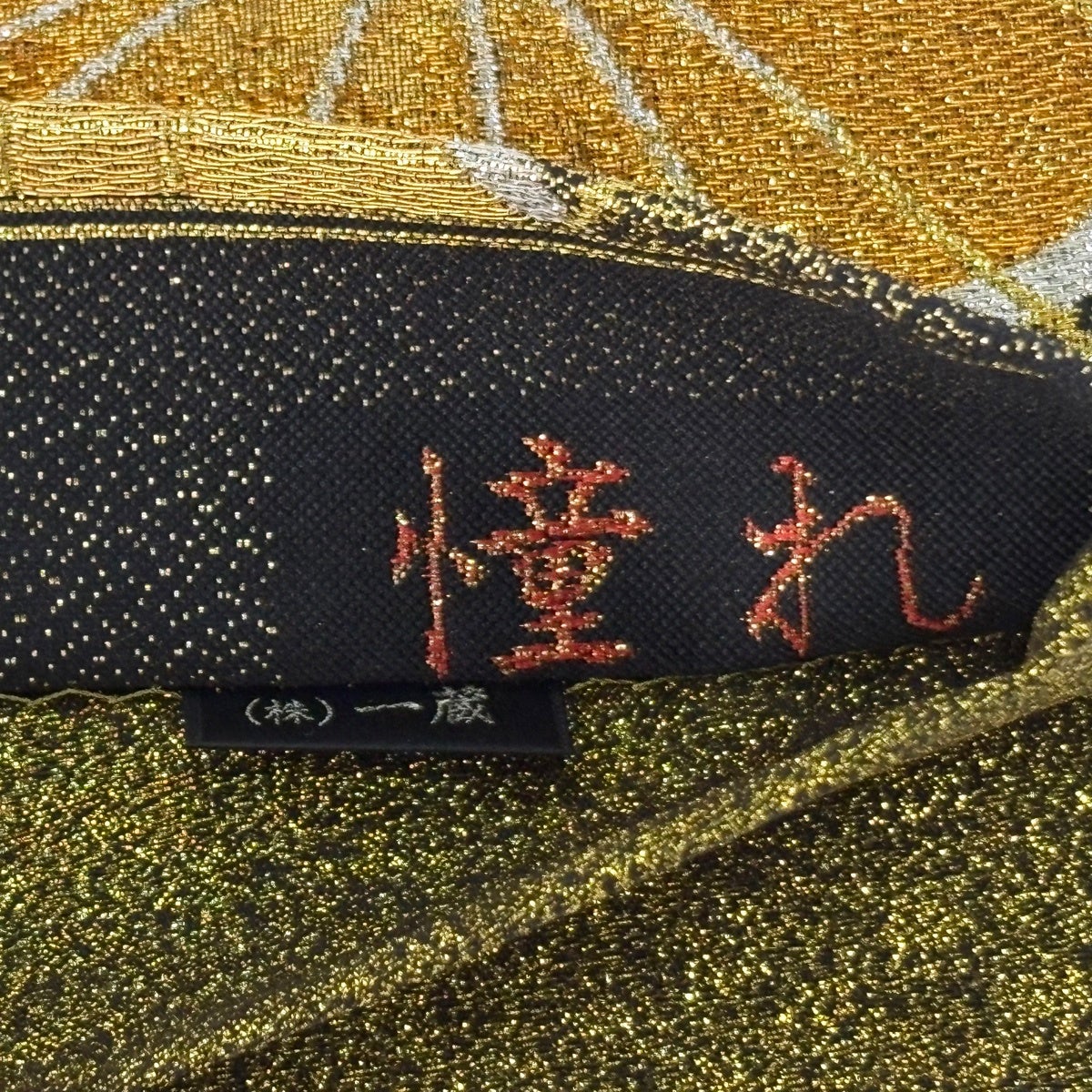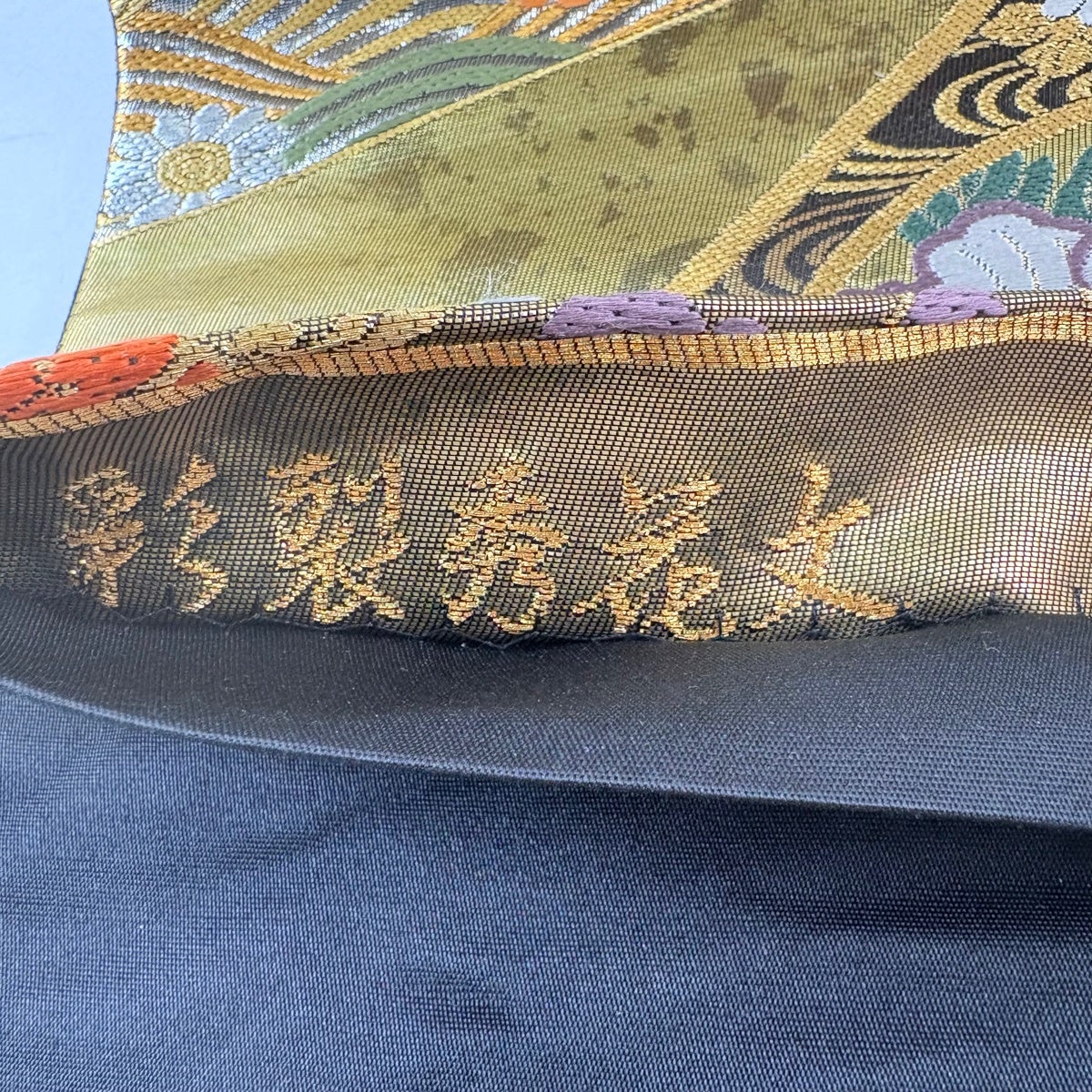 袋帯 秀品 服部織物 落款あり 華文 鳳凰 金糸 箔 金色 六通 正絹