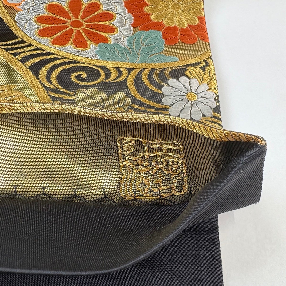 【美品】 袋帯 秀品 やまと 御所車 桜 箔 金銀糸 黒 六通 正絹