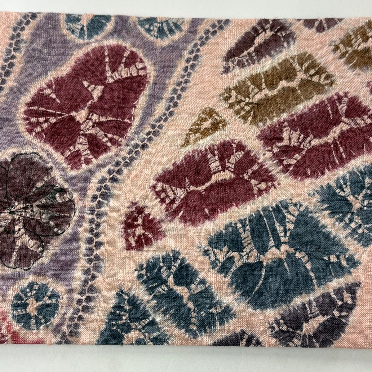 【美品】 名古屋帯 秀品 紬地 花 霞 絞り サーモンピンク 正絹