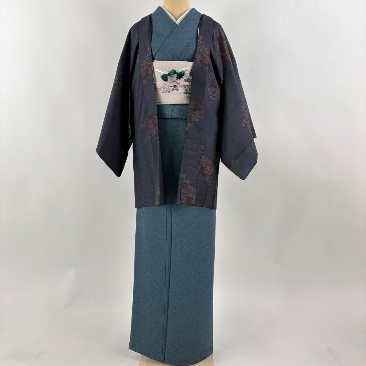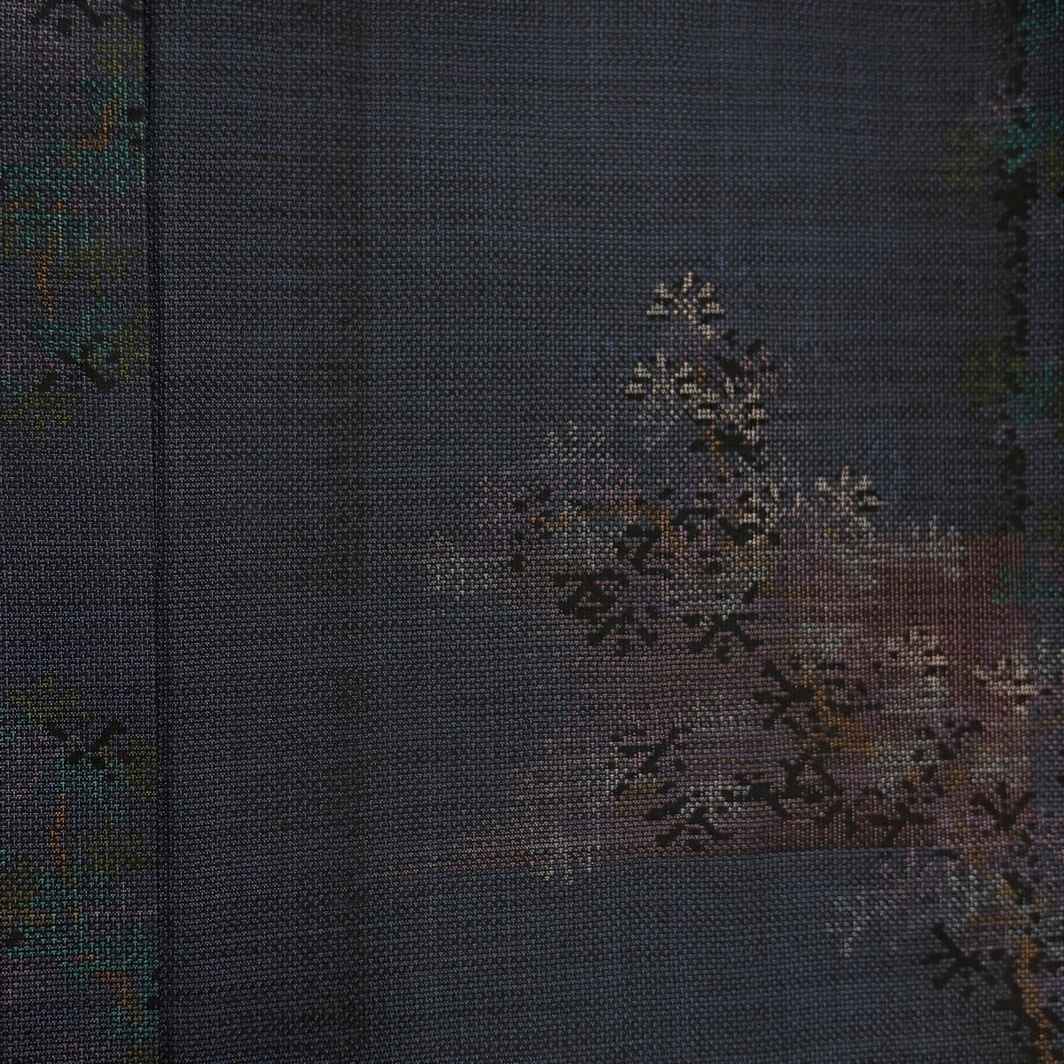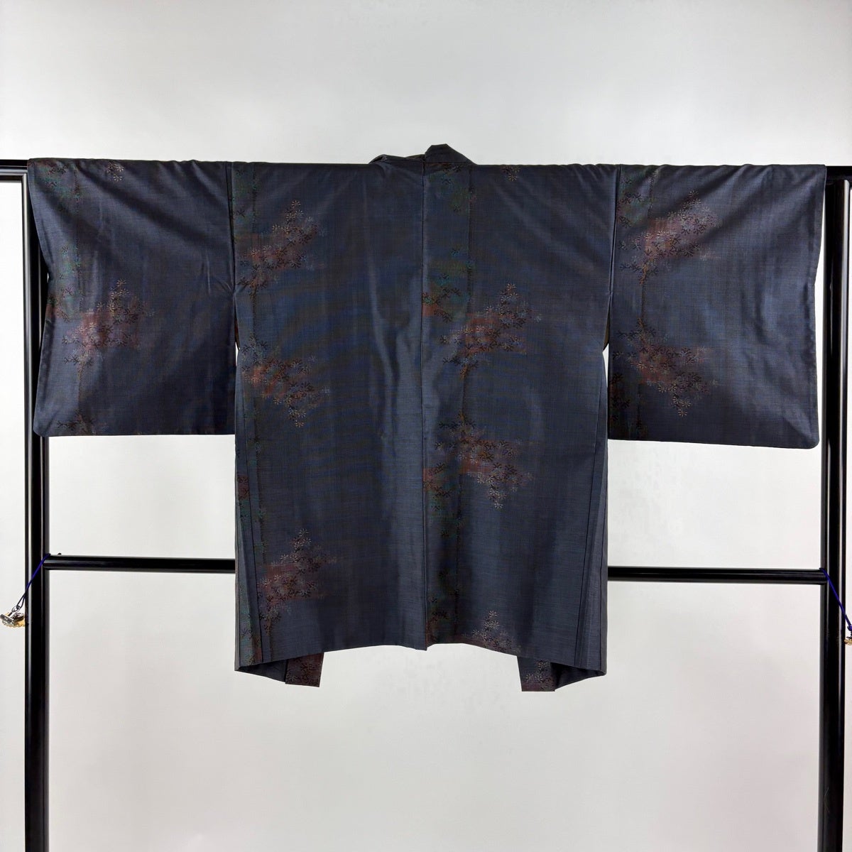 羽織 身丈82cm 裄丈64.5cm M 紬地 枝葉 紺色 正絹 秀品
