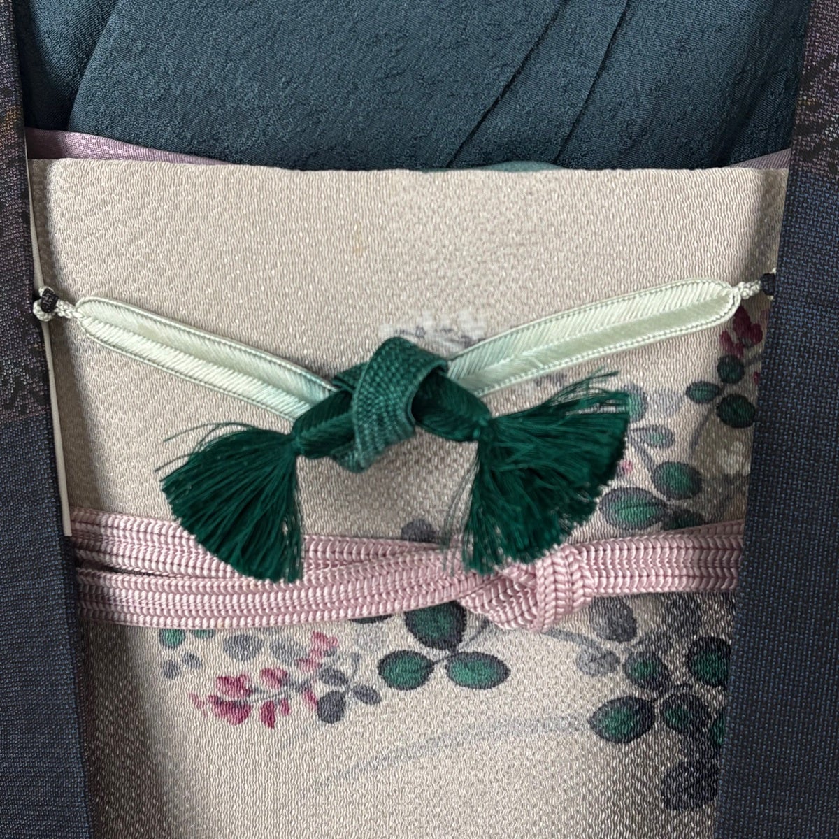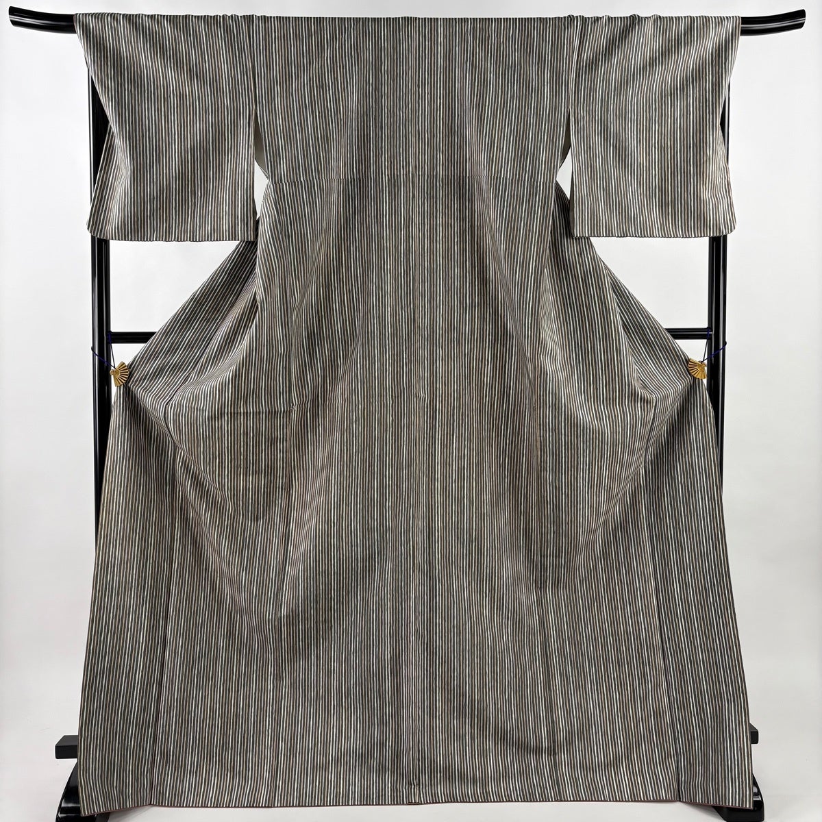 紬 身丈160cm 裄丈65.5cm M 袷 桜 鈴 灰色 正絹 秀品
