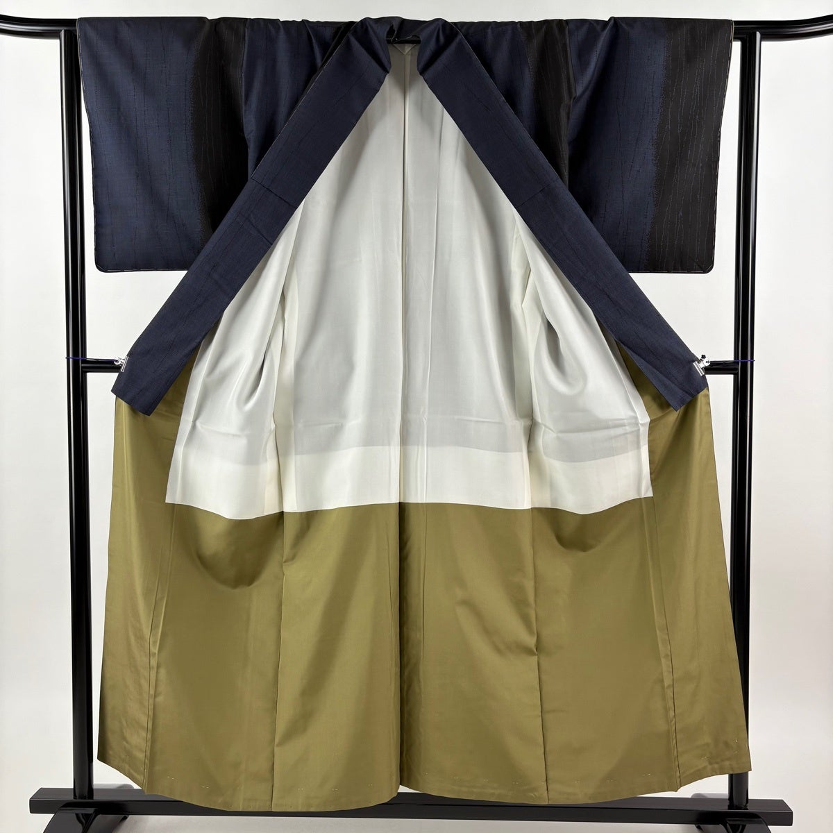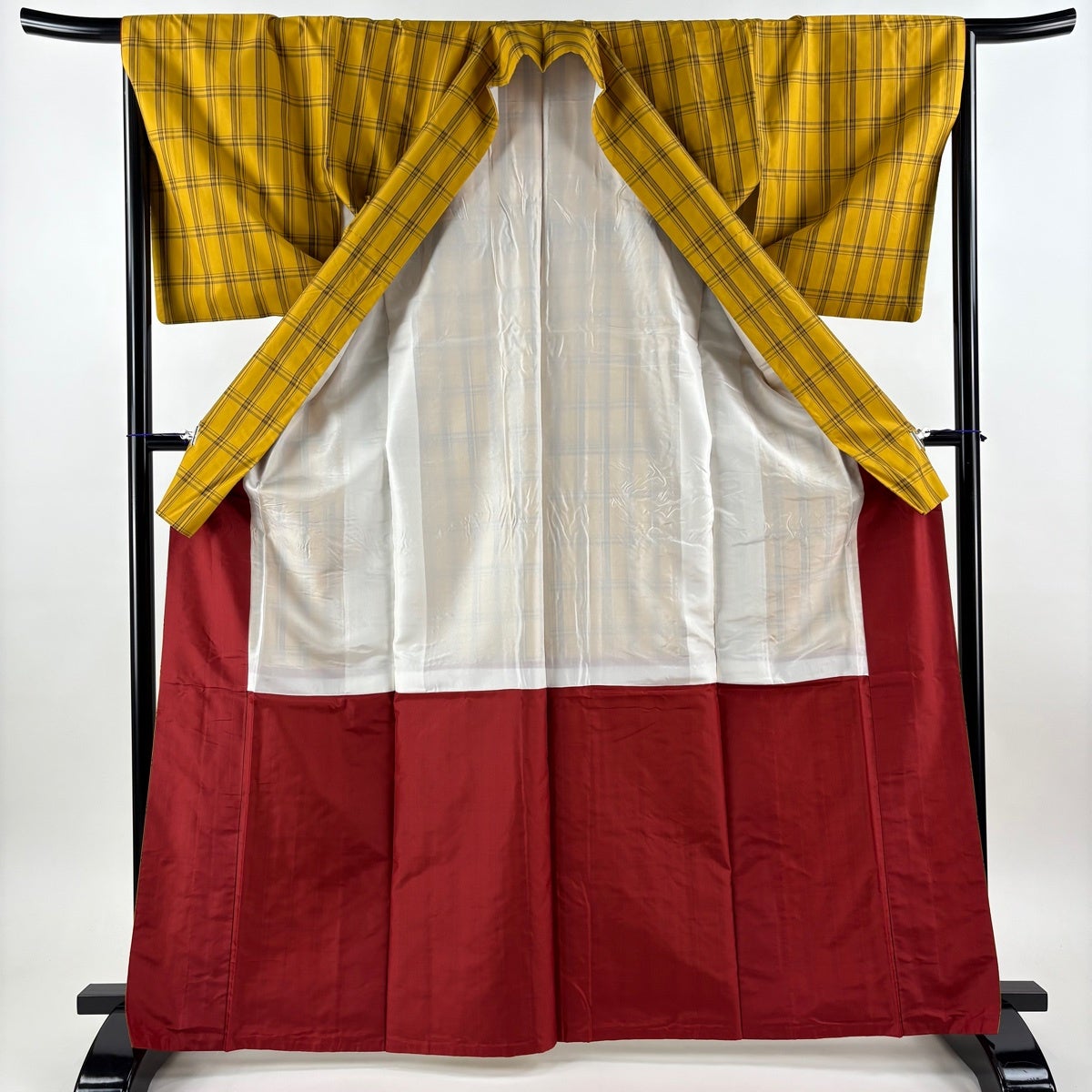 紬 身丈167cm 裄丈66.5cm M 袷 格子 黄土色 正絹 秀品