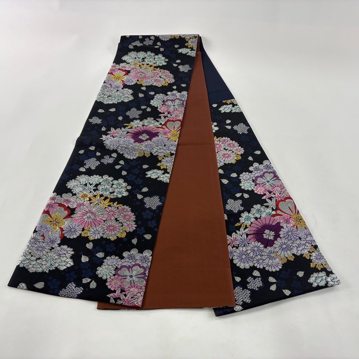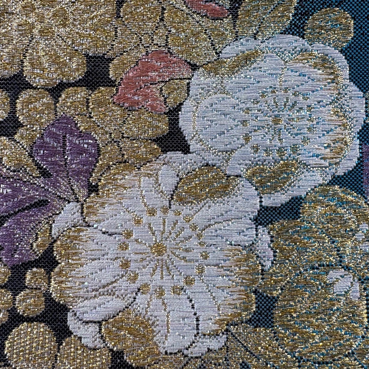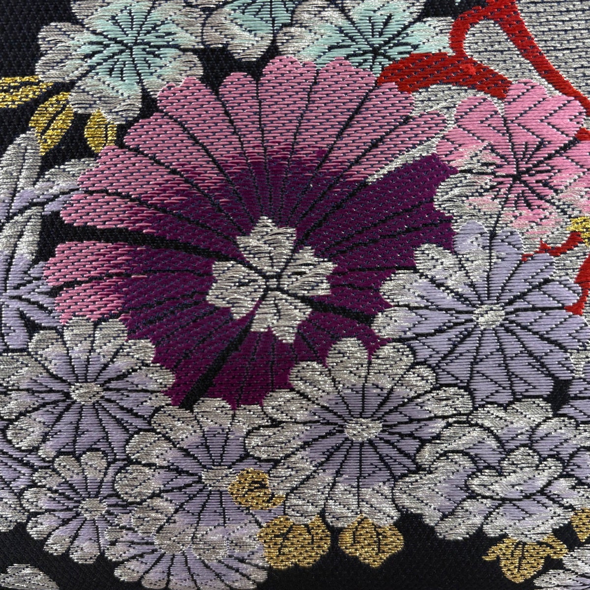 【美品】 袋帯 秀品 振袖向き 菊 桜 金銀糸 唐織 紫 六通 正絹