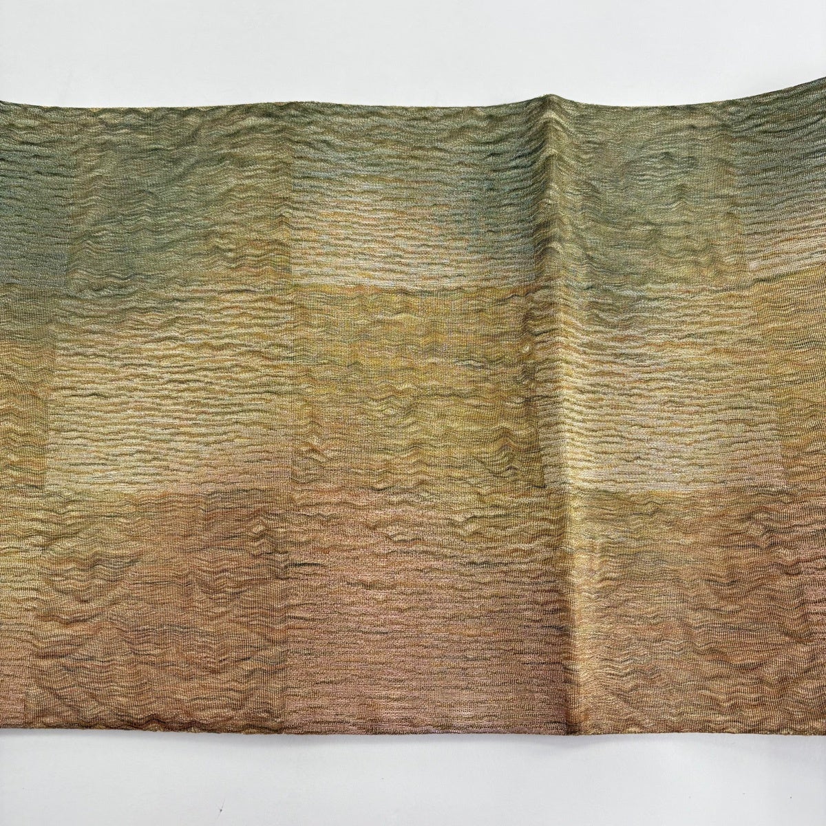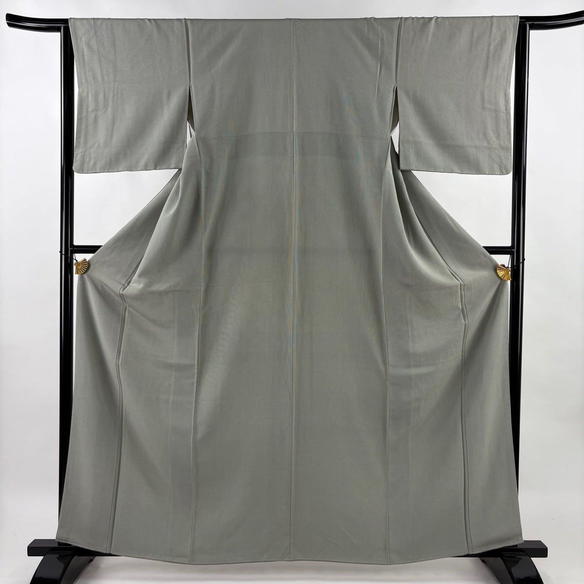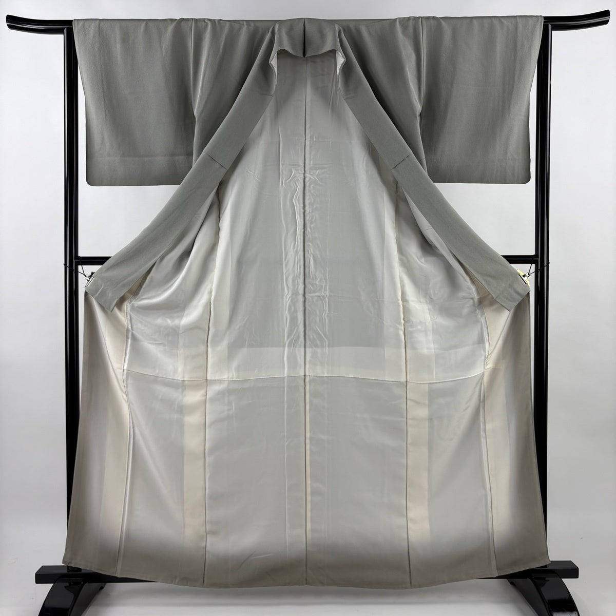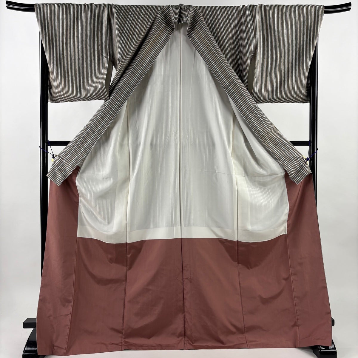 小紋 身丈162cm 裄丈62cm S 袷 ぼかし 縮緬 灰茶 正絹 秀品