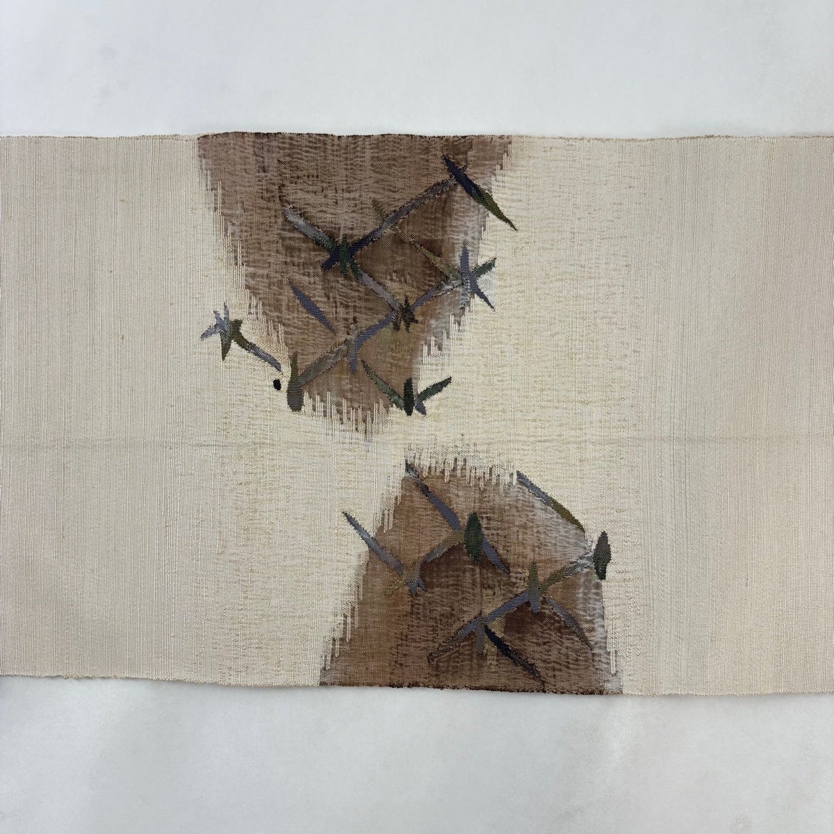 袋帯 秀品 夏帯 絽 萩 草花 金銀糸 箔 ベージュ 六通 正絹