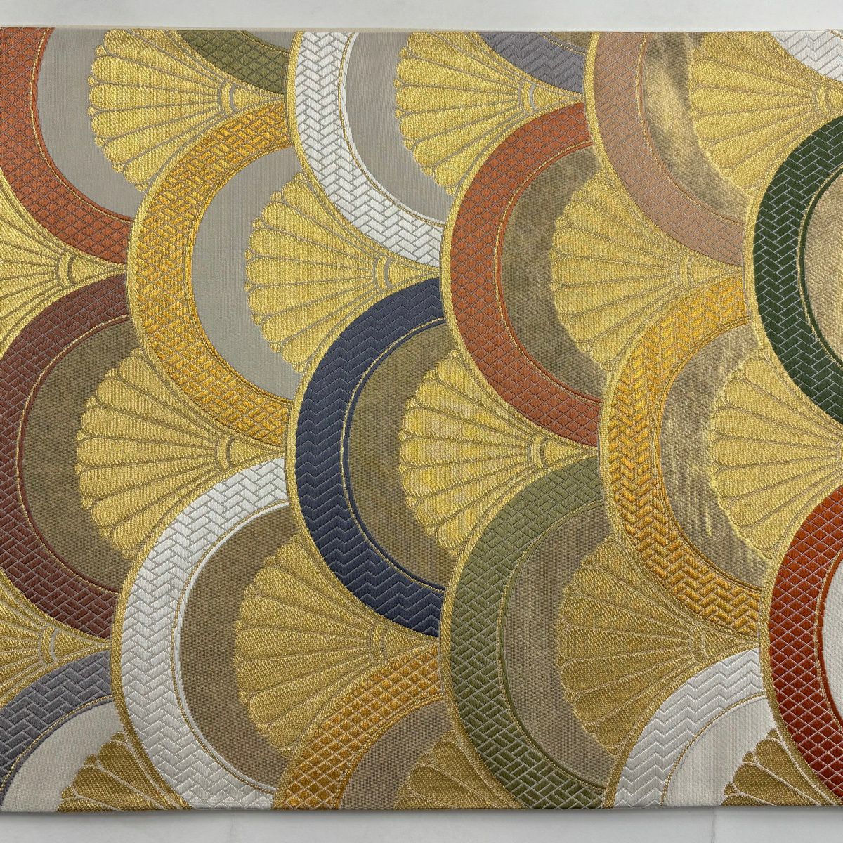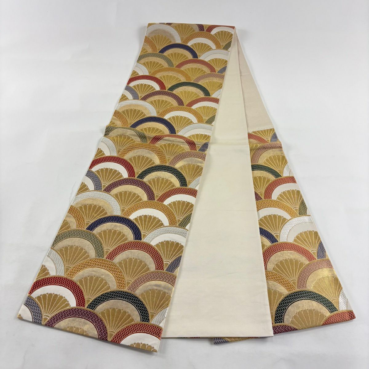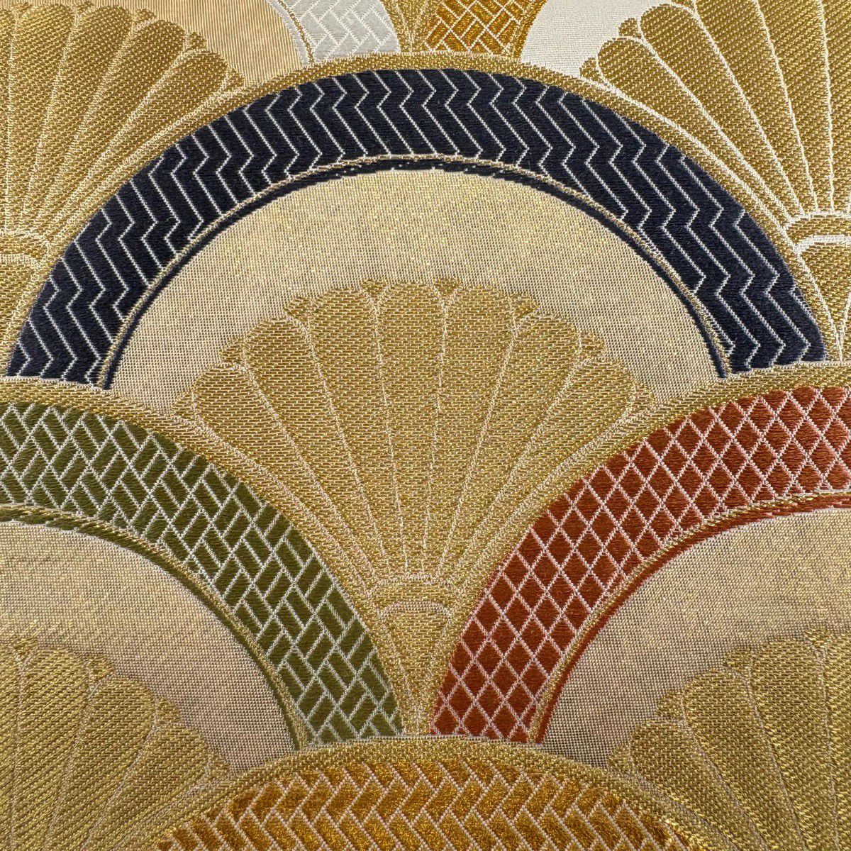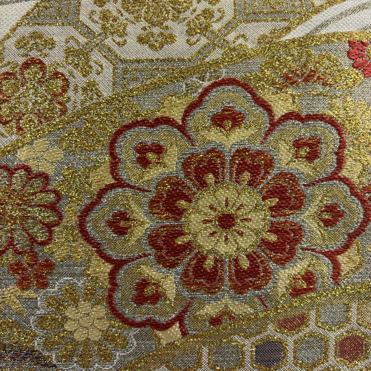 【美品】 袋帯 秀品 扇面 草花 金銀糸 ベージュ お太鼓柄 正絹