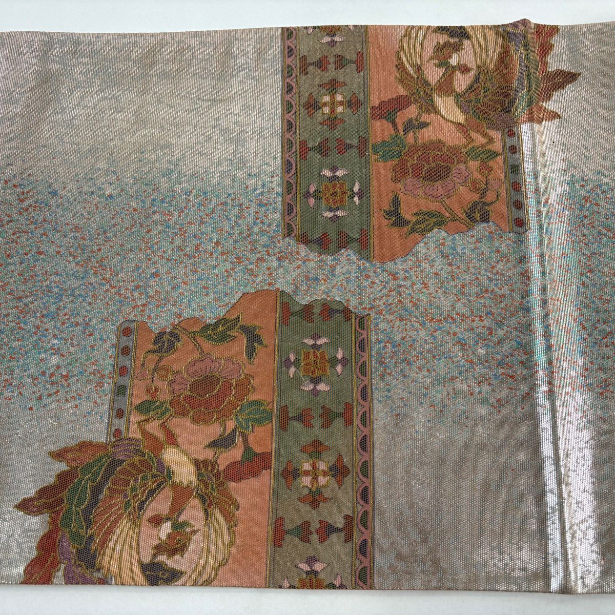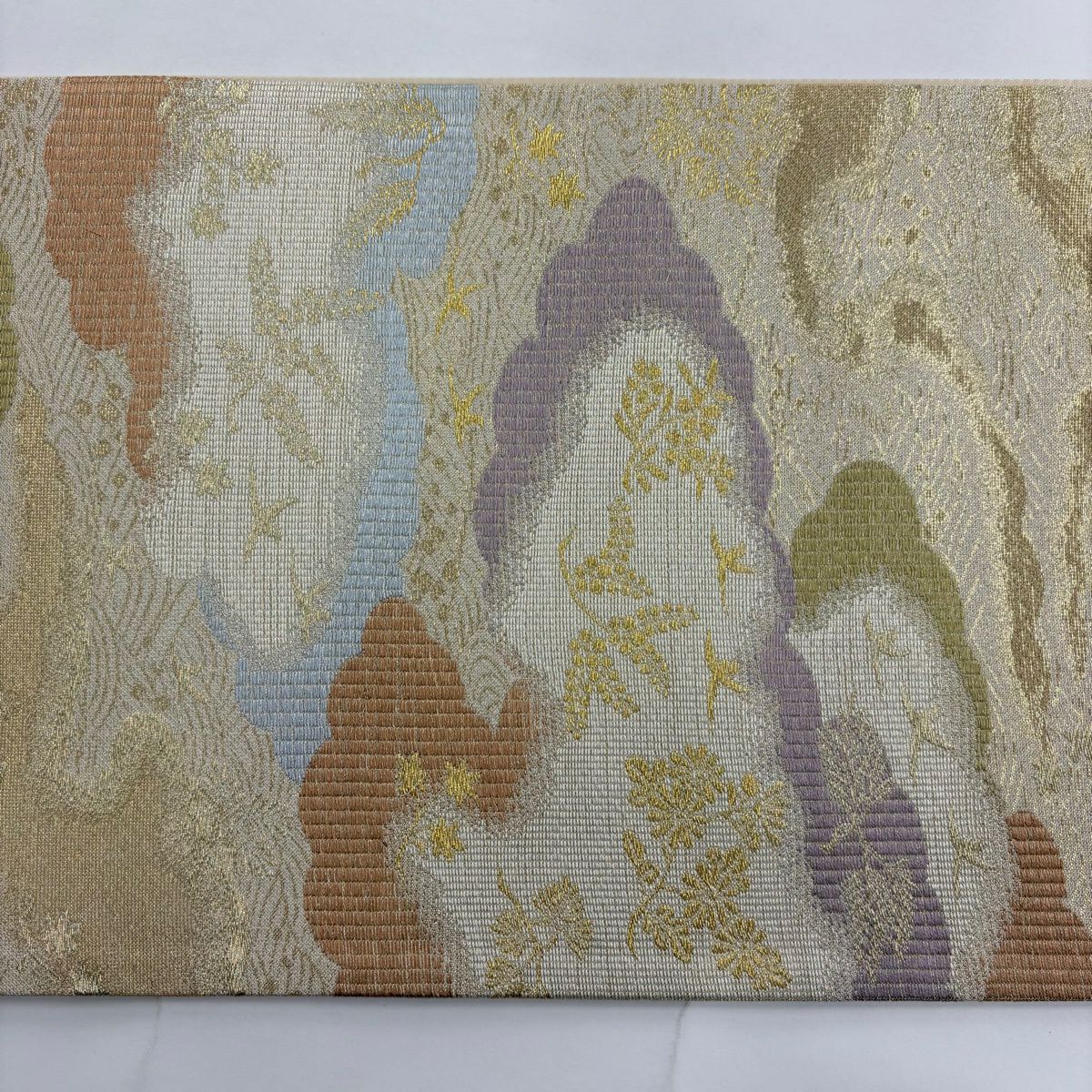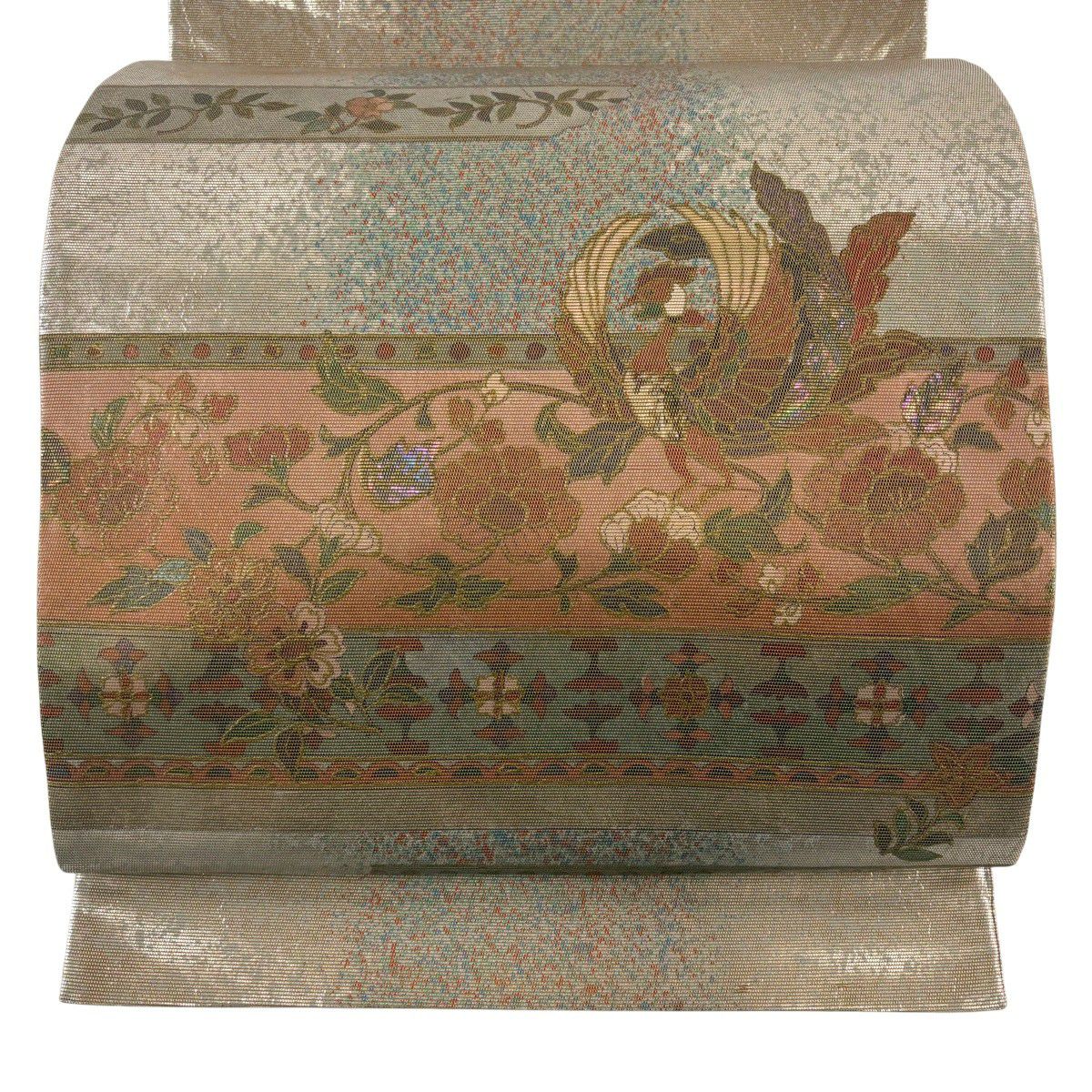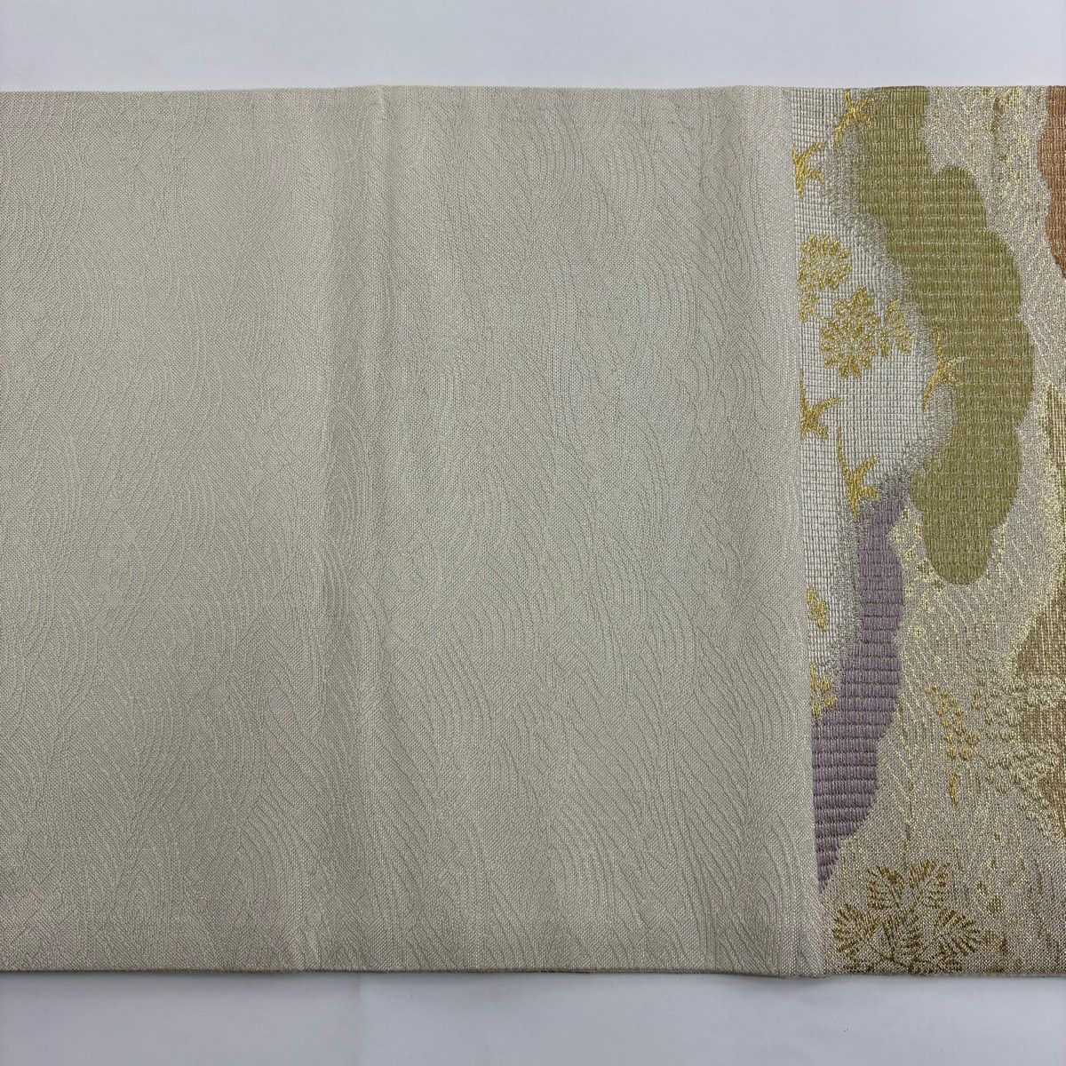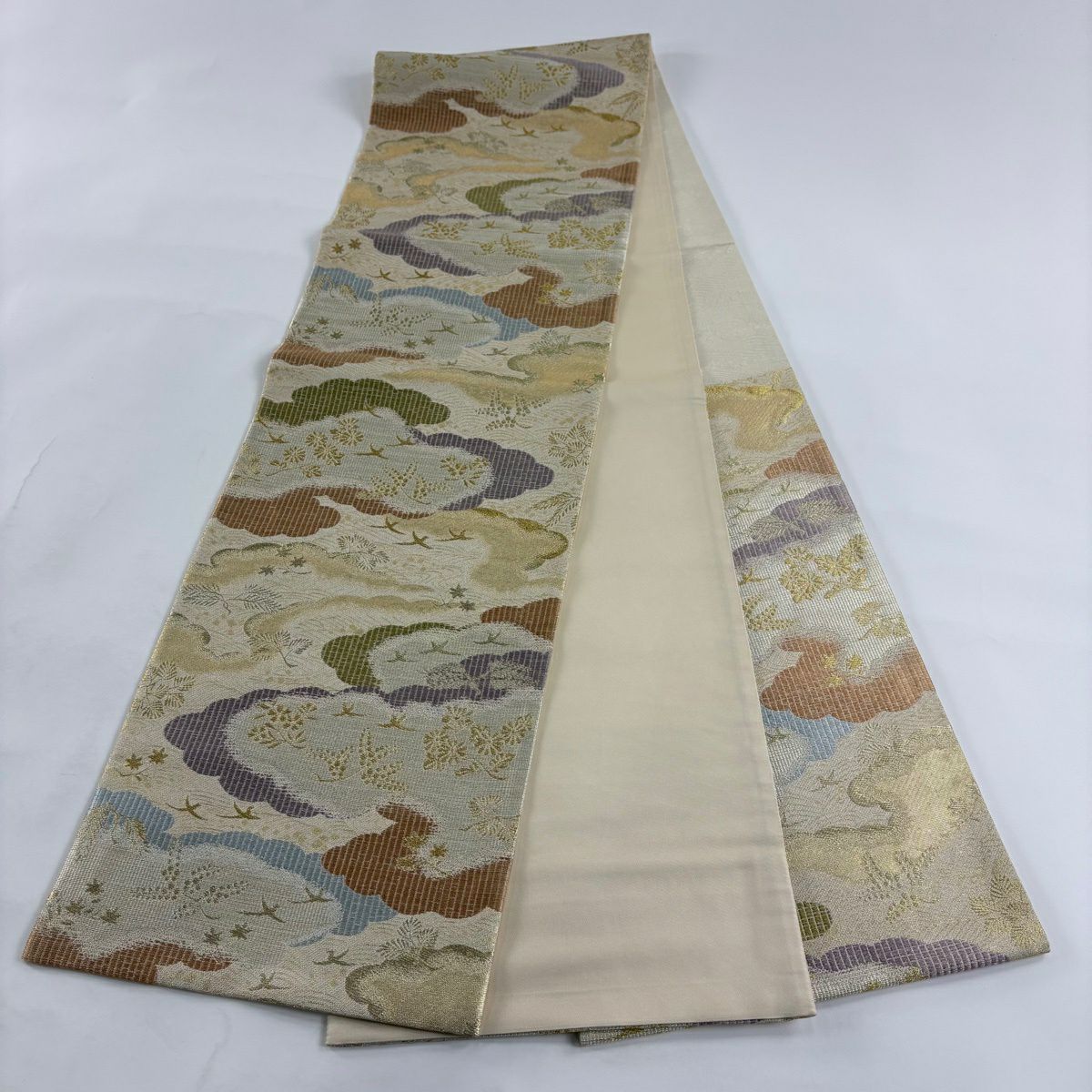 【美品】 袋帯 秀品 雲文 花鳥 箔 金銀糸 ベージュ 六通 正絹