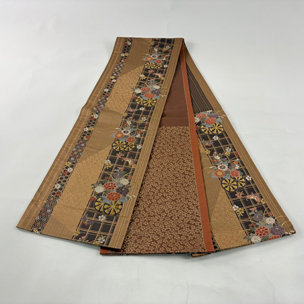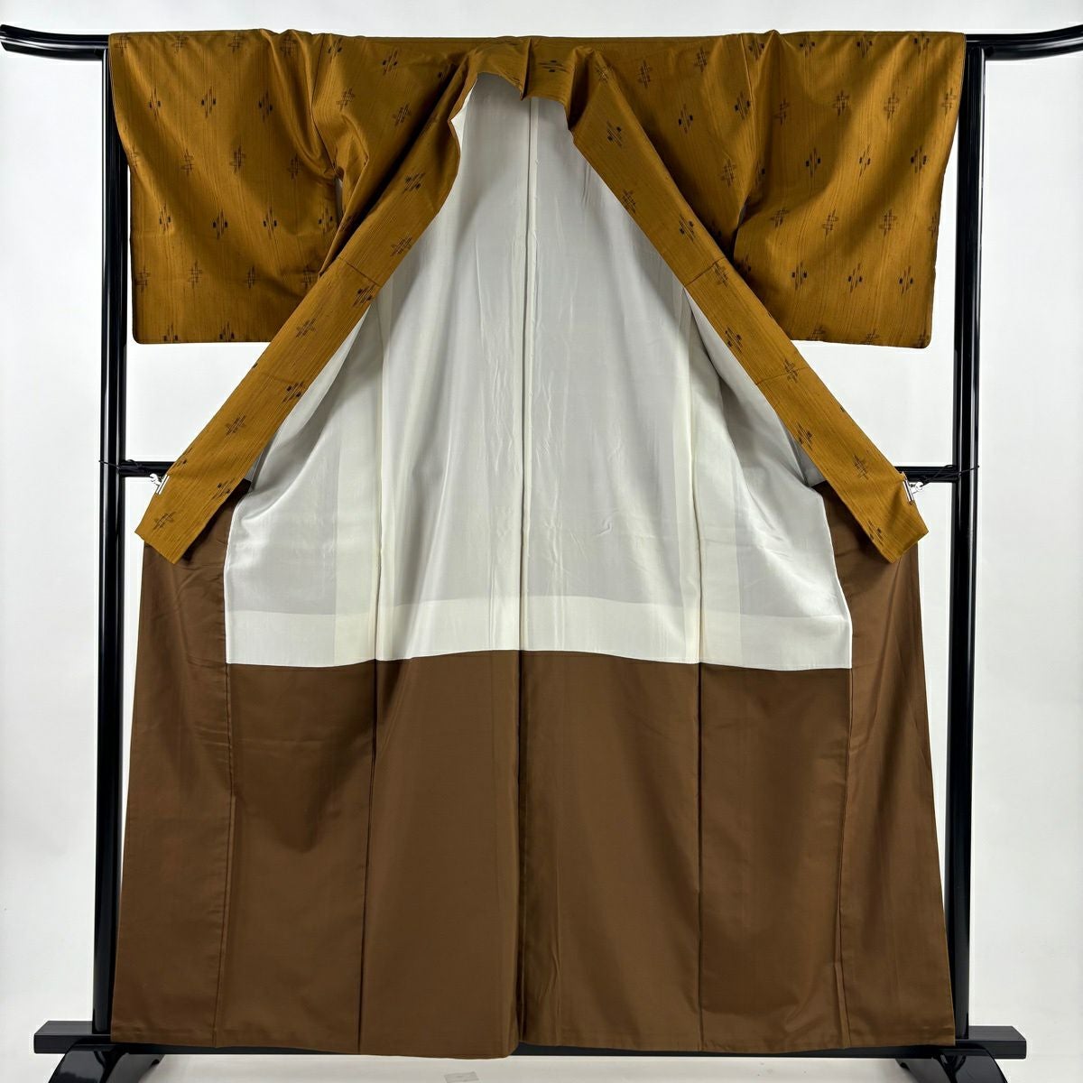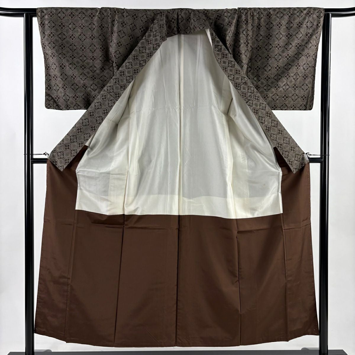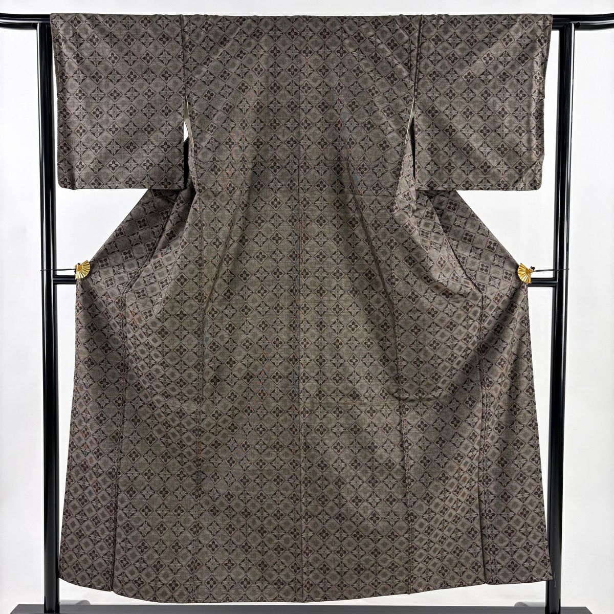 紬 身丈153.5cm 裄丈63cm S 袷 菱 花 焦茶色 正絹 秀品