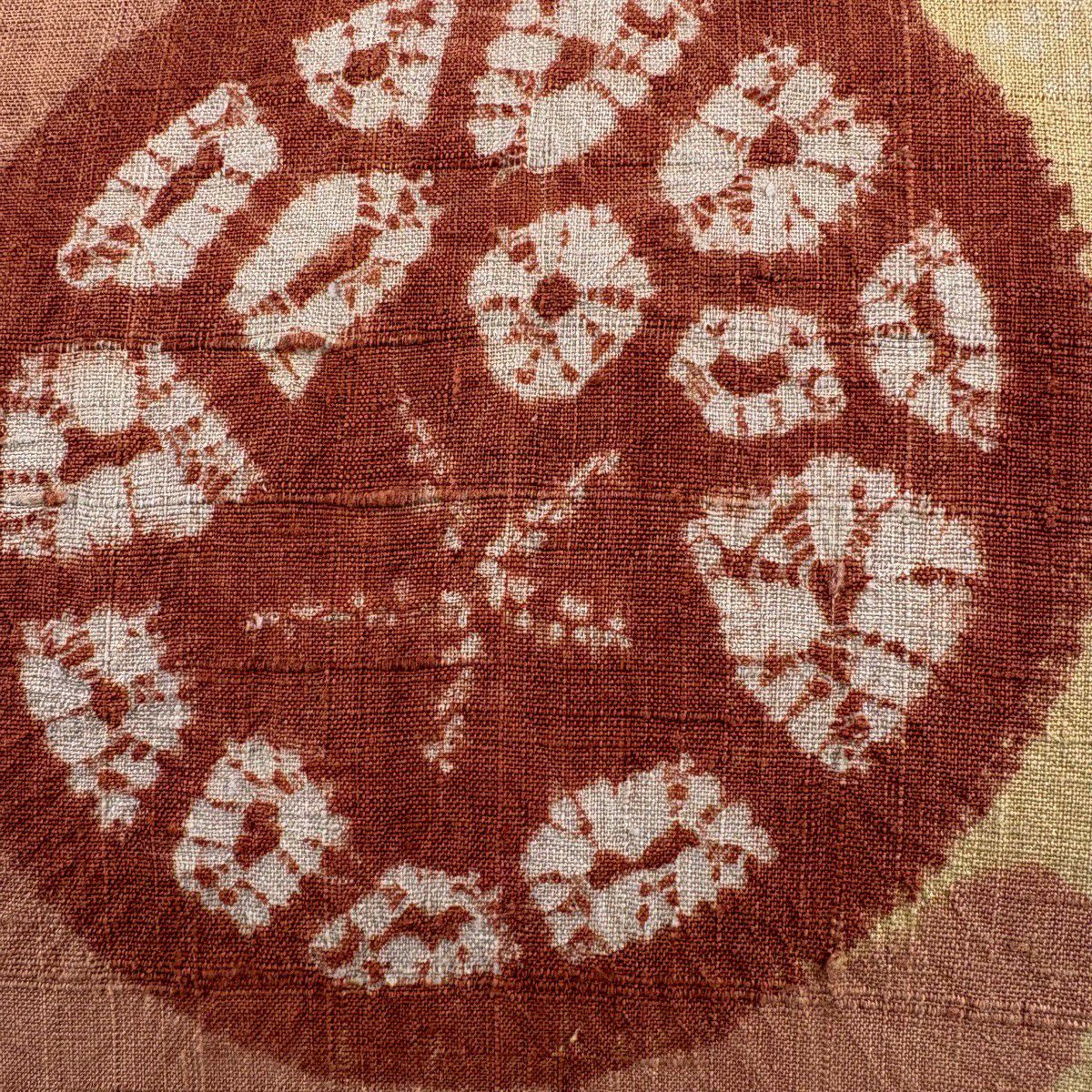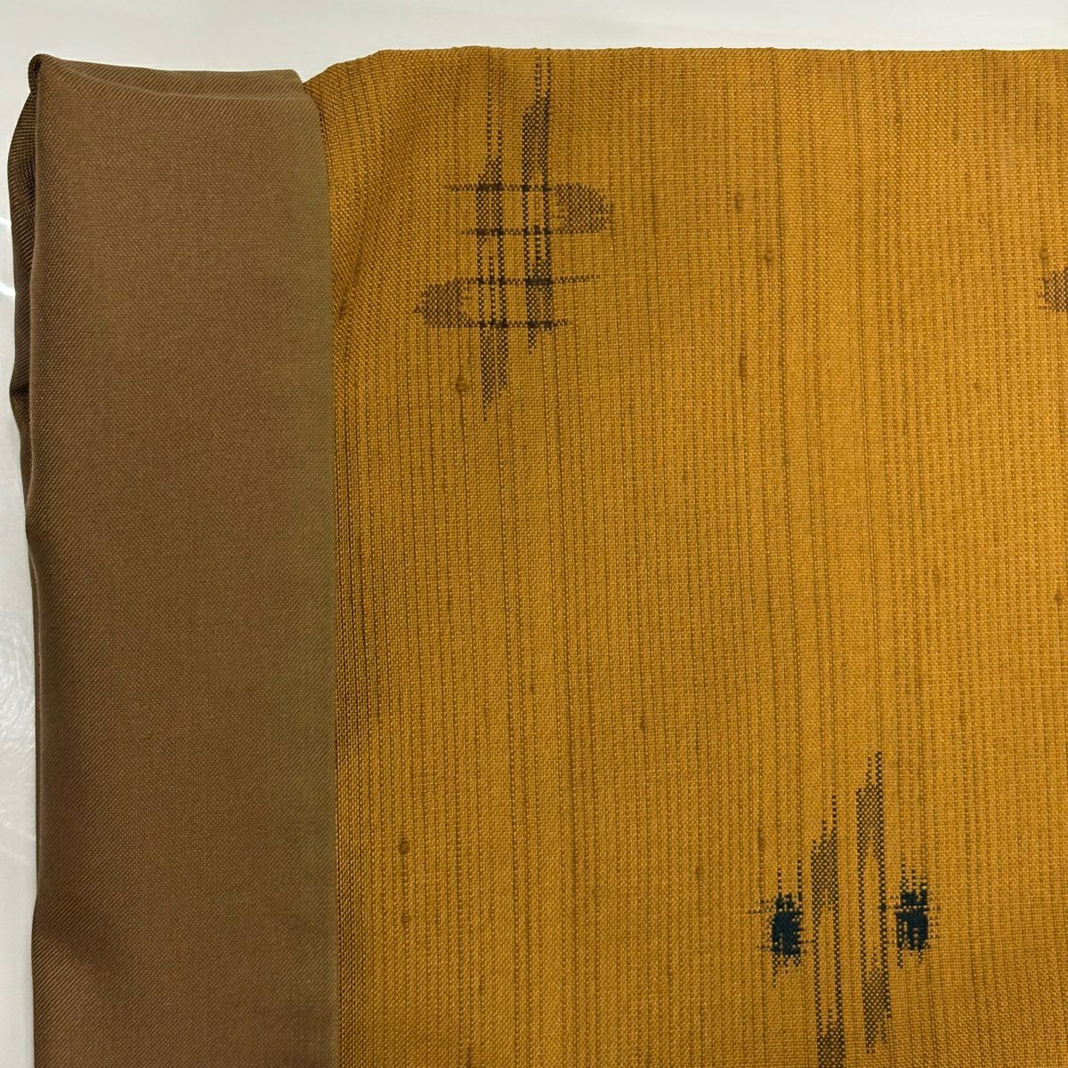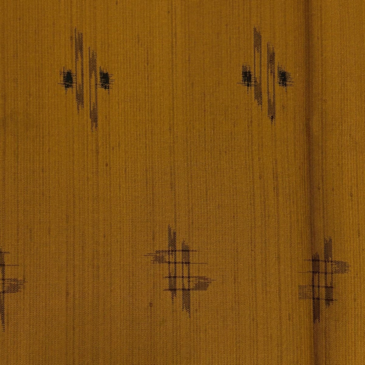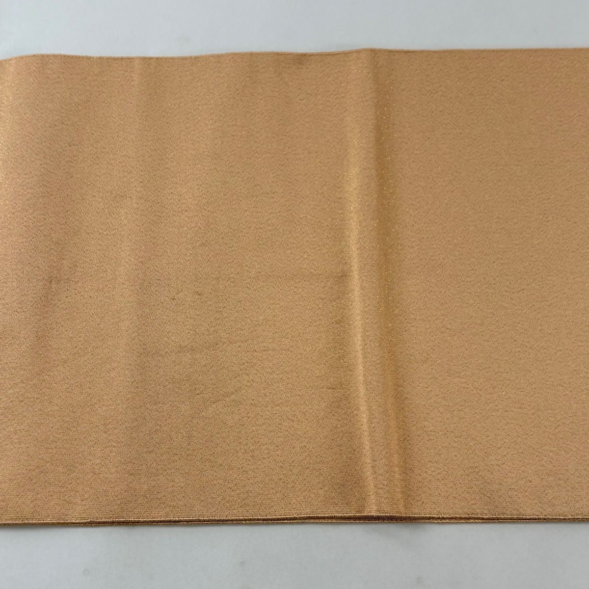 【美品】 開き名古屋帯 秀品 紬地 丸文 幾何学 絞り 薄黄土色 正絹