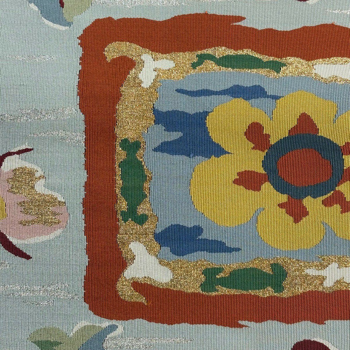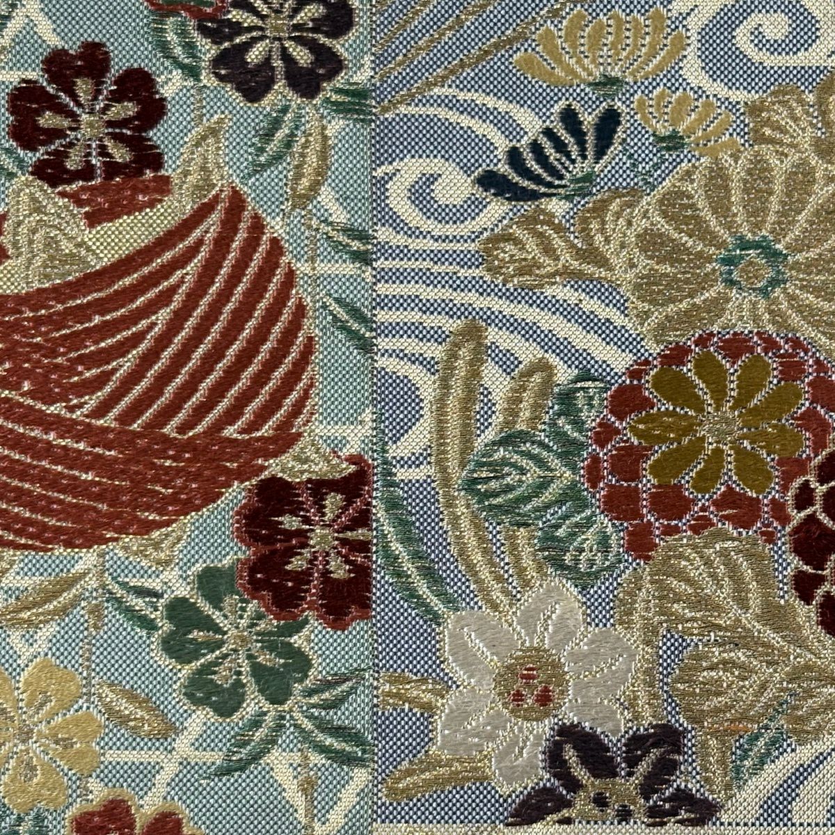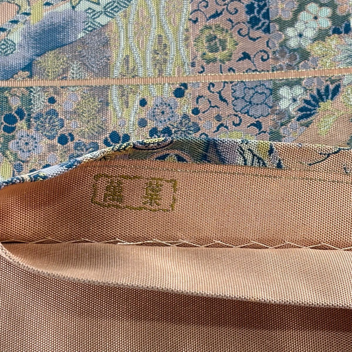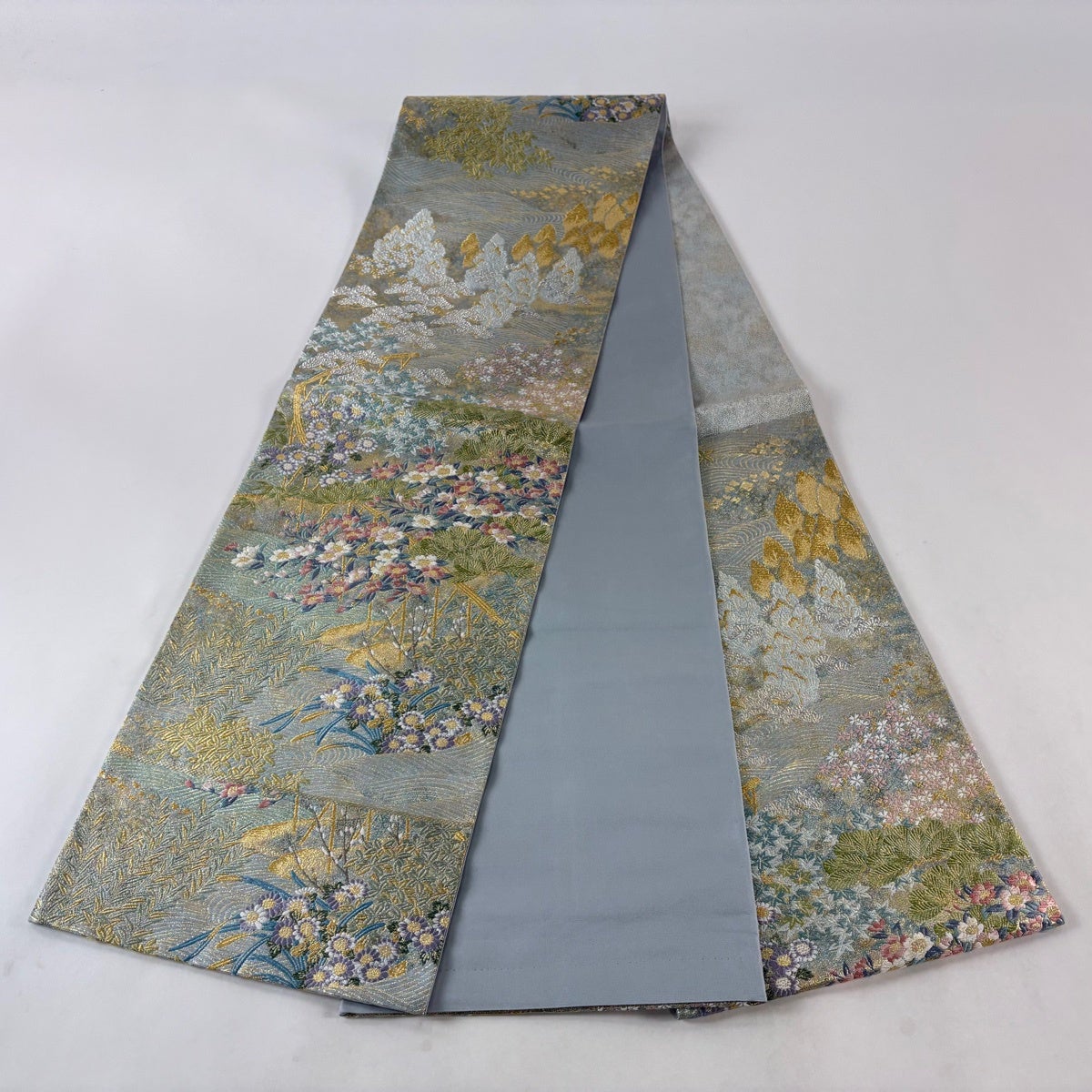 【美品】 袋帯 秀品 夏帯 草花 若松 唐織 金銀糸 水色 六通 正絹