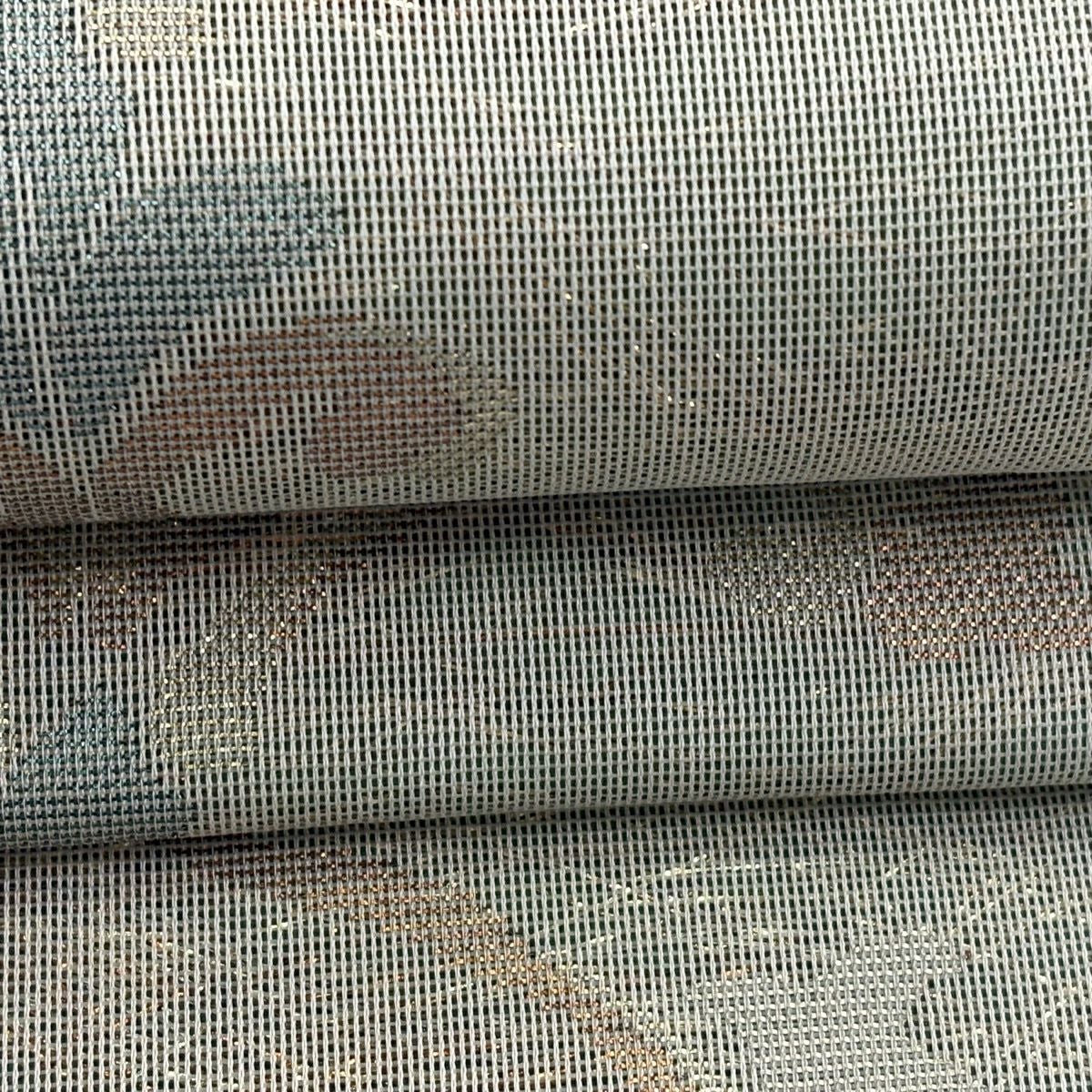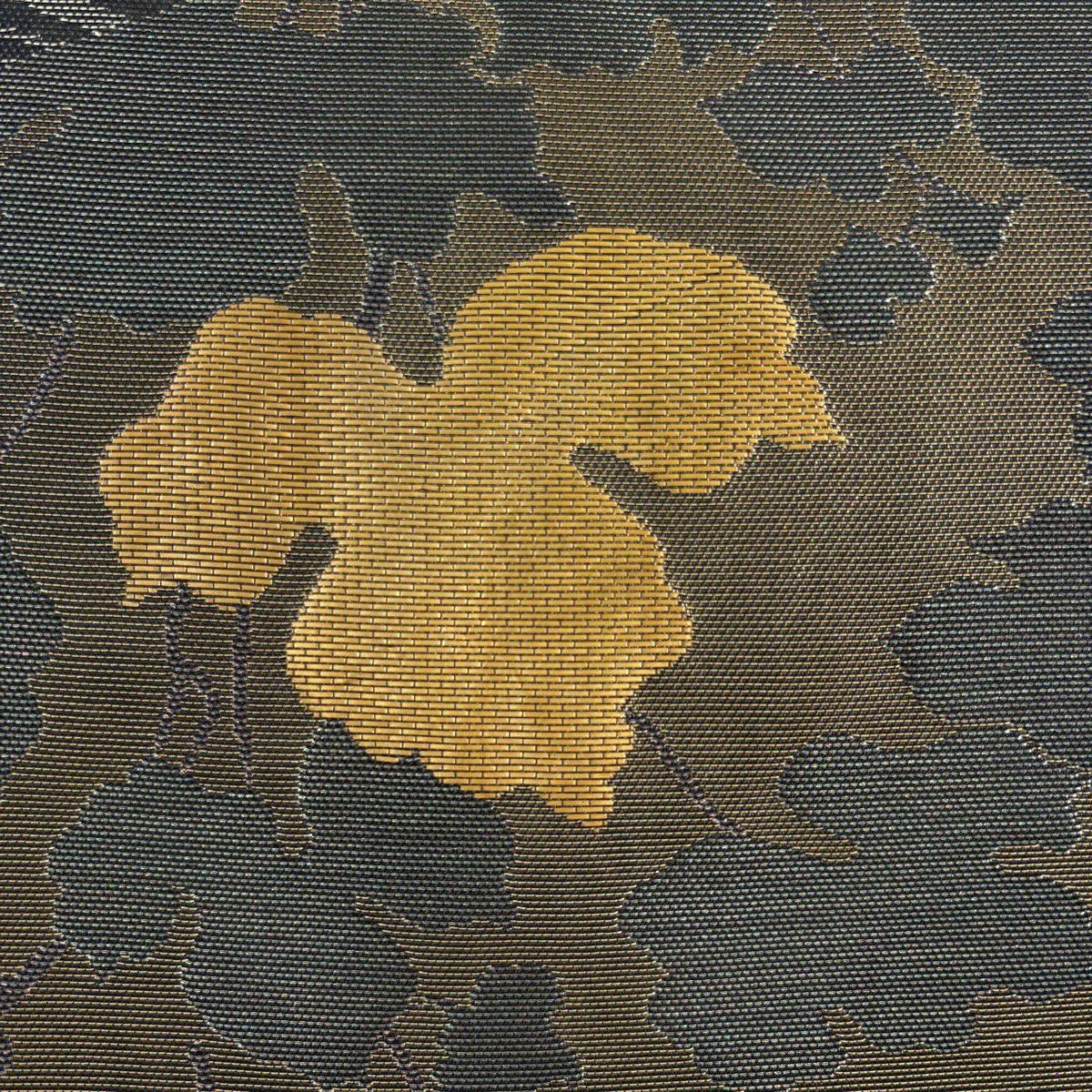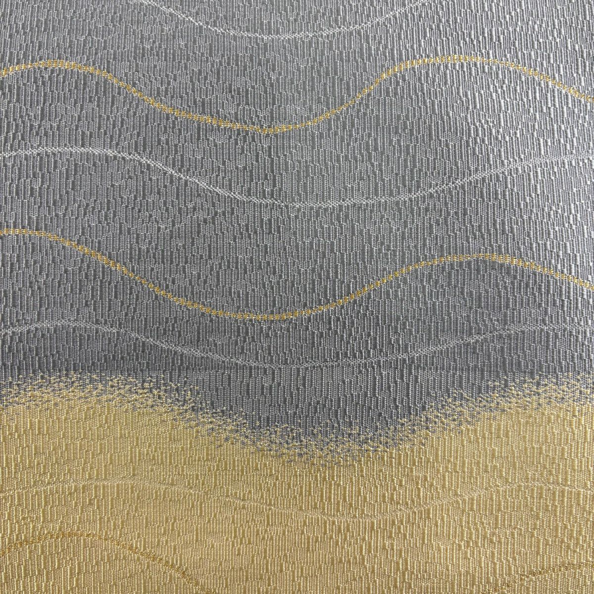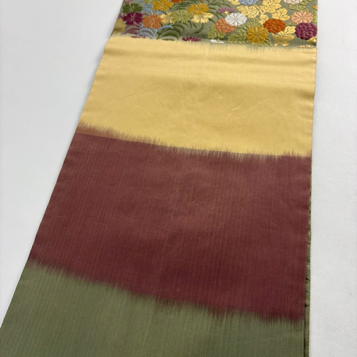 【美品】 袋帯 秀品 夏帯 紗 草花 幾何学模様 箔 灰緑 六通 正絹