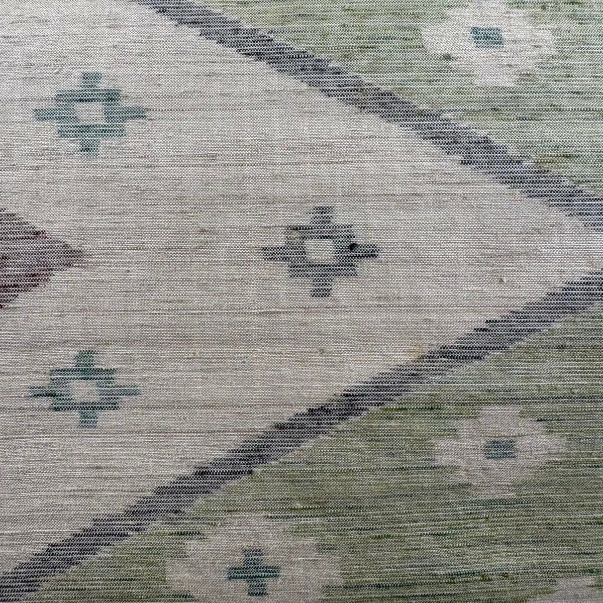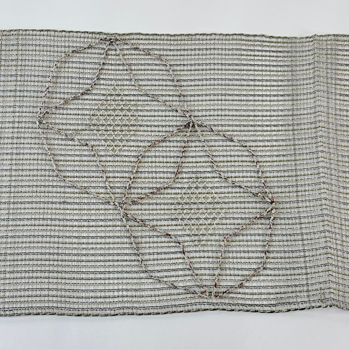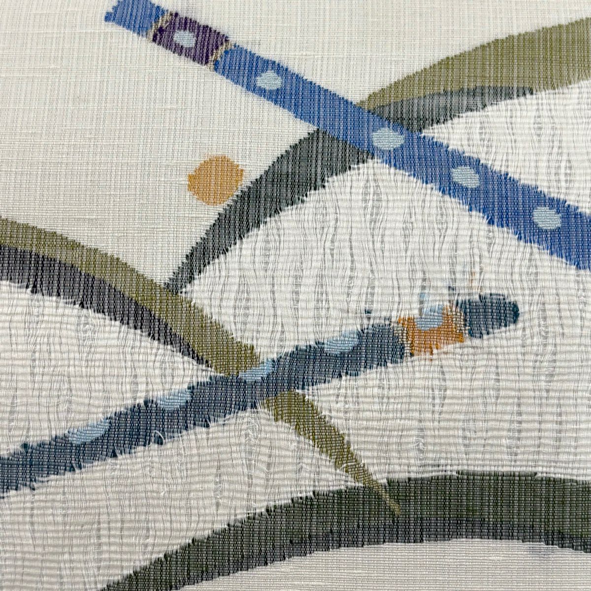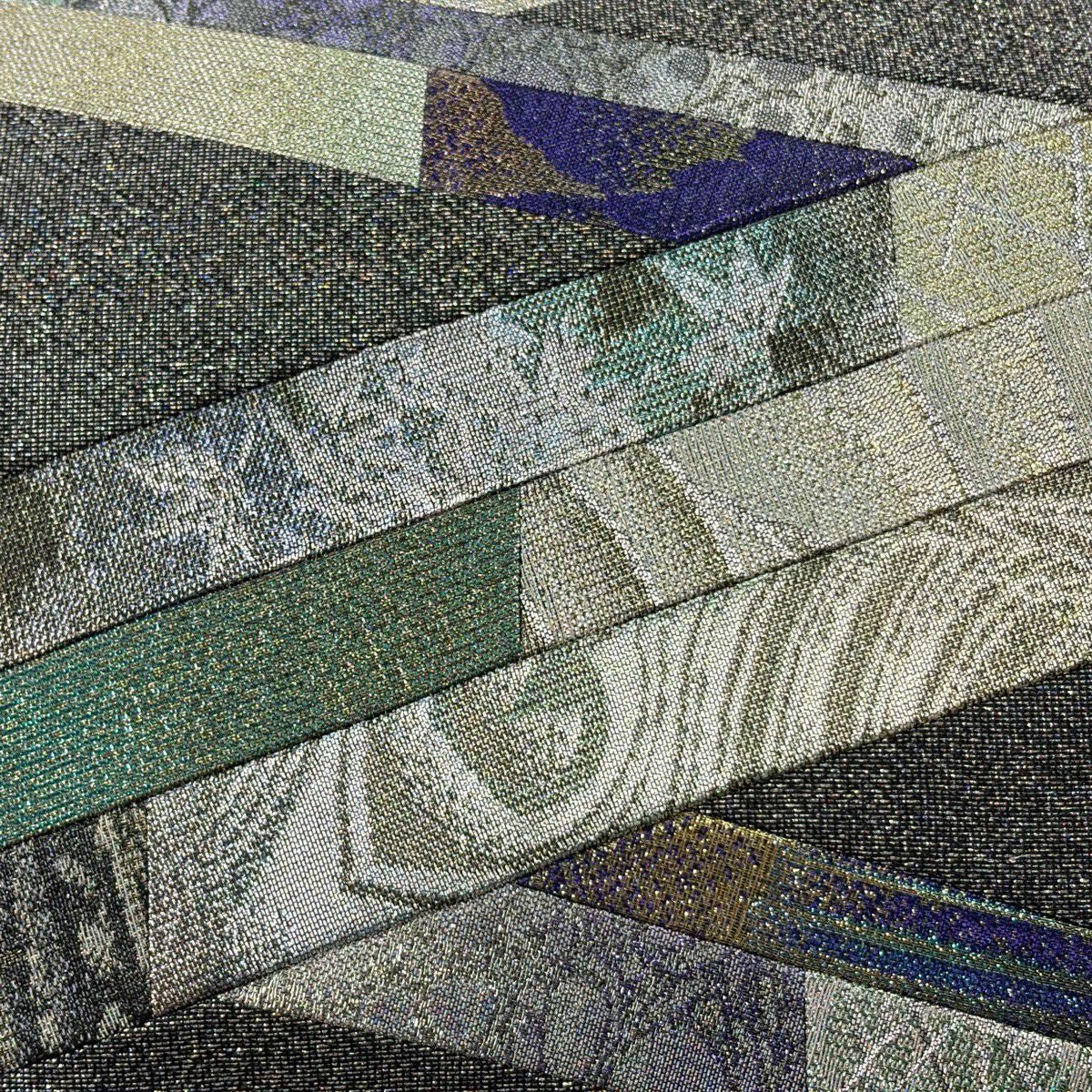 【美品】 袋帯 秀品 夏帯 紗 草花 幾何学模様 箔 灰緑 六通 正絹
