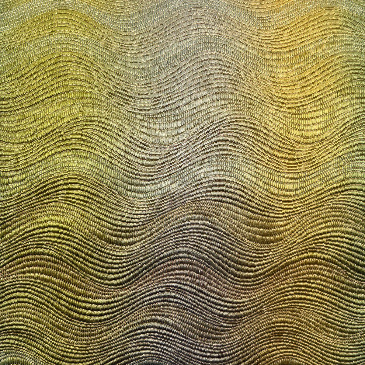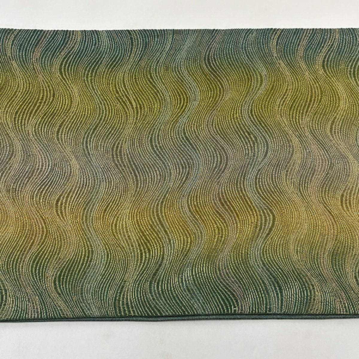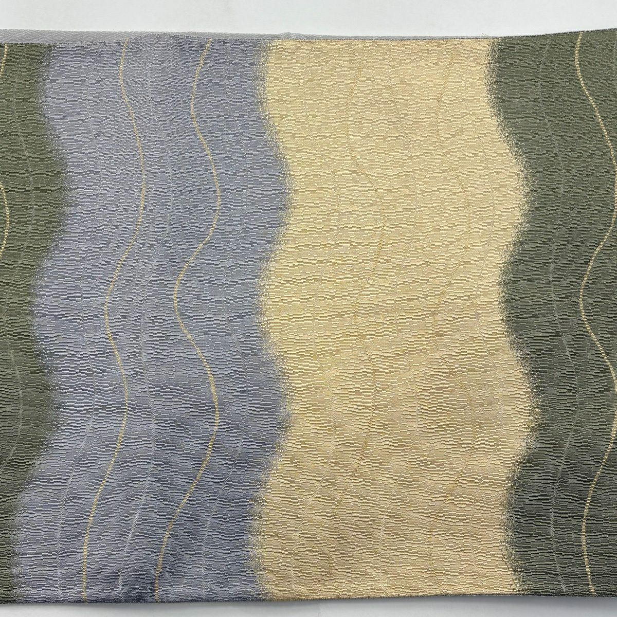【美品】 袋帯 秀品 天平組織 よろけ縞 金糸 本泥染 緑 六通 正絹