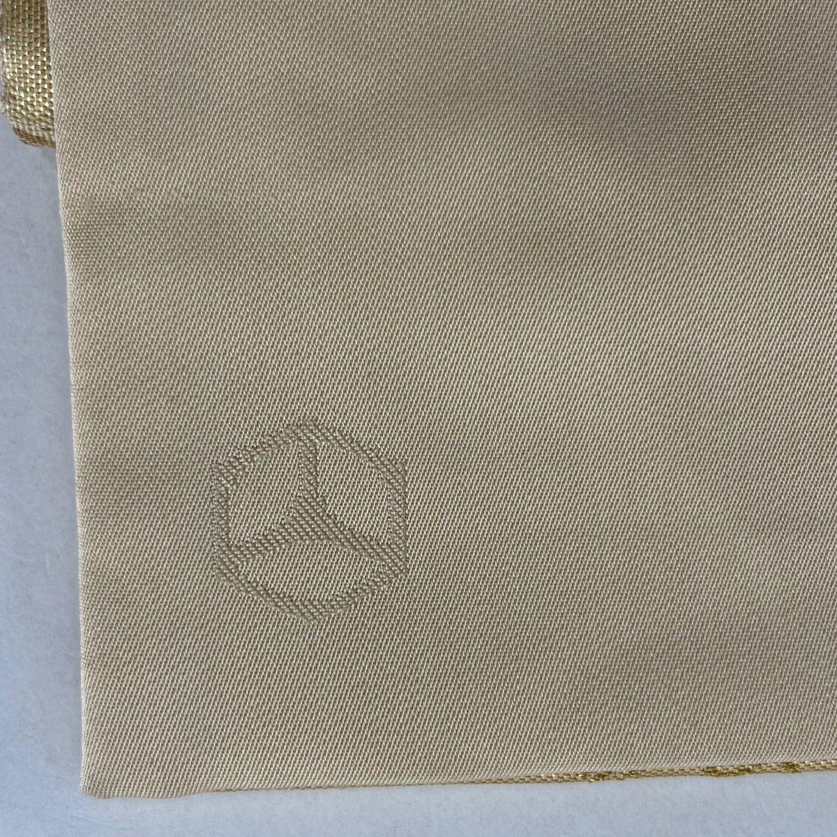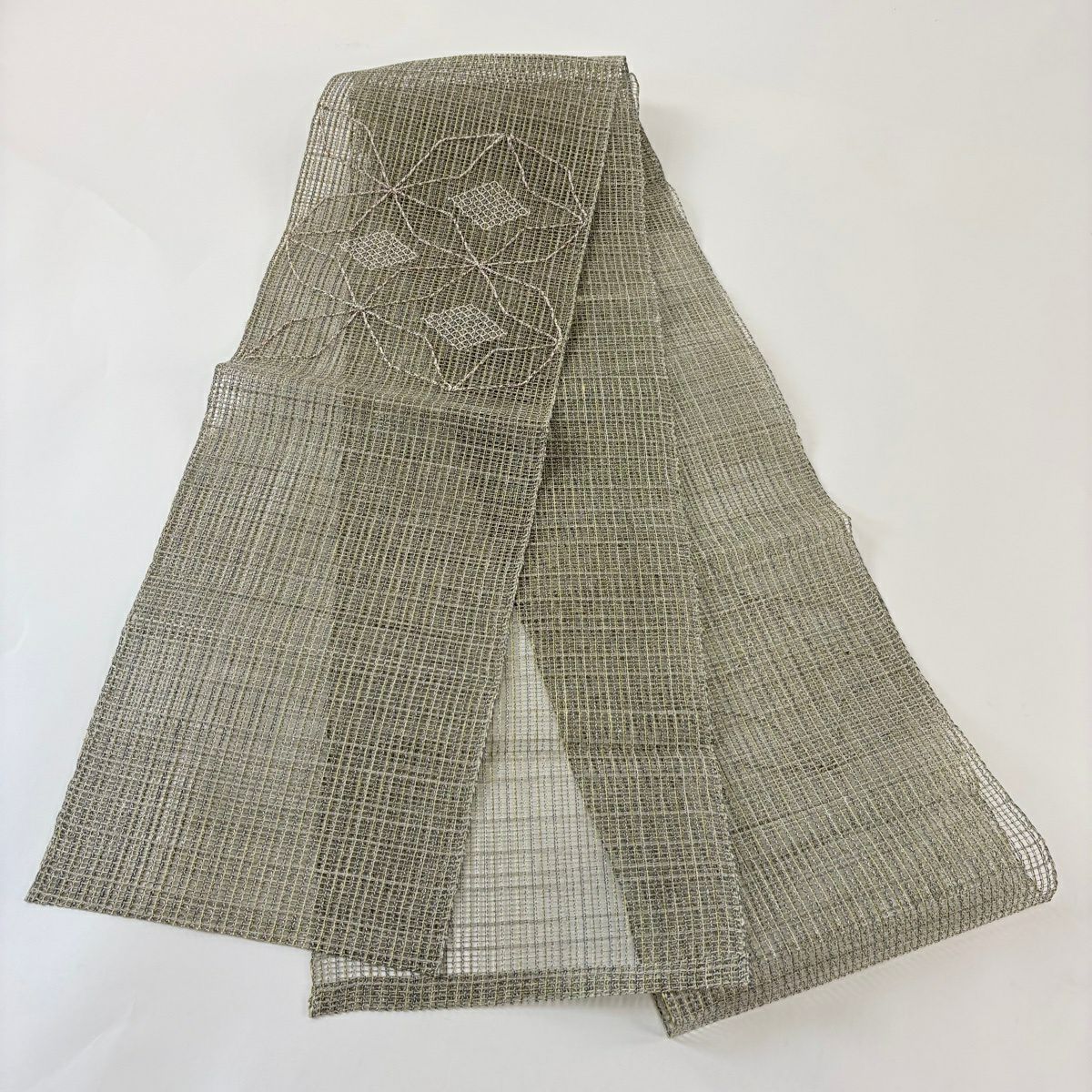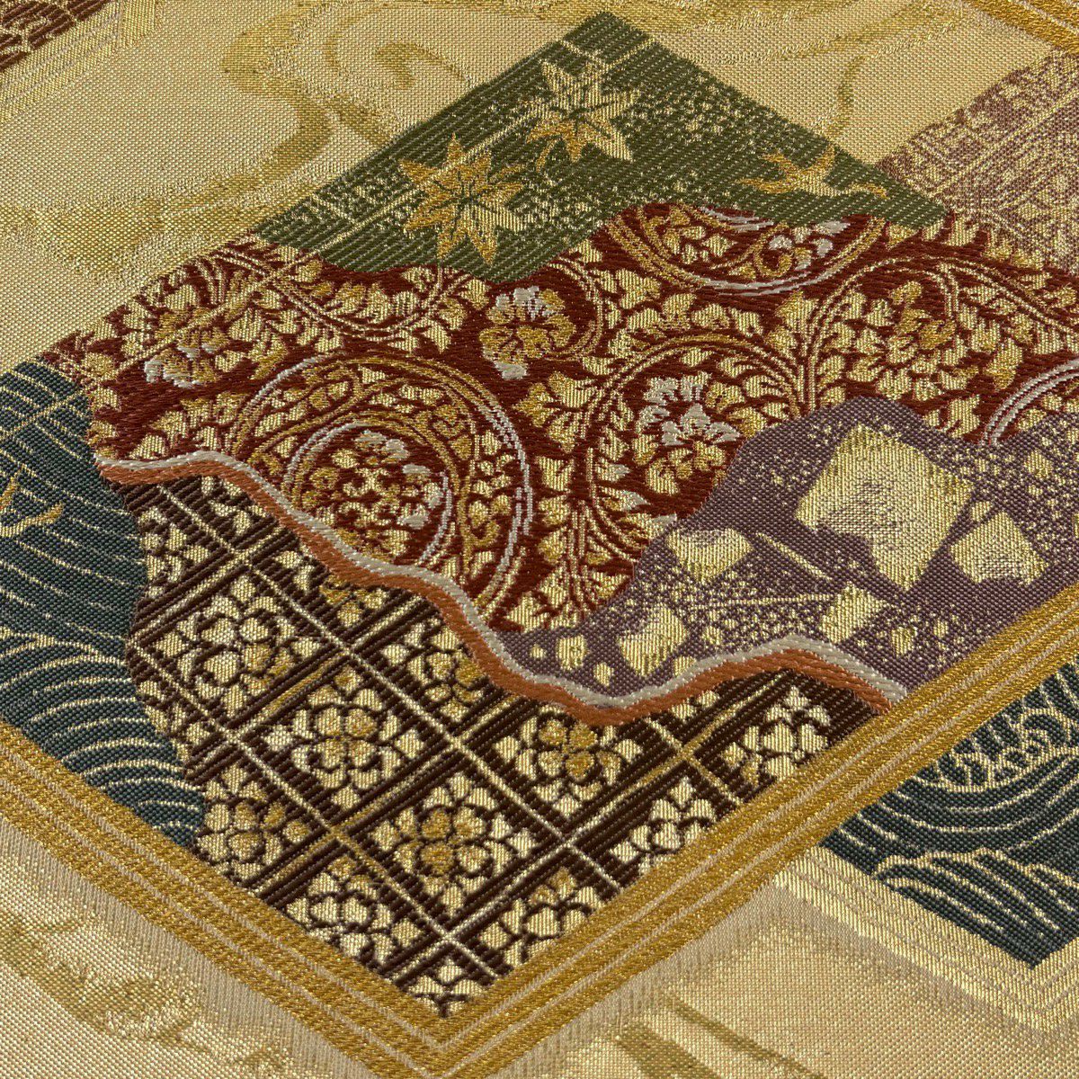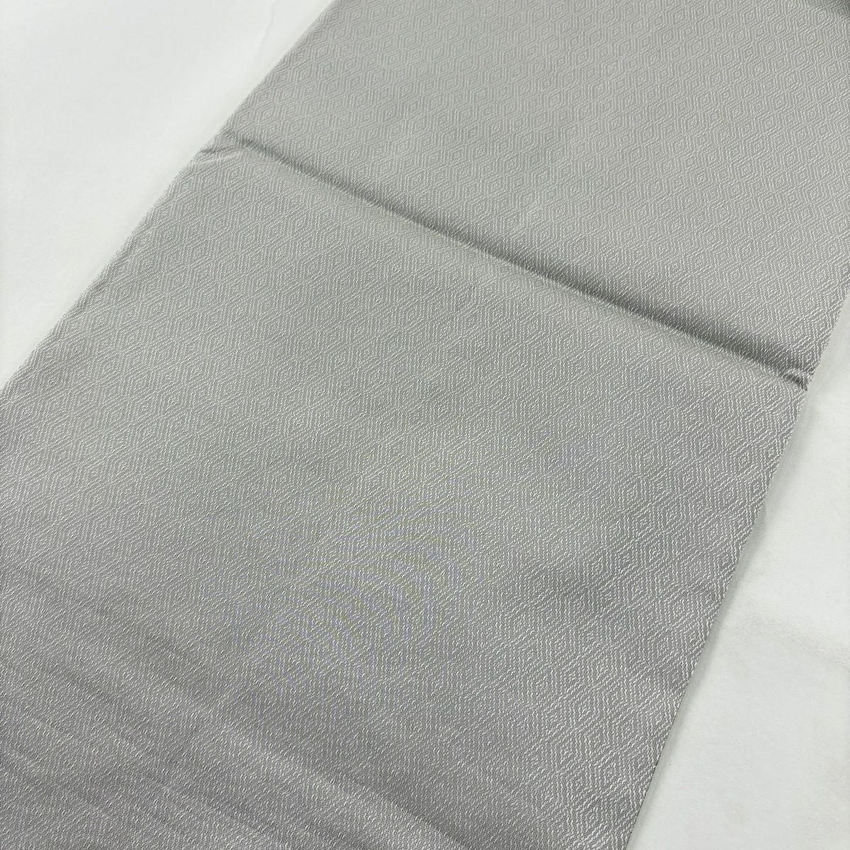 開き名古屋帯 秀品 証紙あり 大島紬地 幾何学 菱 ベージュ 正絹
