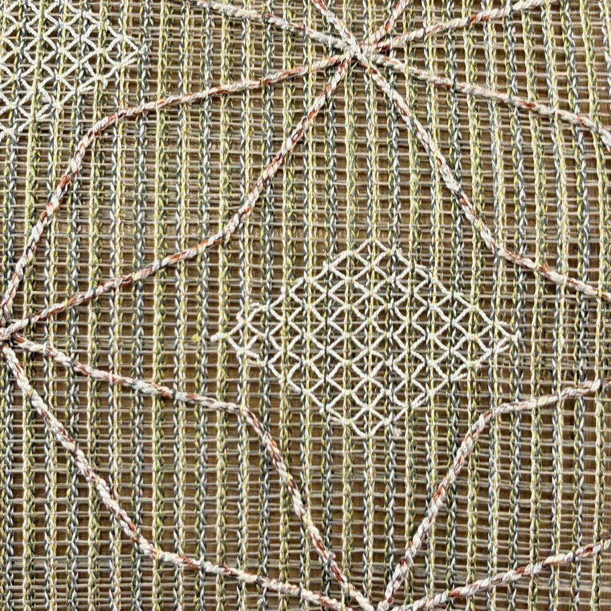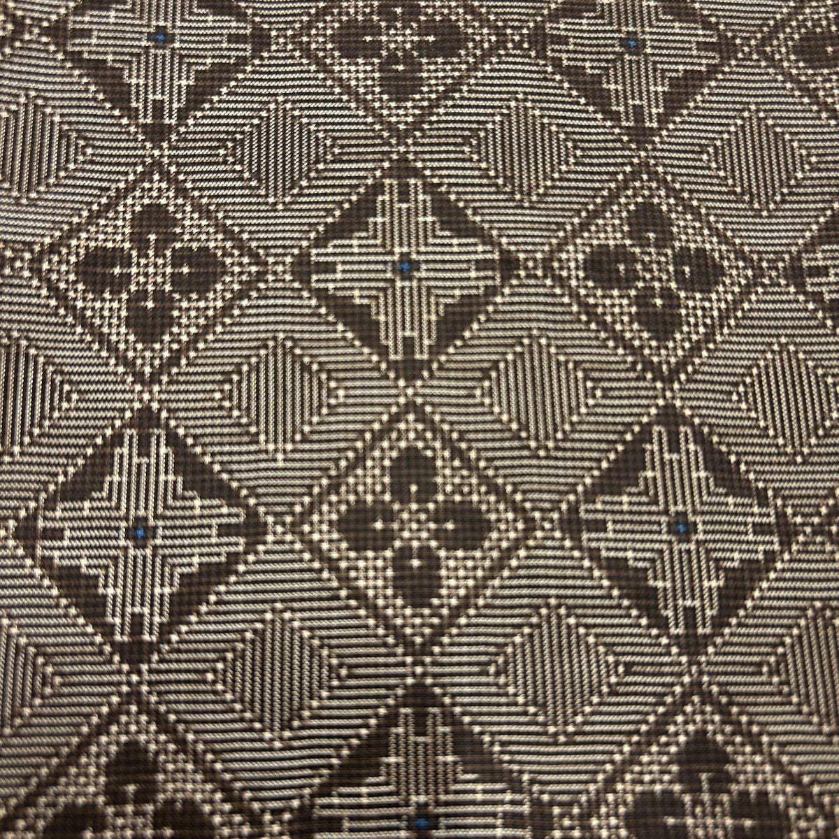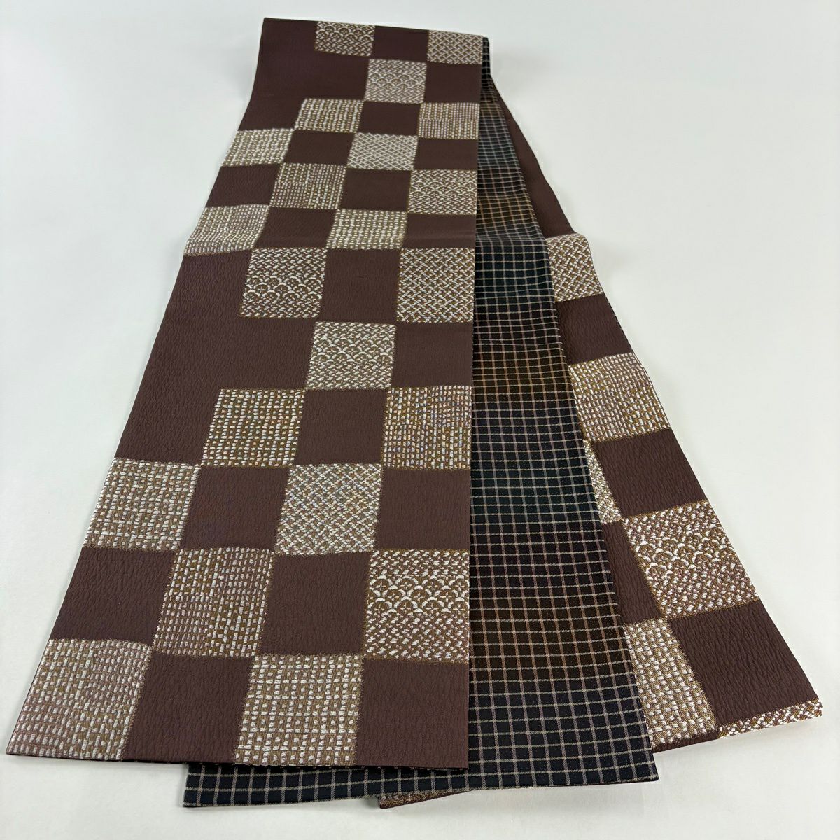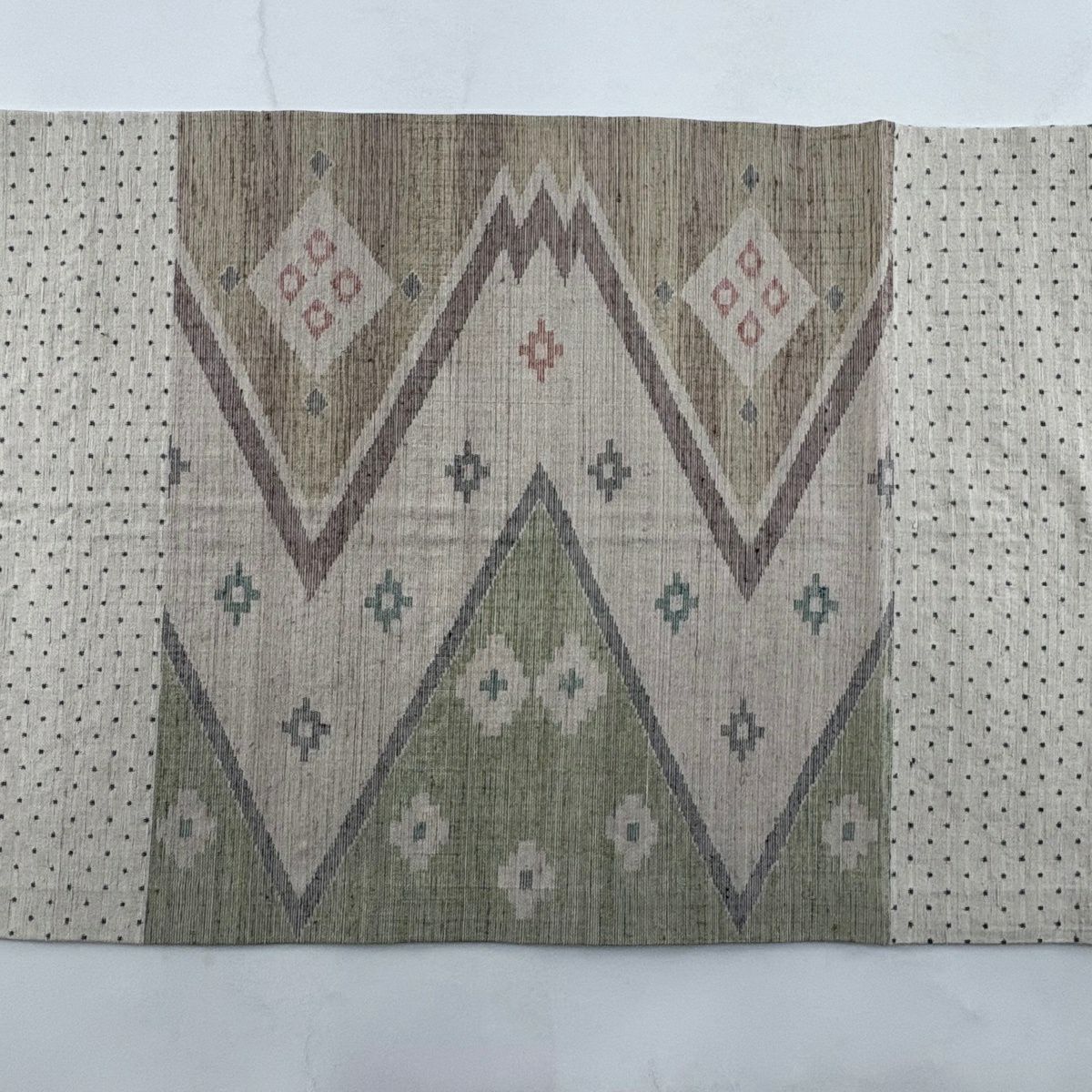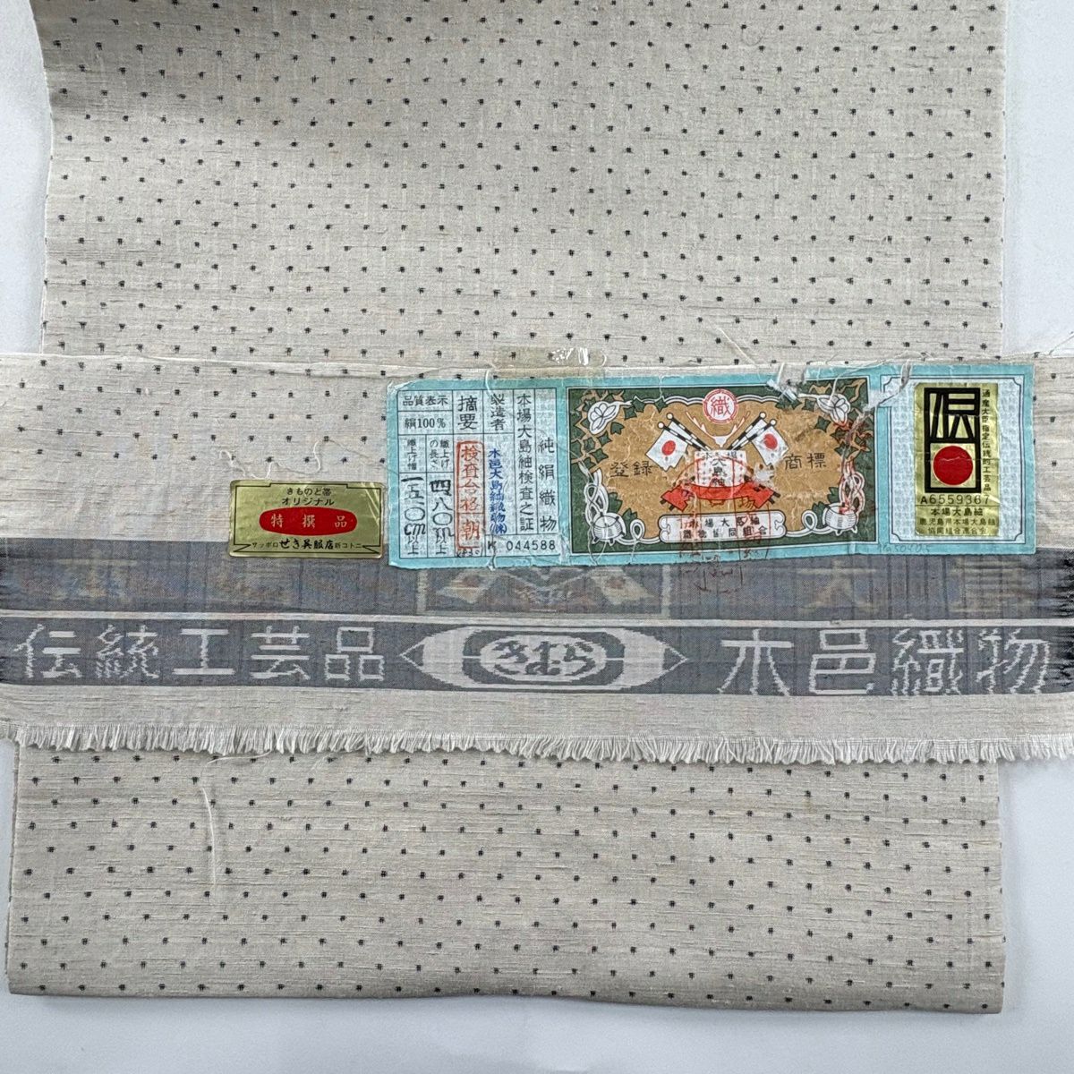 開き名古屋帯 秀品 証紙あり 大島紬地 幾何学 菱 ベージュ 正絹