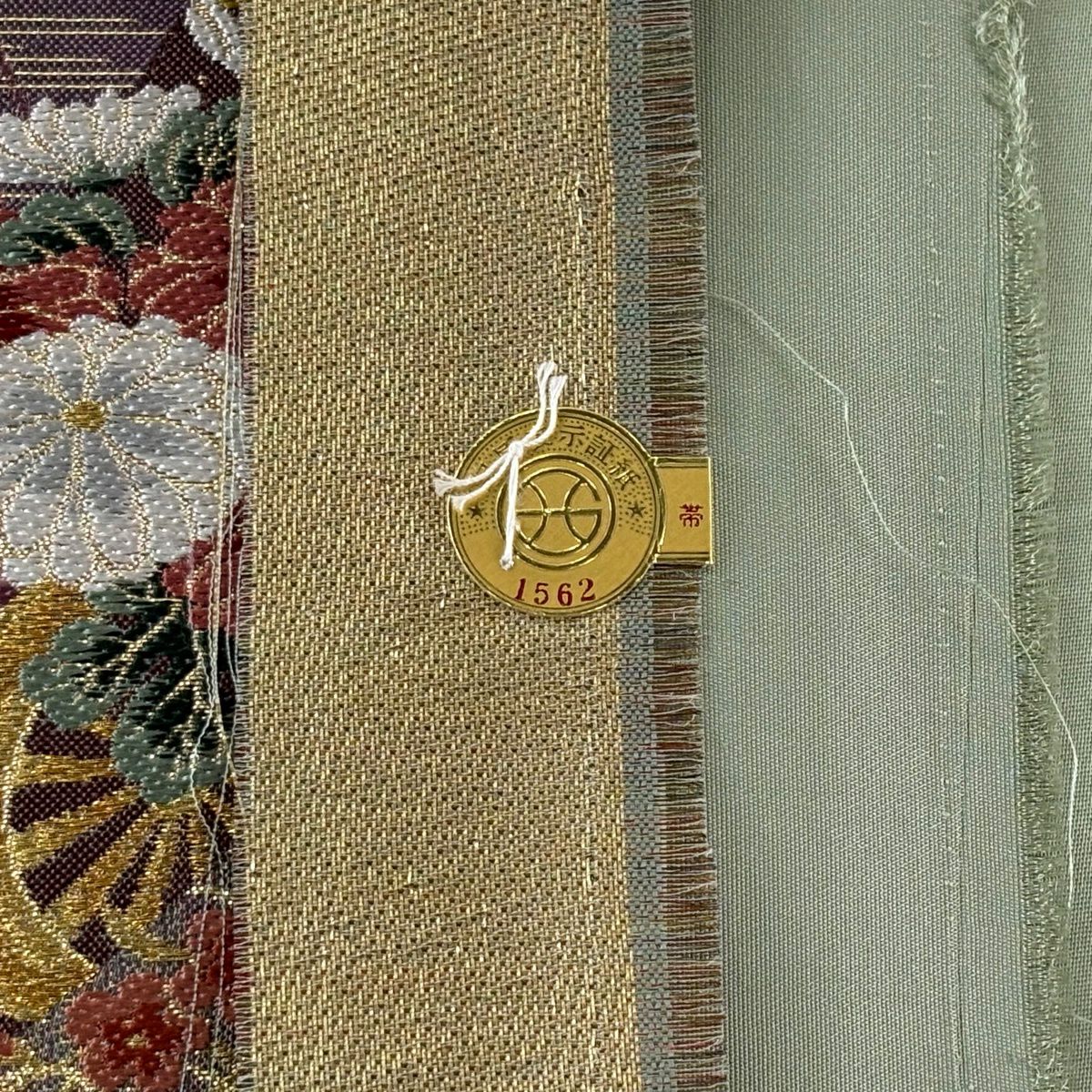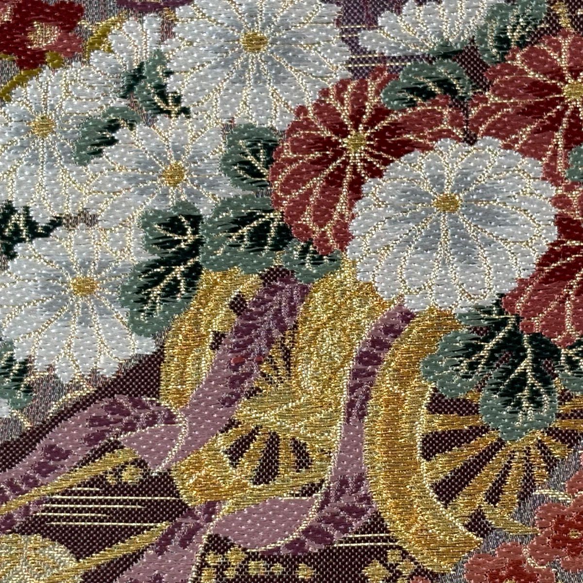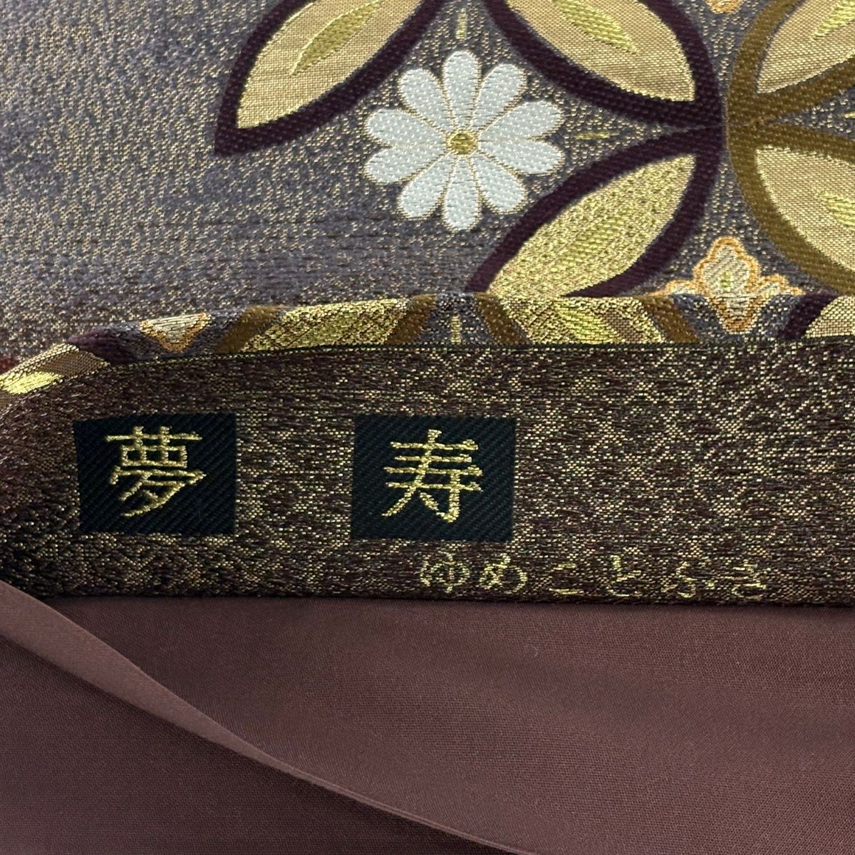【美品】 袋帯 秀品 振袖向き 立涌 花 唐織 金糸 濃紫 六通 正絹