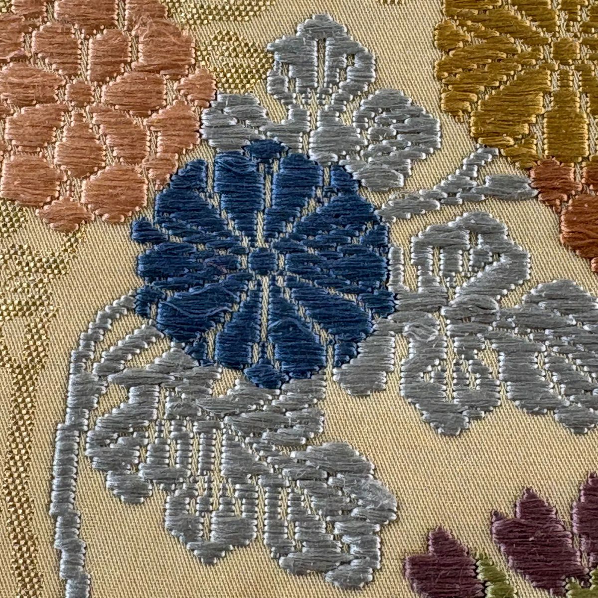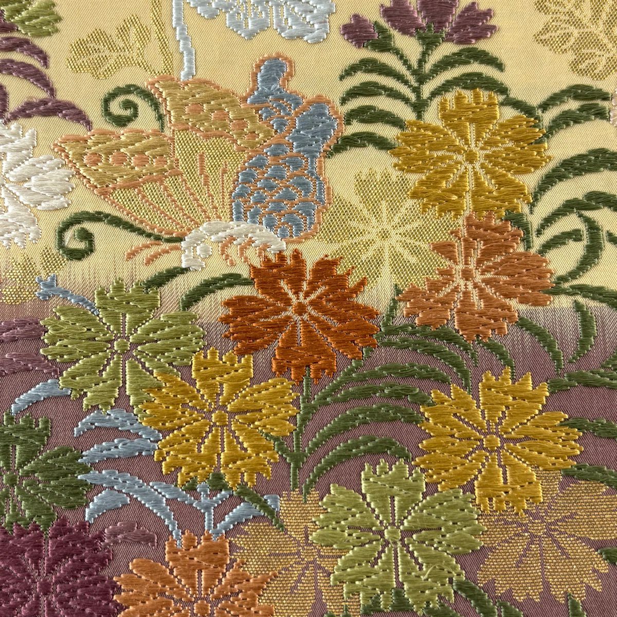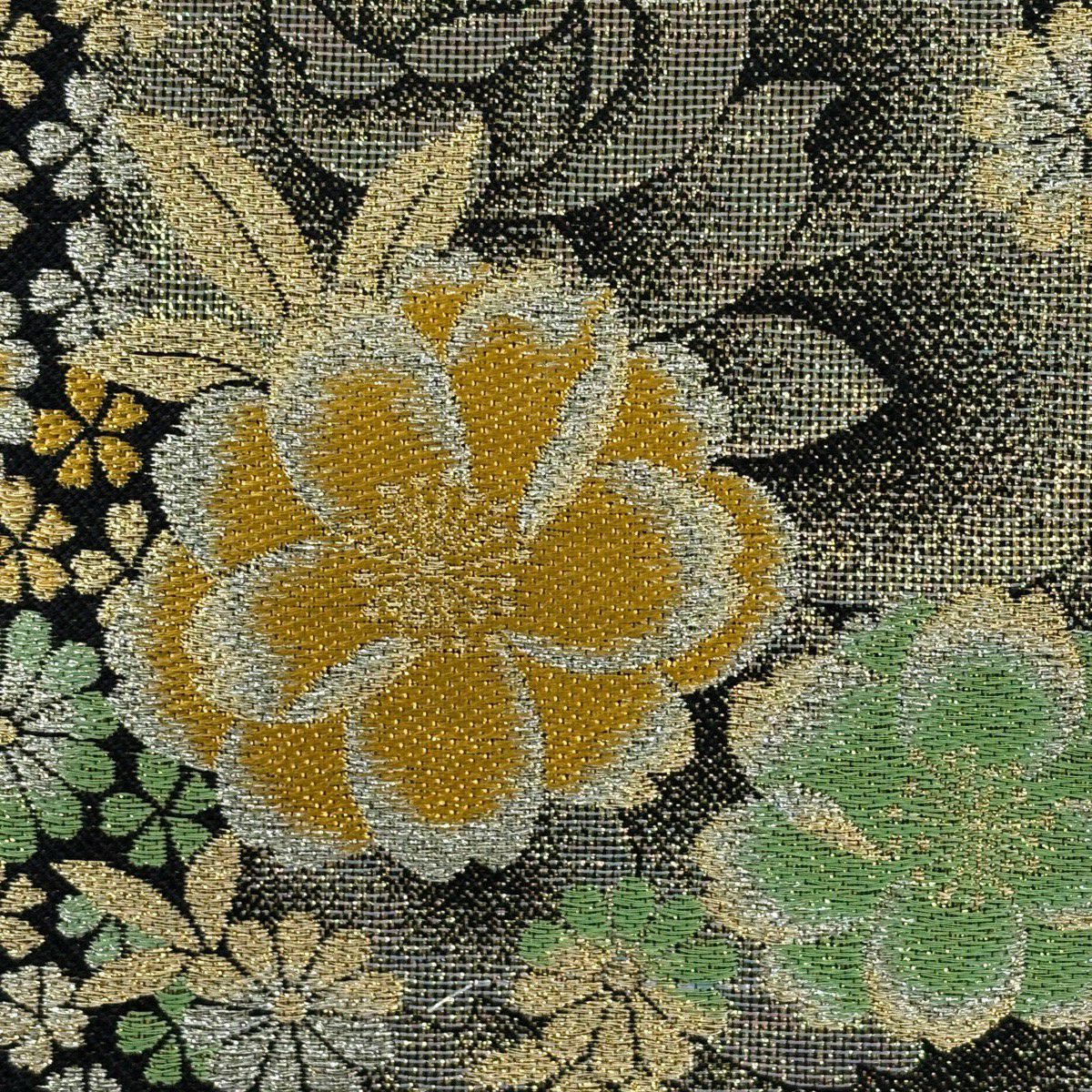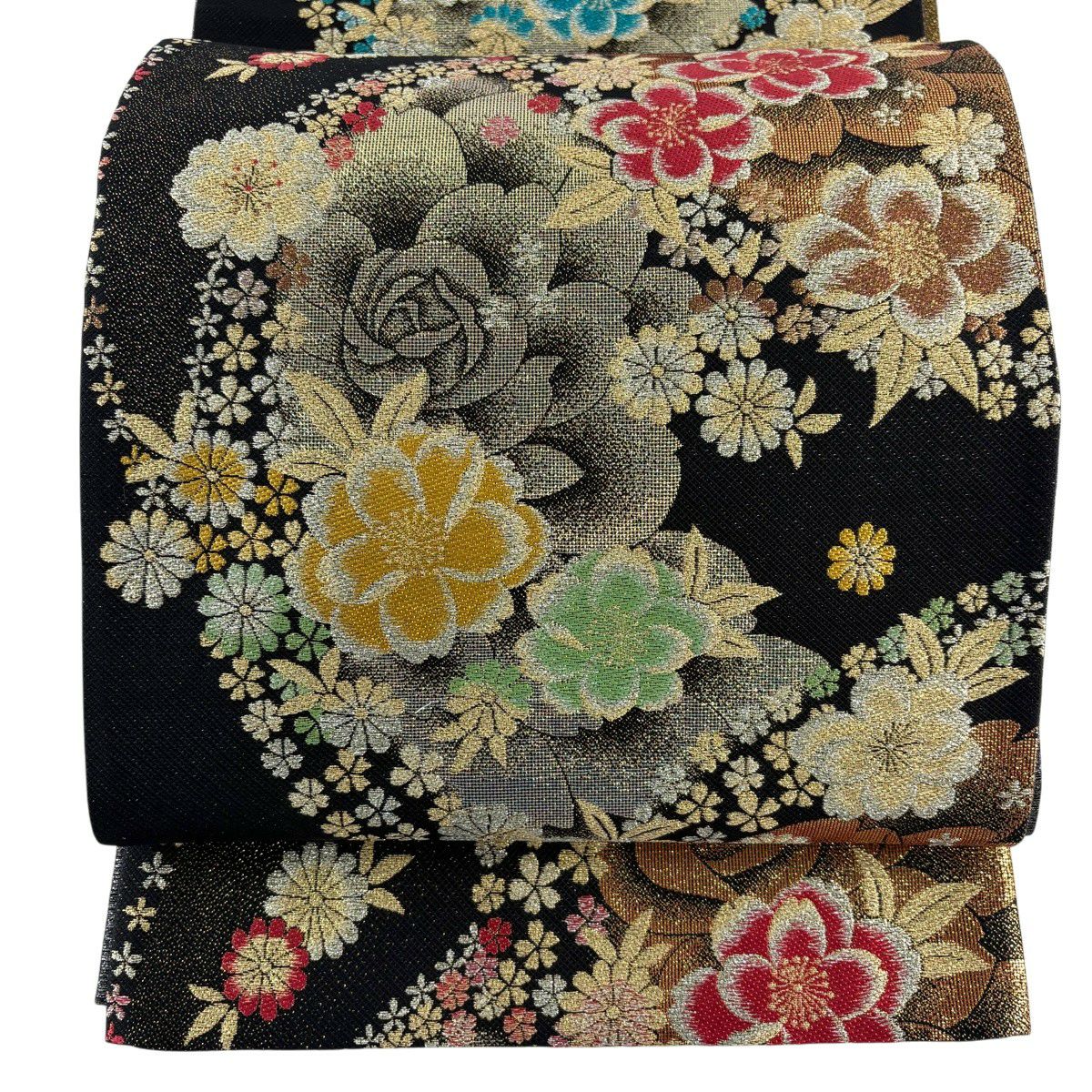 【美品】 袋帯 秀品 振袖向き 乱菊花集い 金糸 箔 銀色 六通 正絹