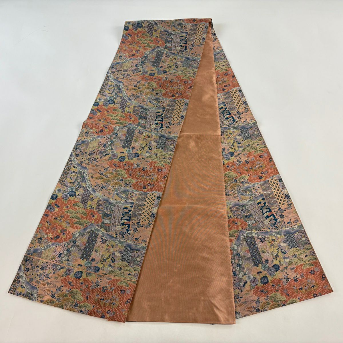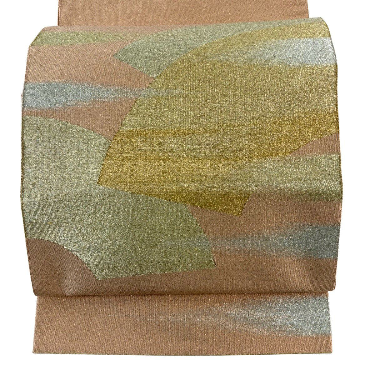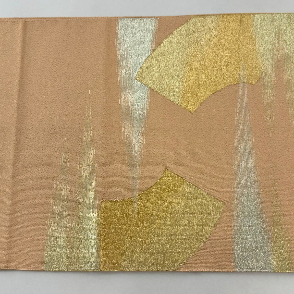 【美品】 袋帯 秀品 扇面 霞 金糸 箔 薄オレンジ お太鼓柄 正絹