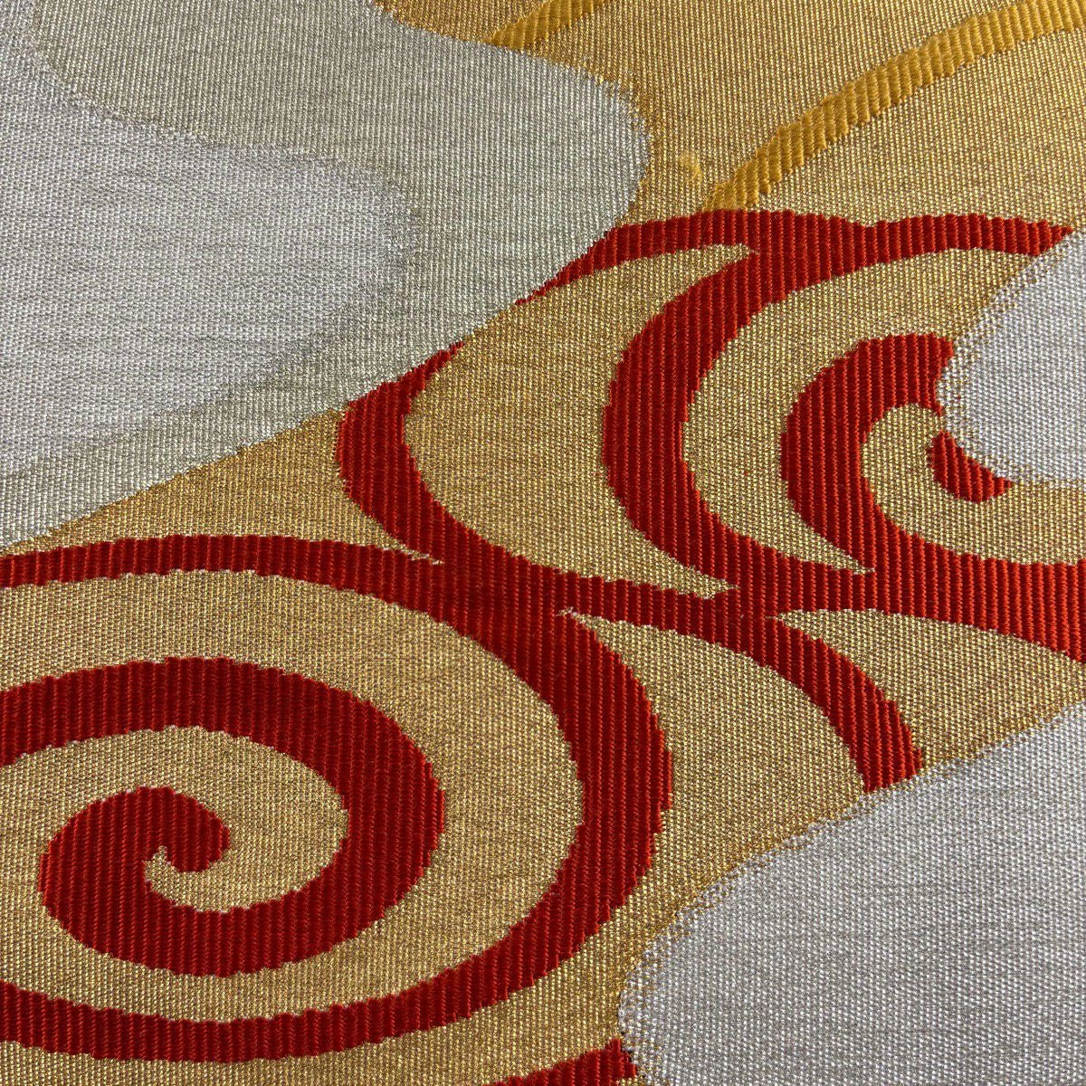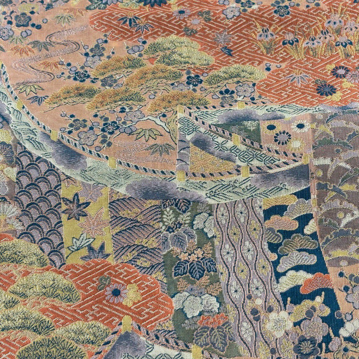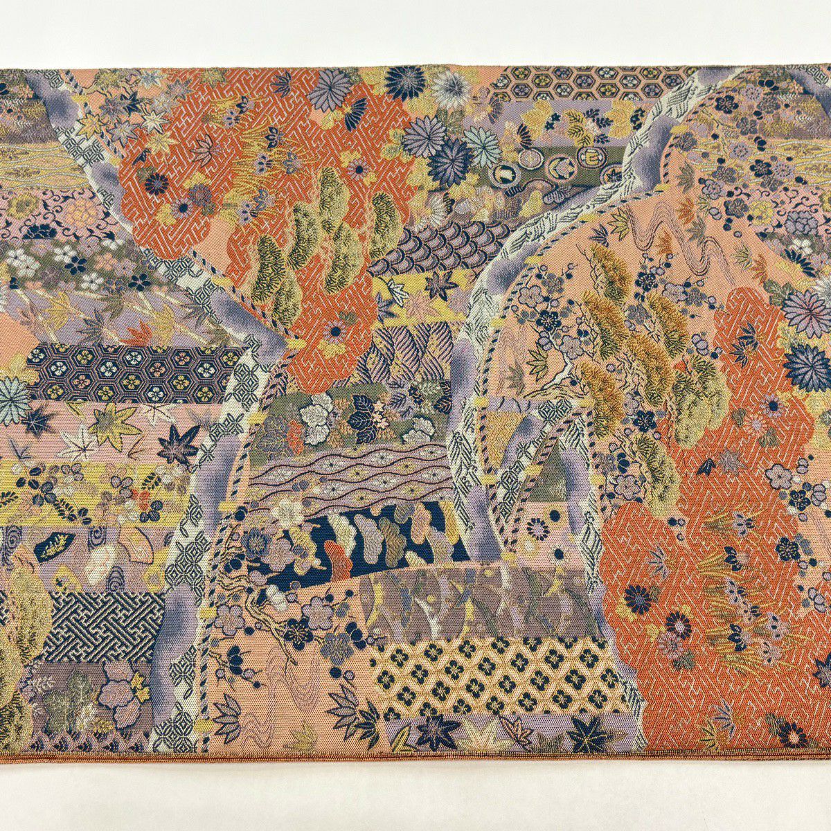 【美品】 袋帯 秀品 扇面 霞 金糸 箔 薄オレンジ お太鼓柄 正絹