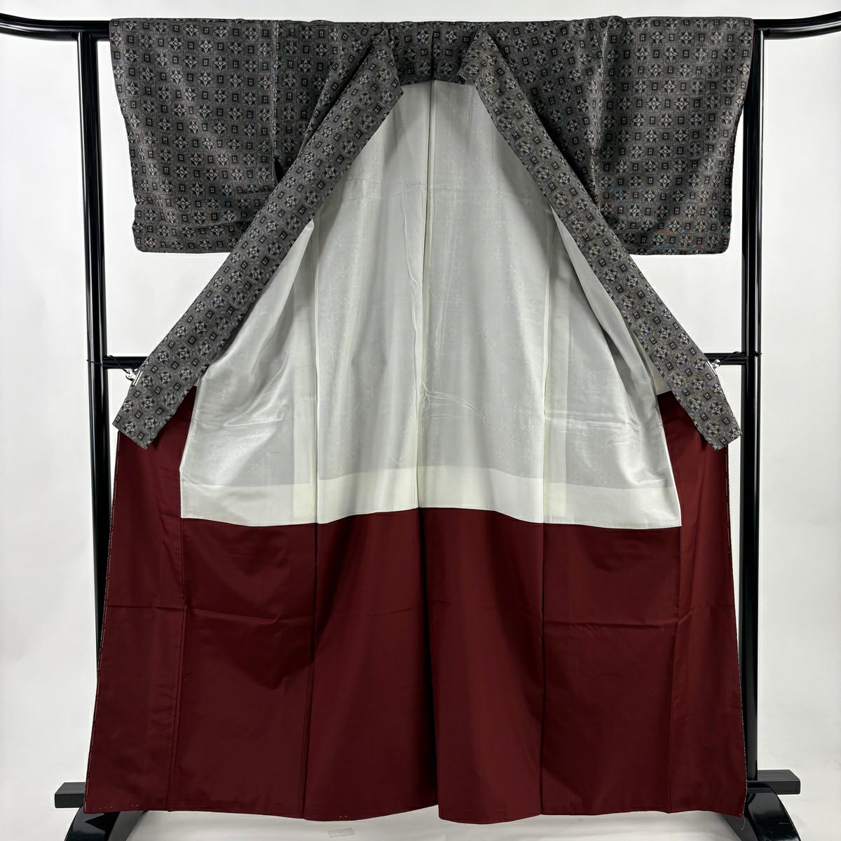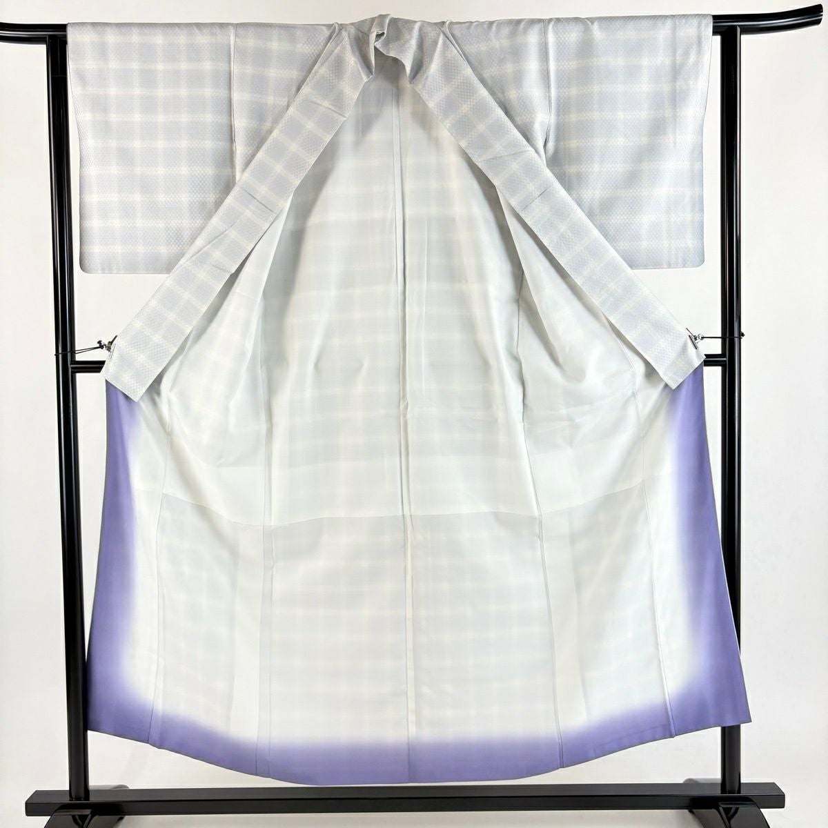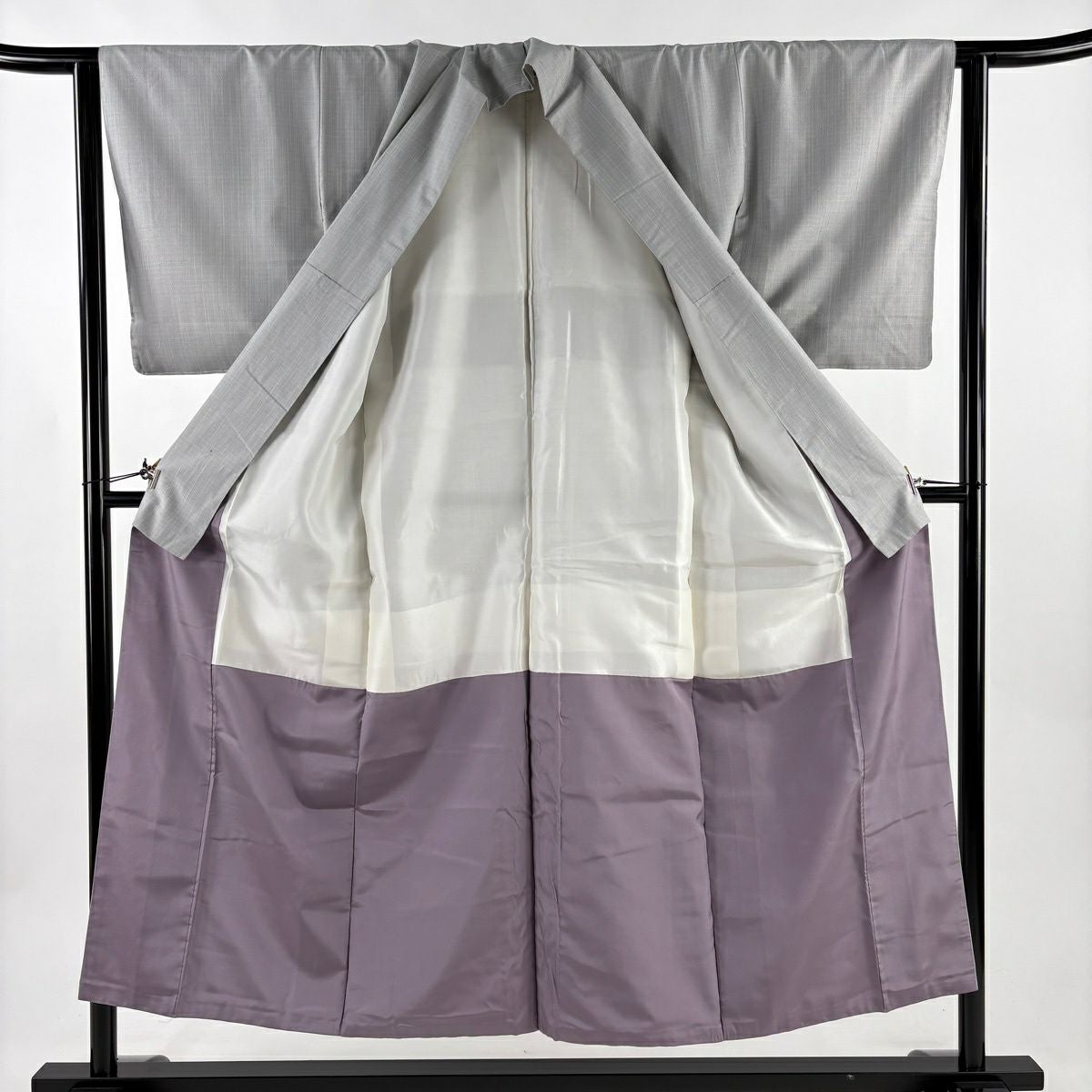 色無地 身丈151.5cm 裄丈62.5cm S 袷 地紋 灰色 正絹 秀品