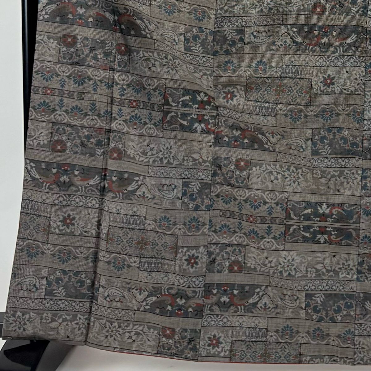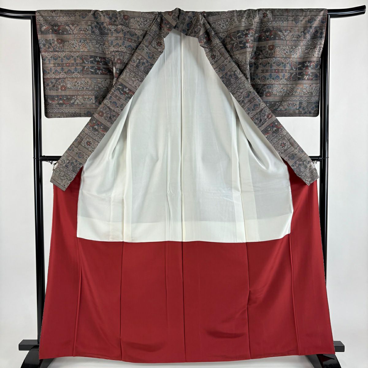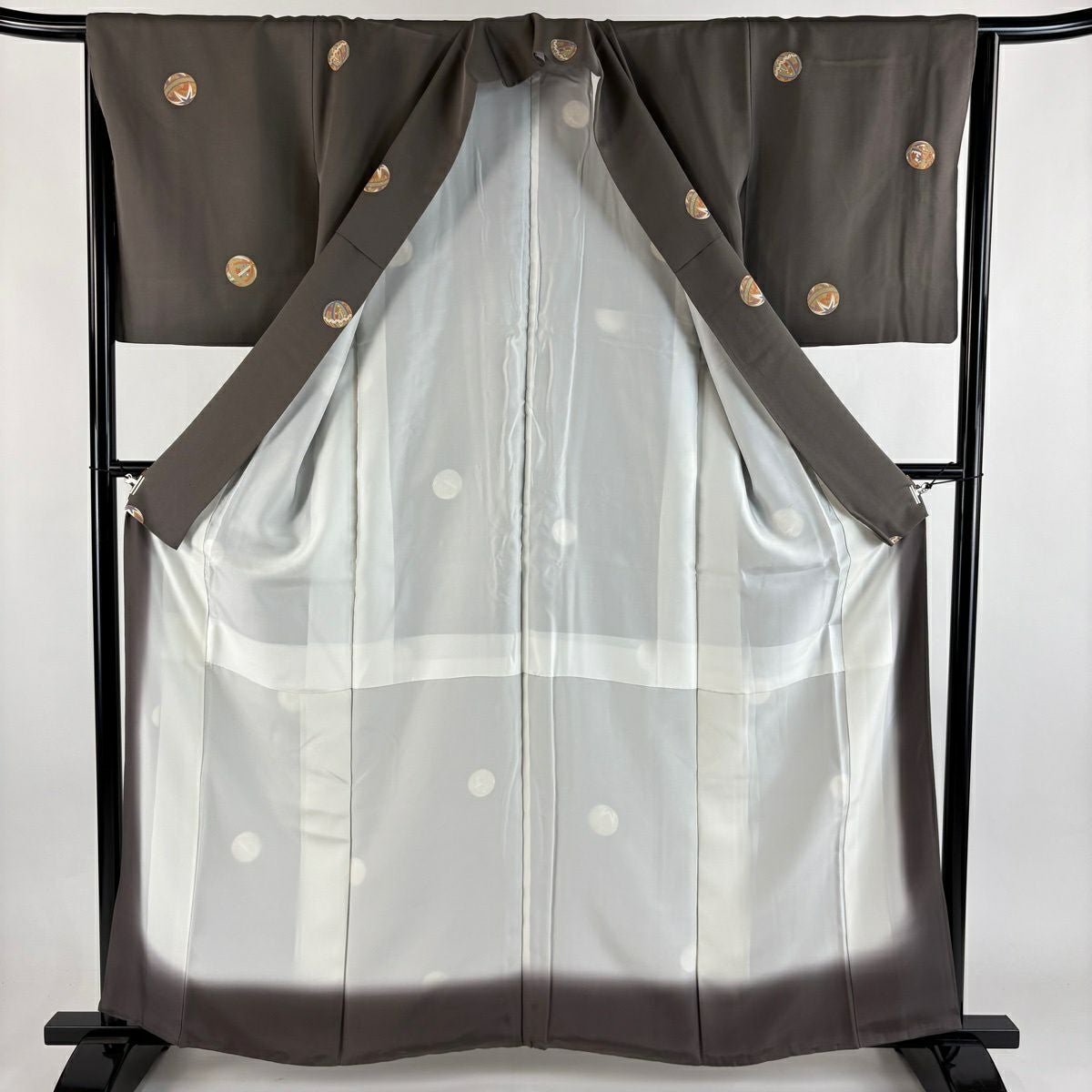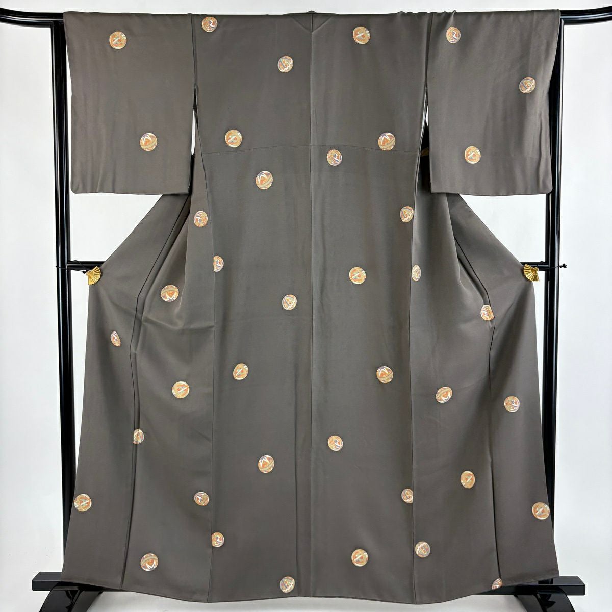 色無地 身丈151.5cm 裄丈62.5cm S 袷 地紋 灰色 正絹 秀品
