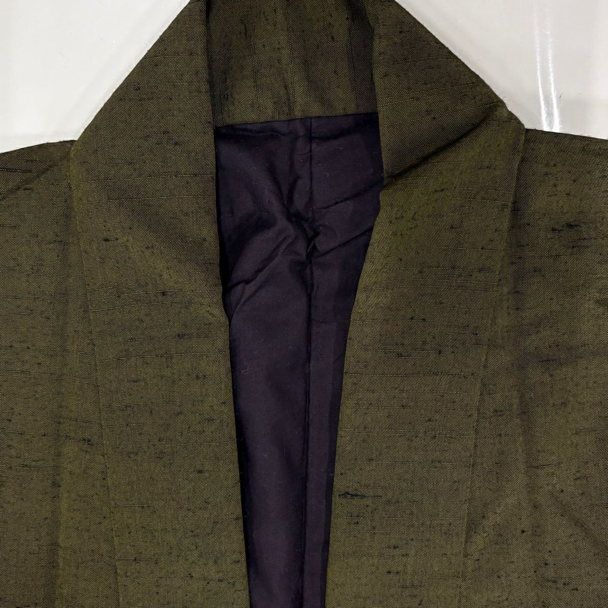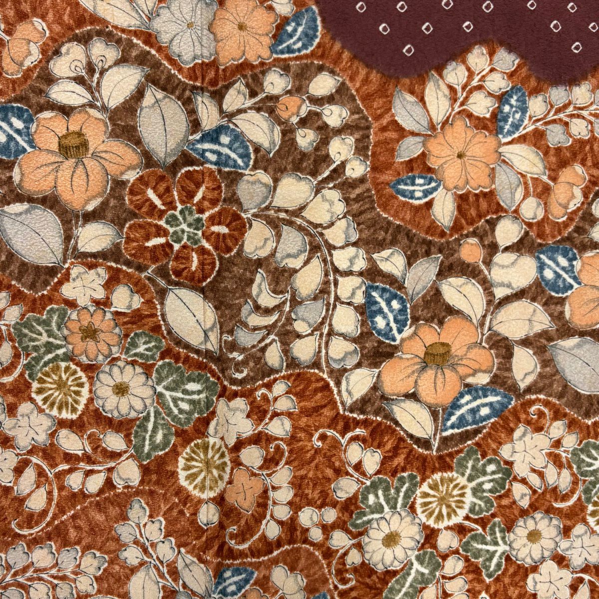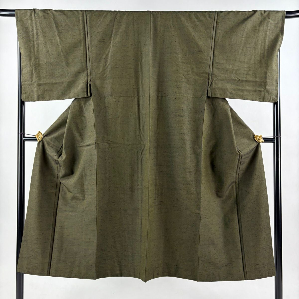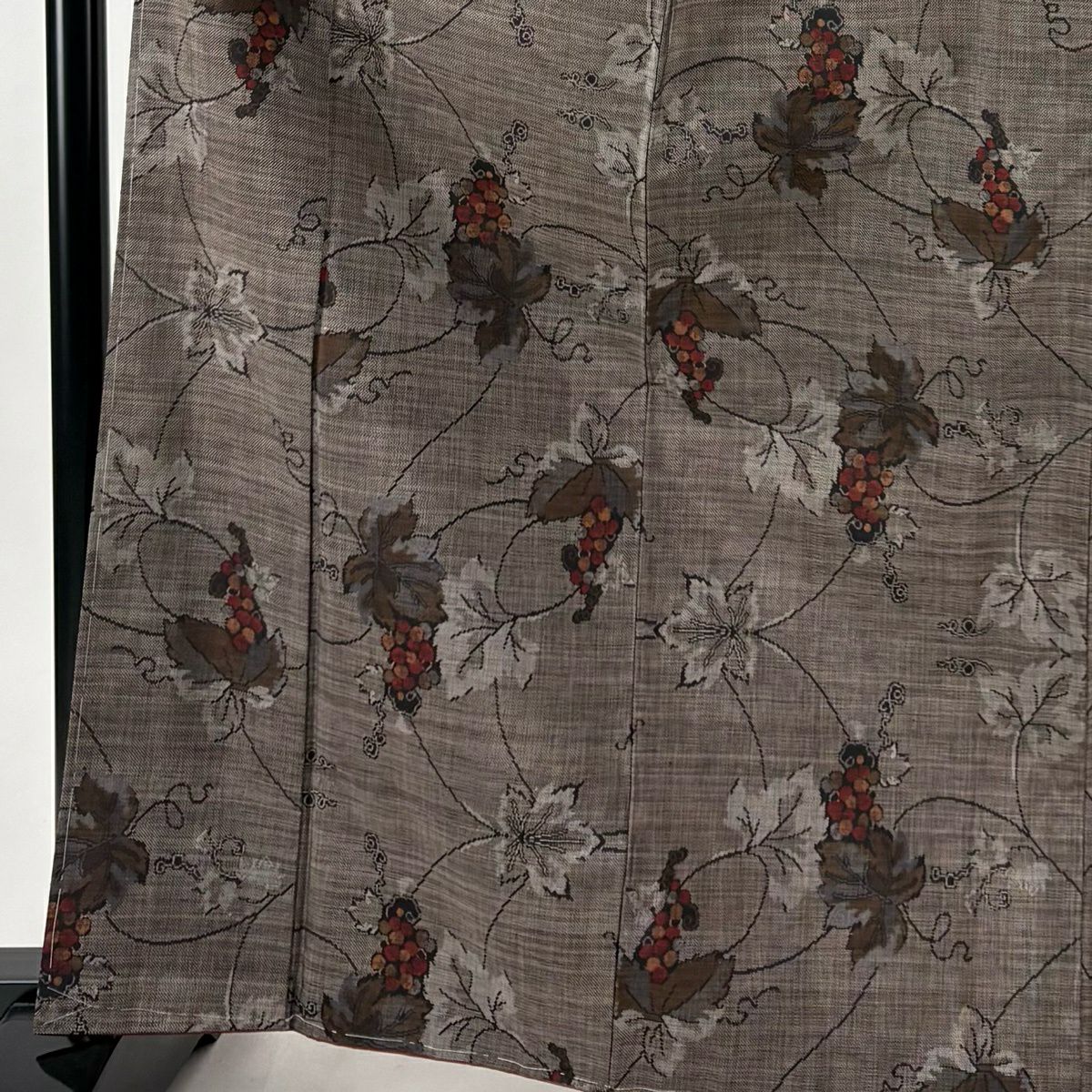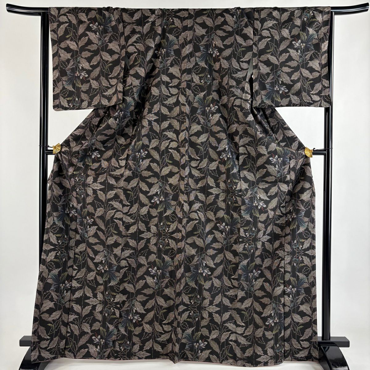 紬 身丈169cm 裄丈66cm M 袷 草花 葉柄 焦茶色 正絹 秀品