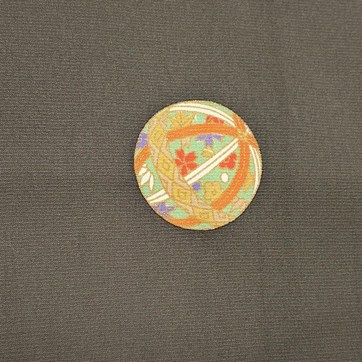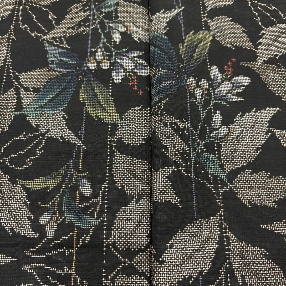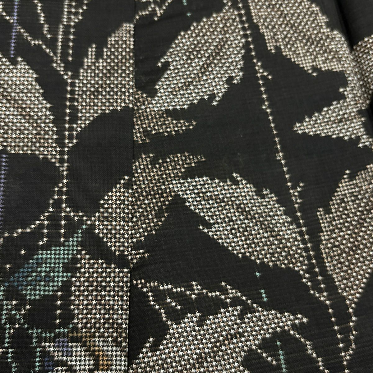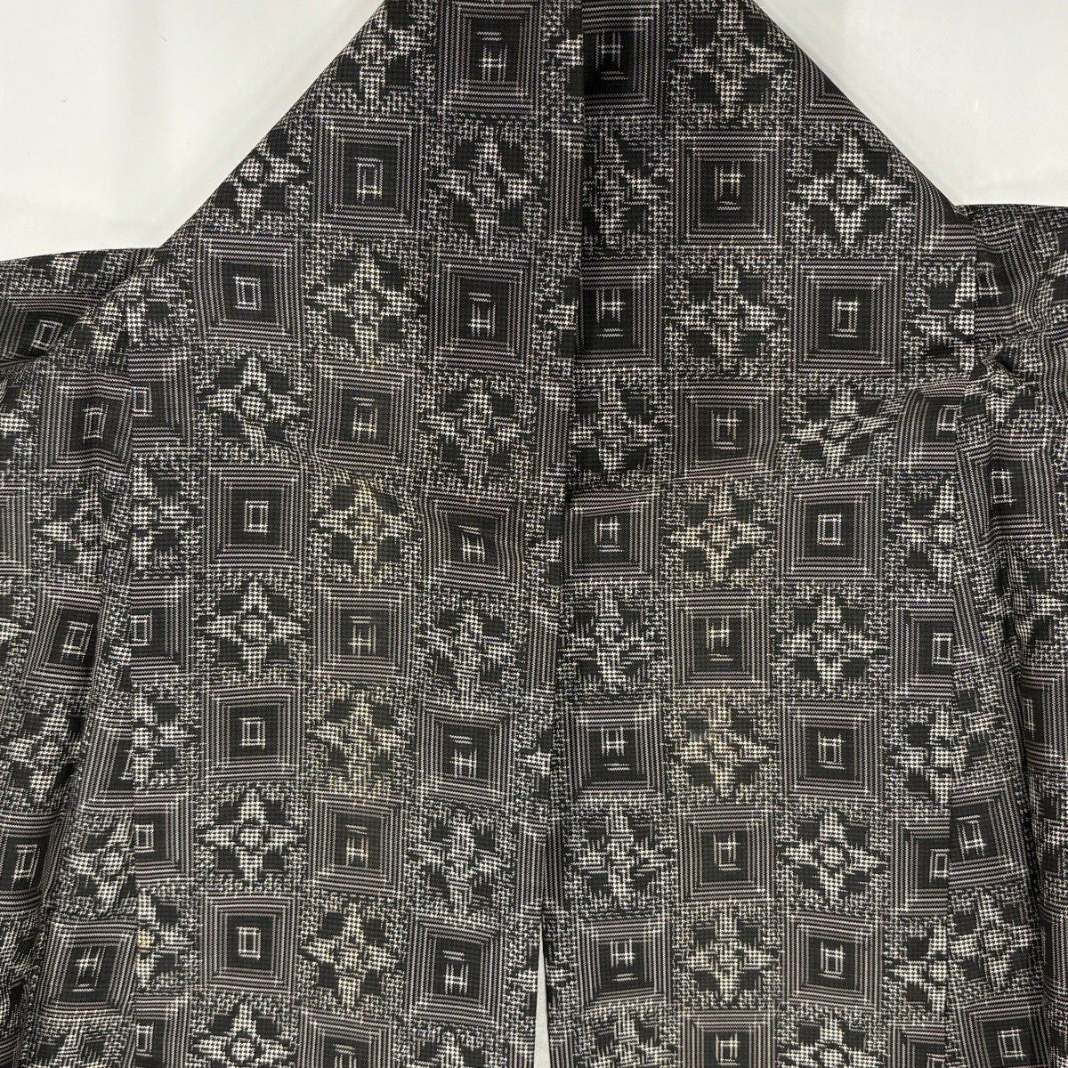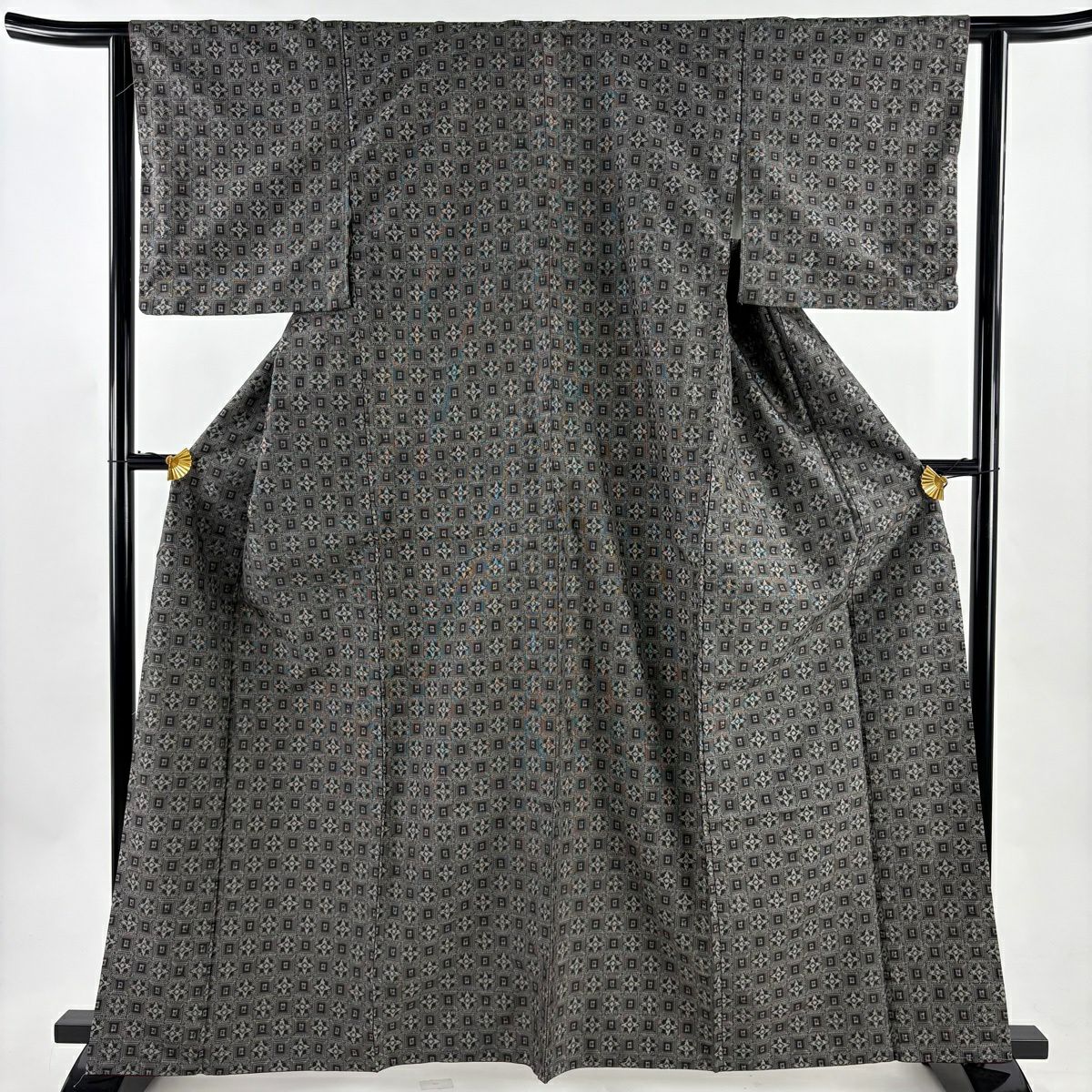 紬 身丈163cm 裄丈62.5cm S 袷 四角 花 墨色 正絹 秀品