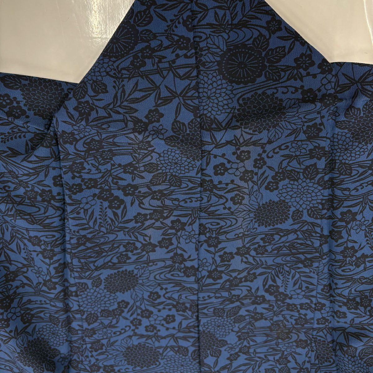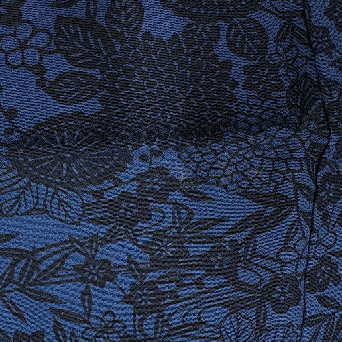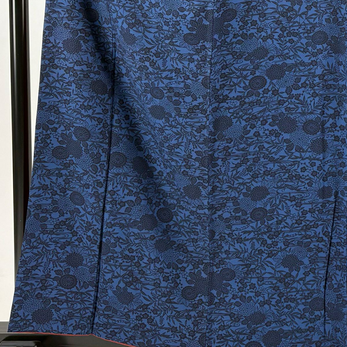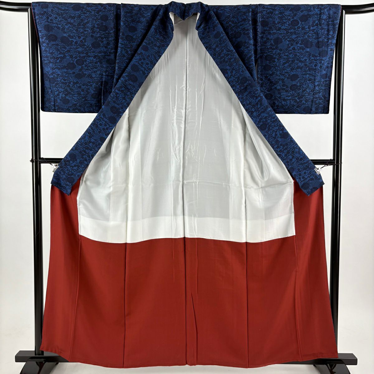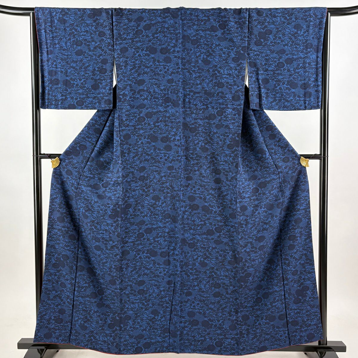 小紋 身丈160cm 裄丈66cm M 袷 草花 流水 紺色 正絹 秀品