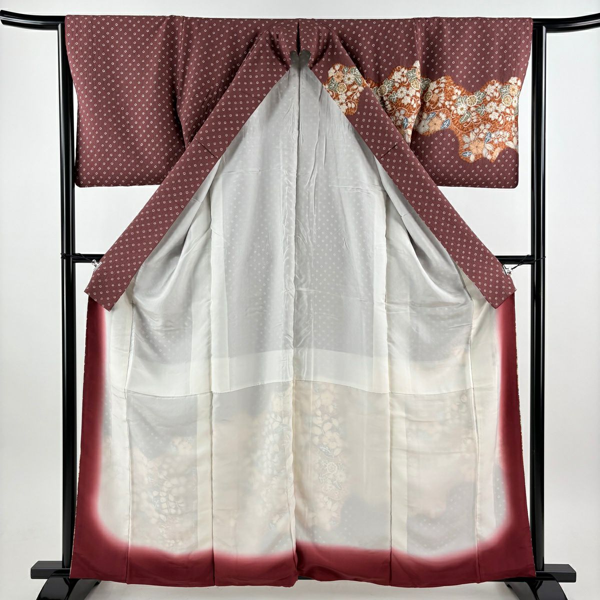 訪問着 身丈161cm 裄丈63.5cm S 袷 草花 赤紫 正絹 秀品