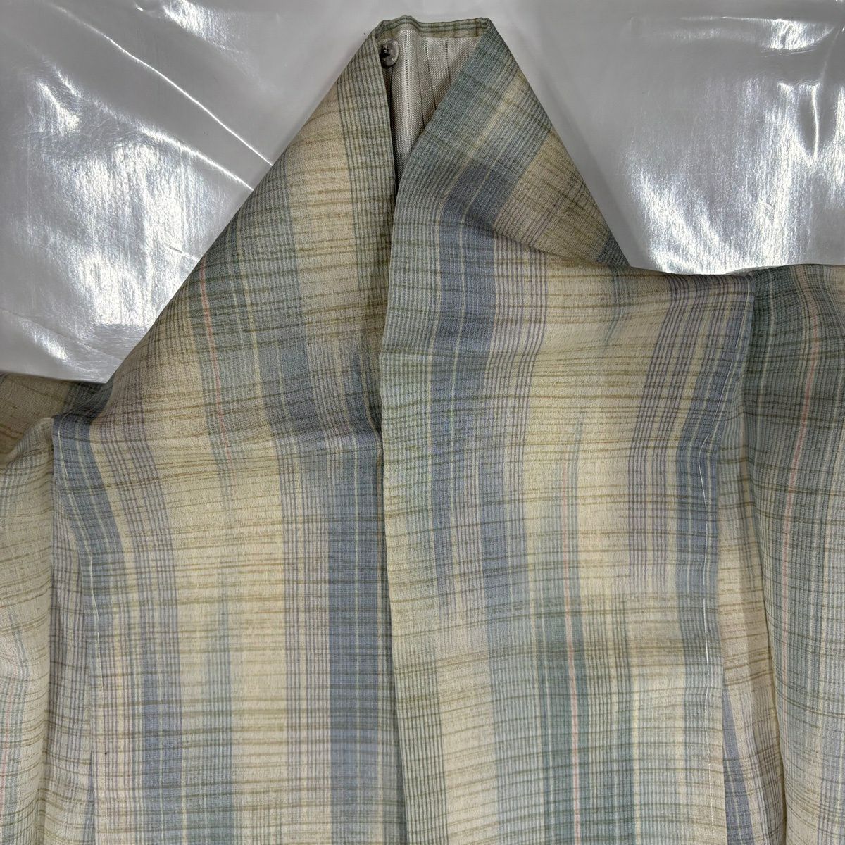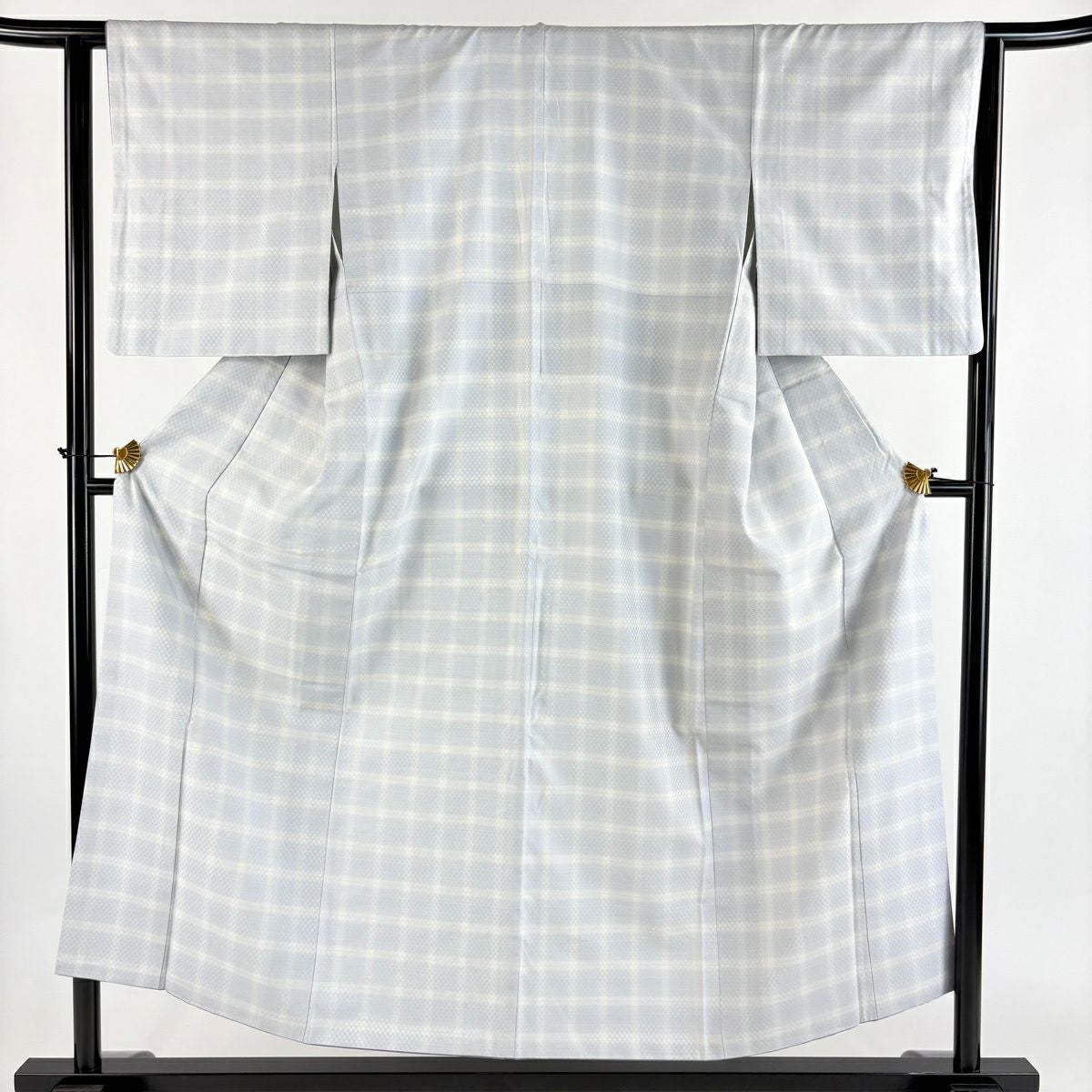 小紋 身丈156.5cm 裄丈61.5cm S 薄物 縞 青灰色 正絹 秀品