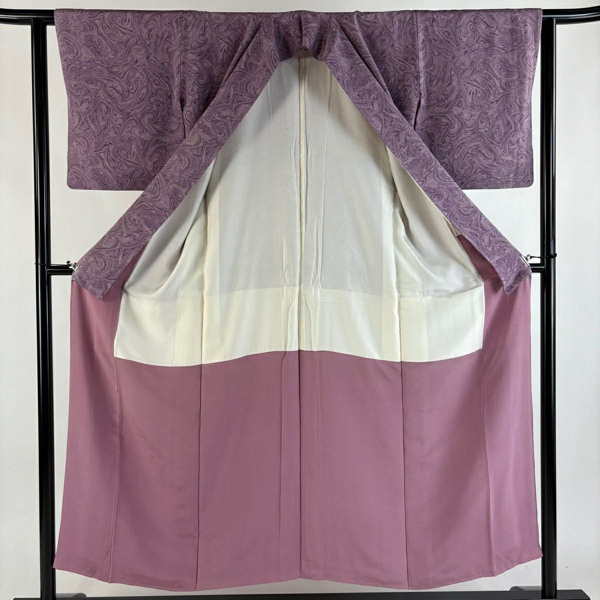 小紋 身丈151.5cm 裄丈62cm S 袷 墨流し 薄紫 正絹 秀品
