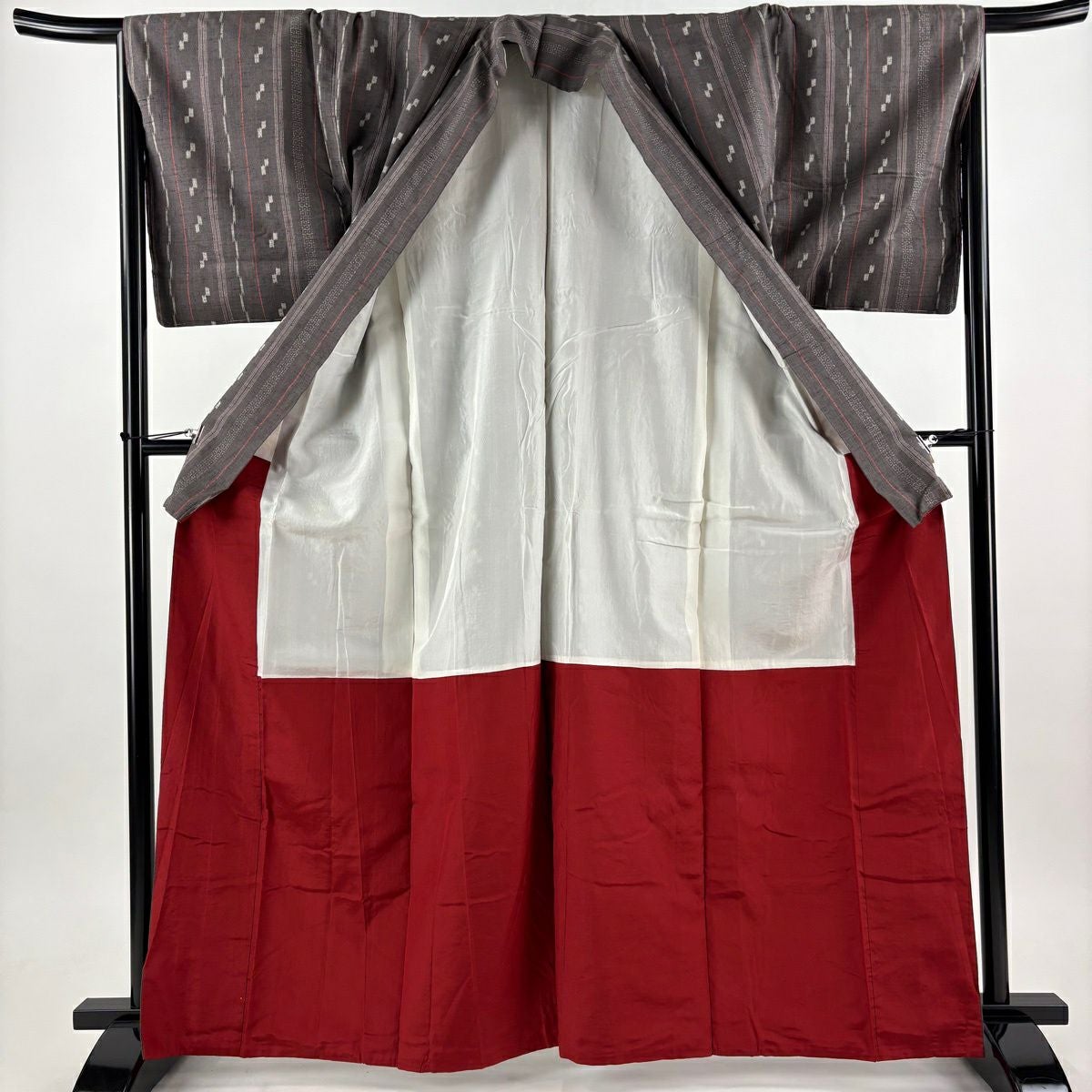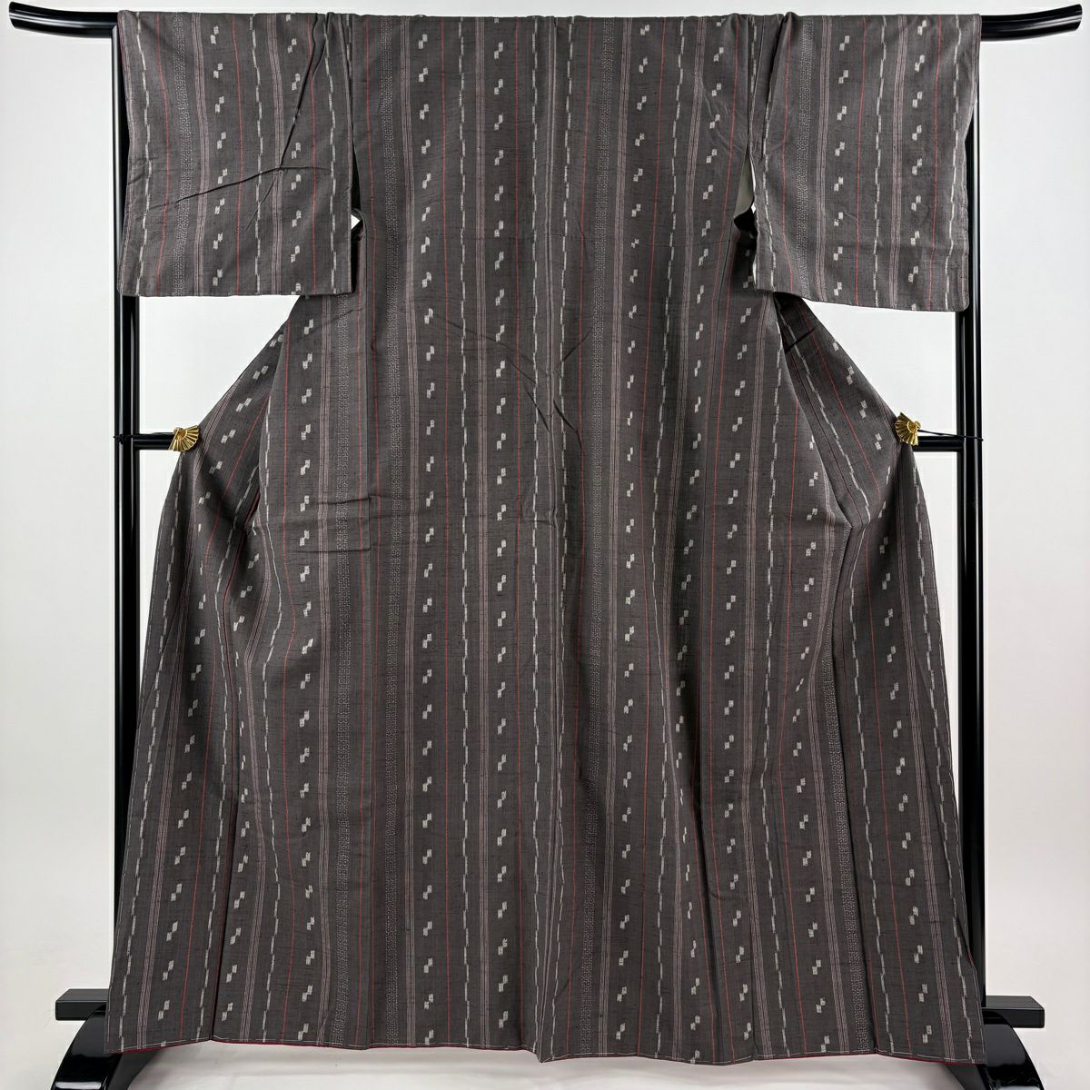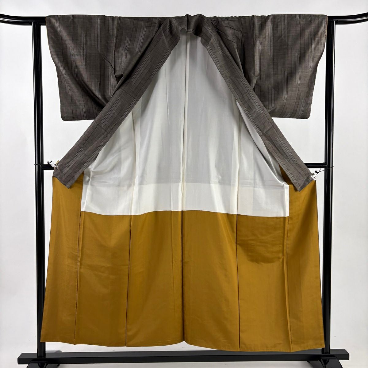 紬 身丈154cm 裄丈61.5cm S 袷 紗縞 縞 灰茶 正絹 秀品