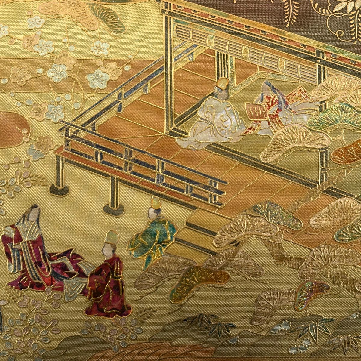 【美品】 袋帯 秀品 琳派清栄 枝梅 花鳥 刺繍 金糸 金色 六通 正絹