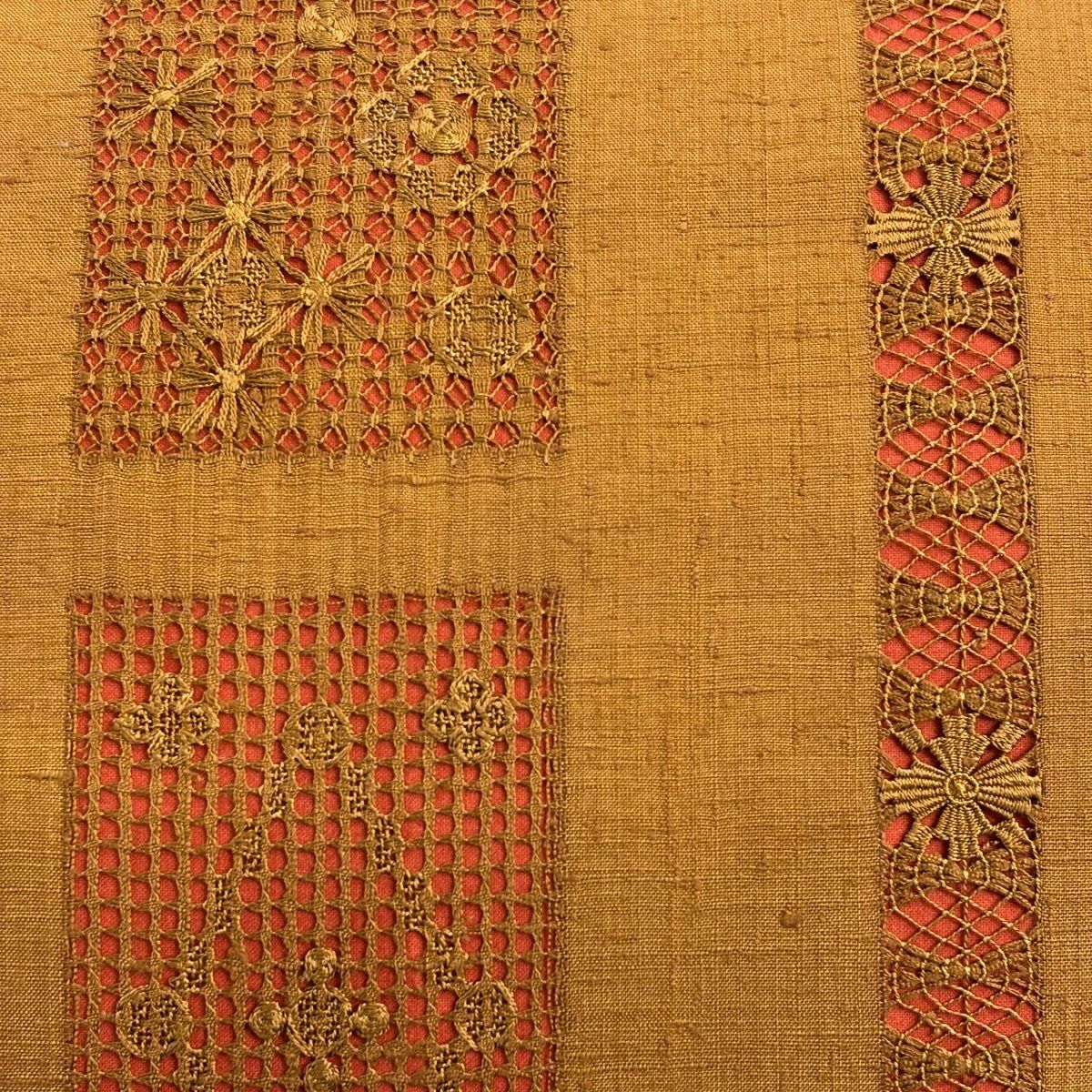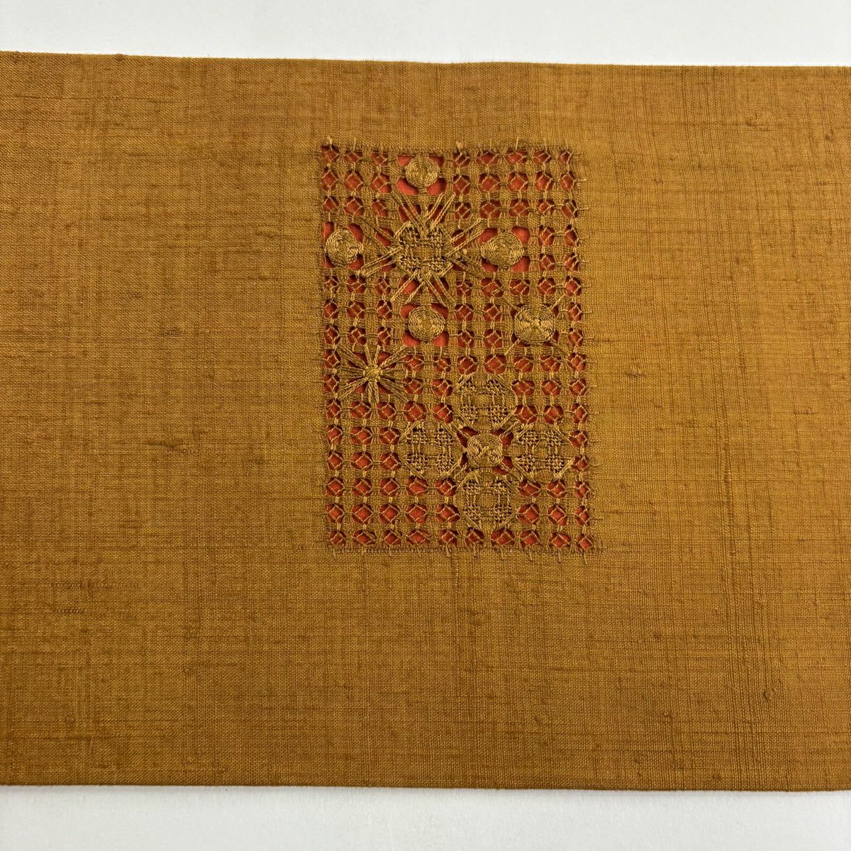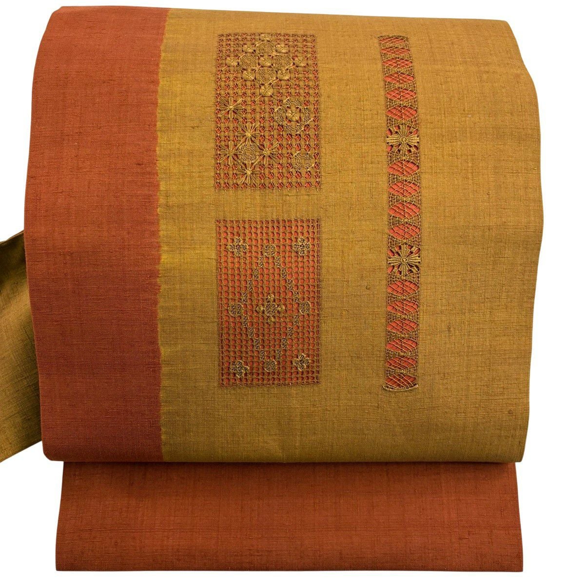 【美品】 袋帯 秀品 瓢箪 紅葉 刺し子 紬地 黄土色 お太鼓柄 正絹