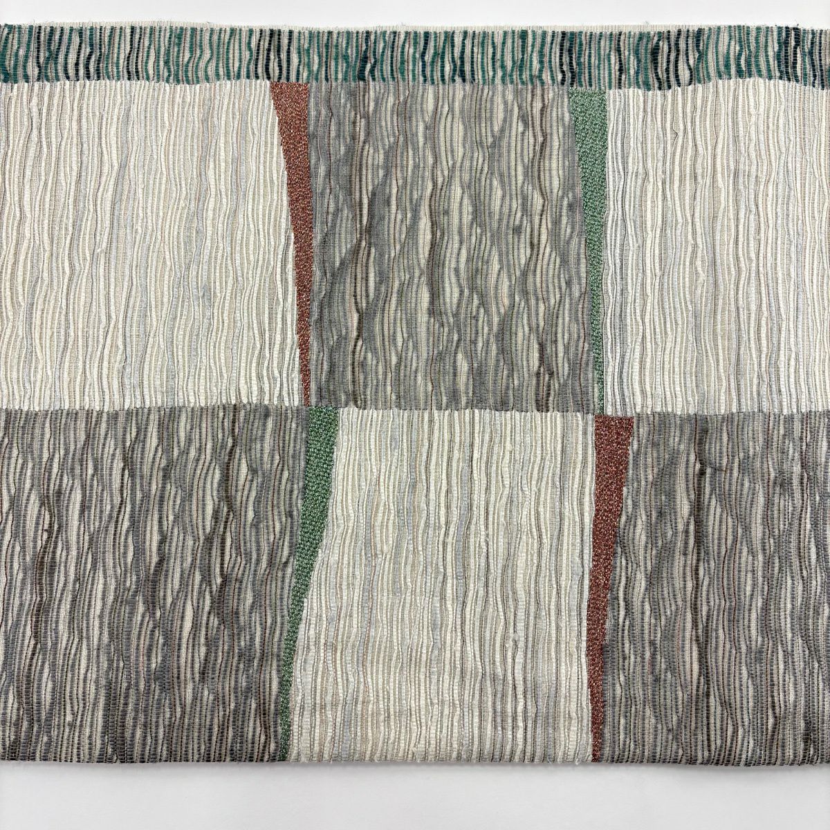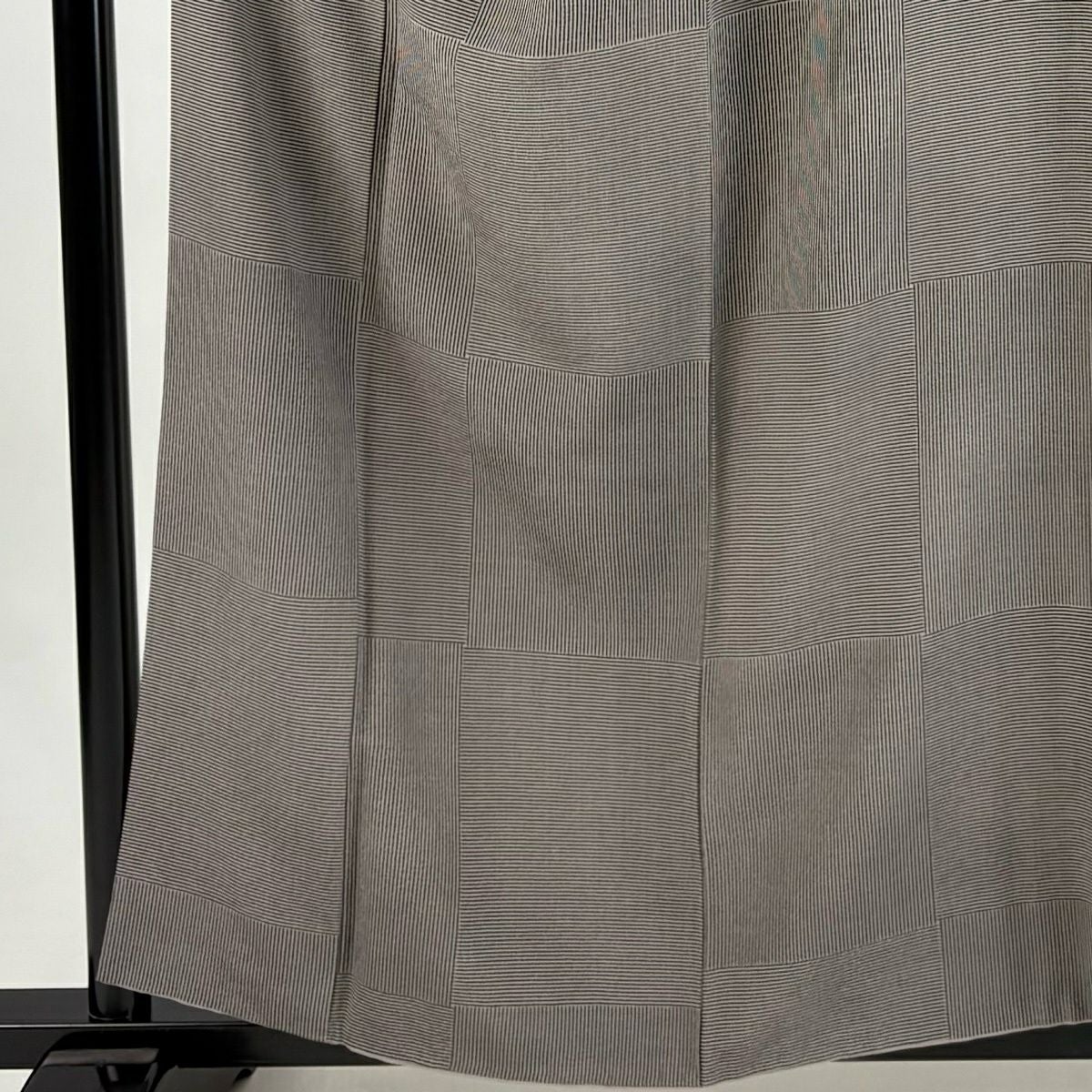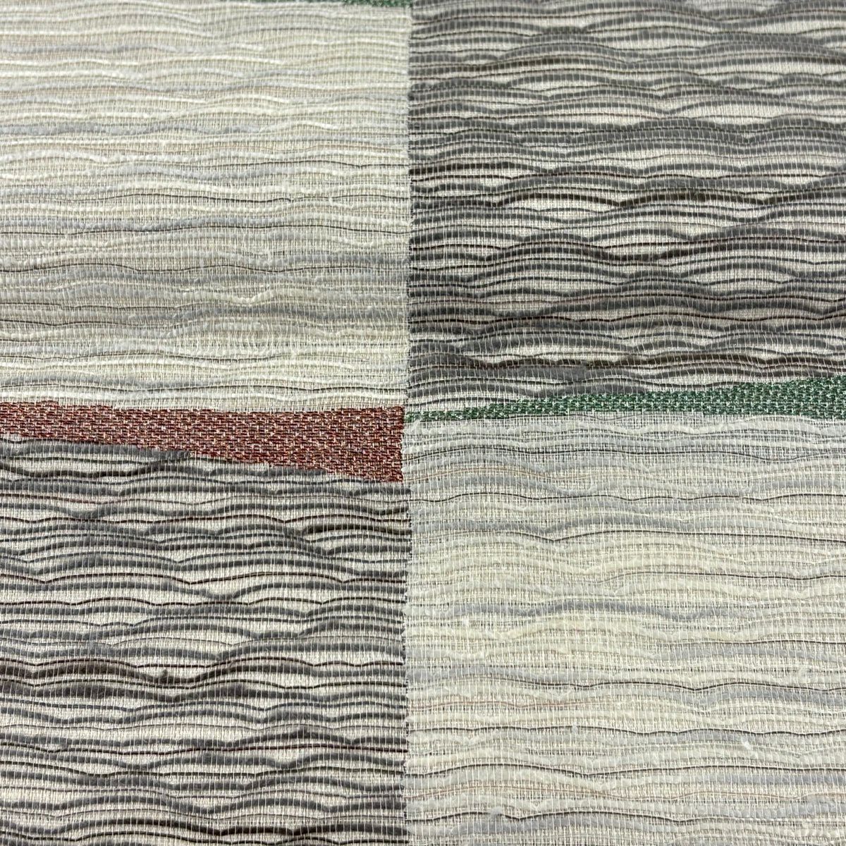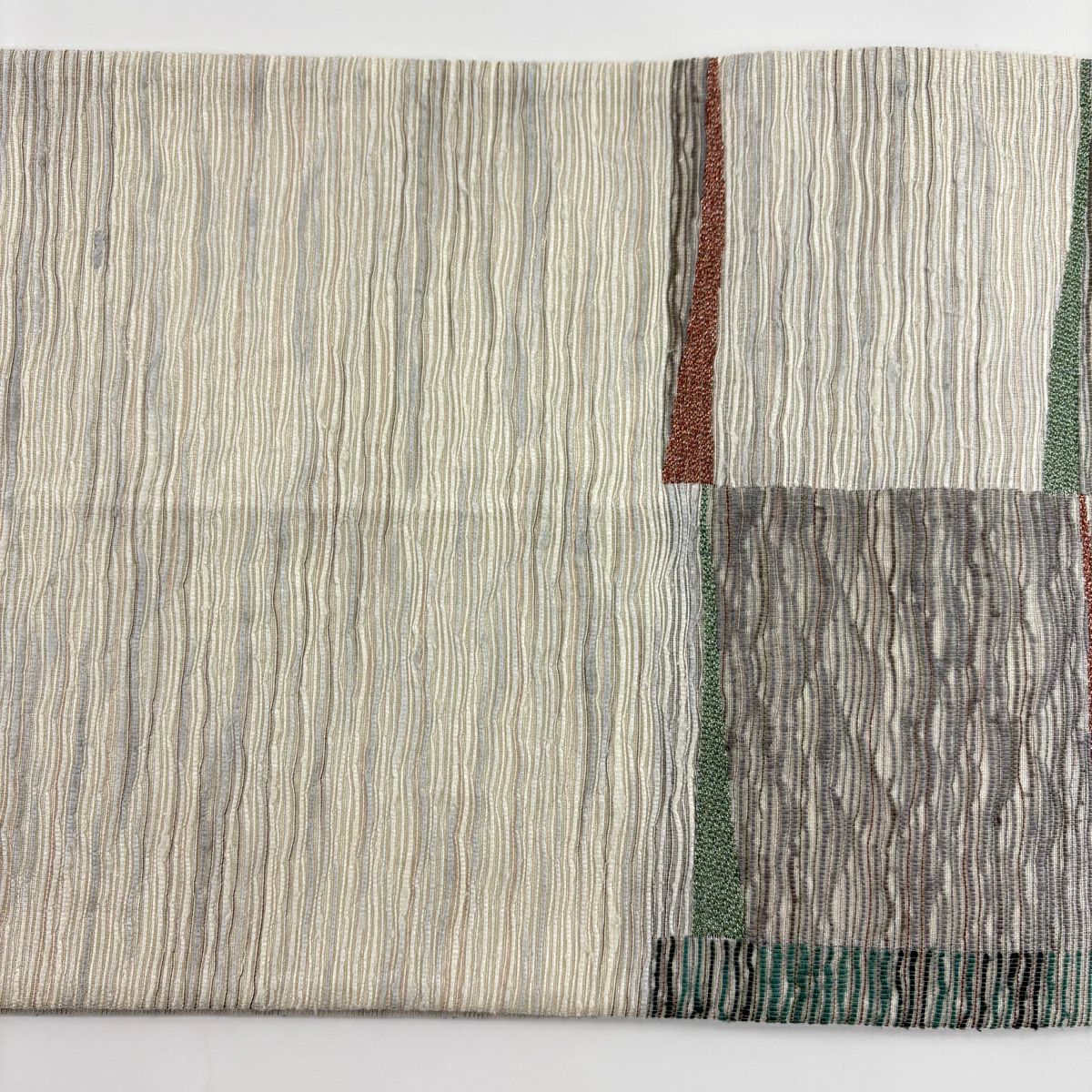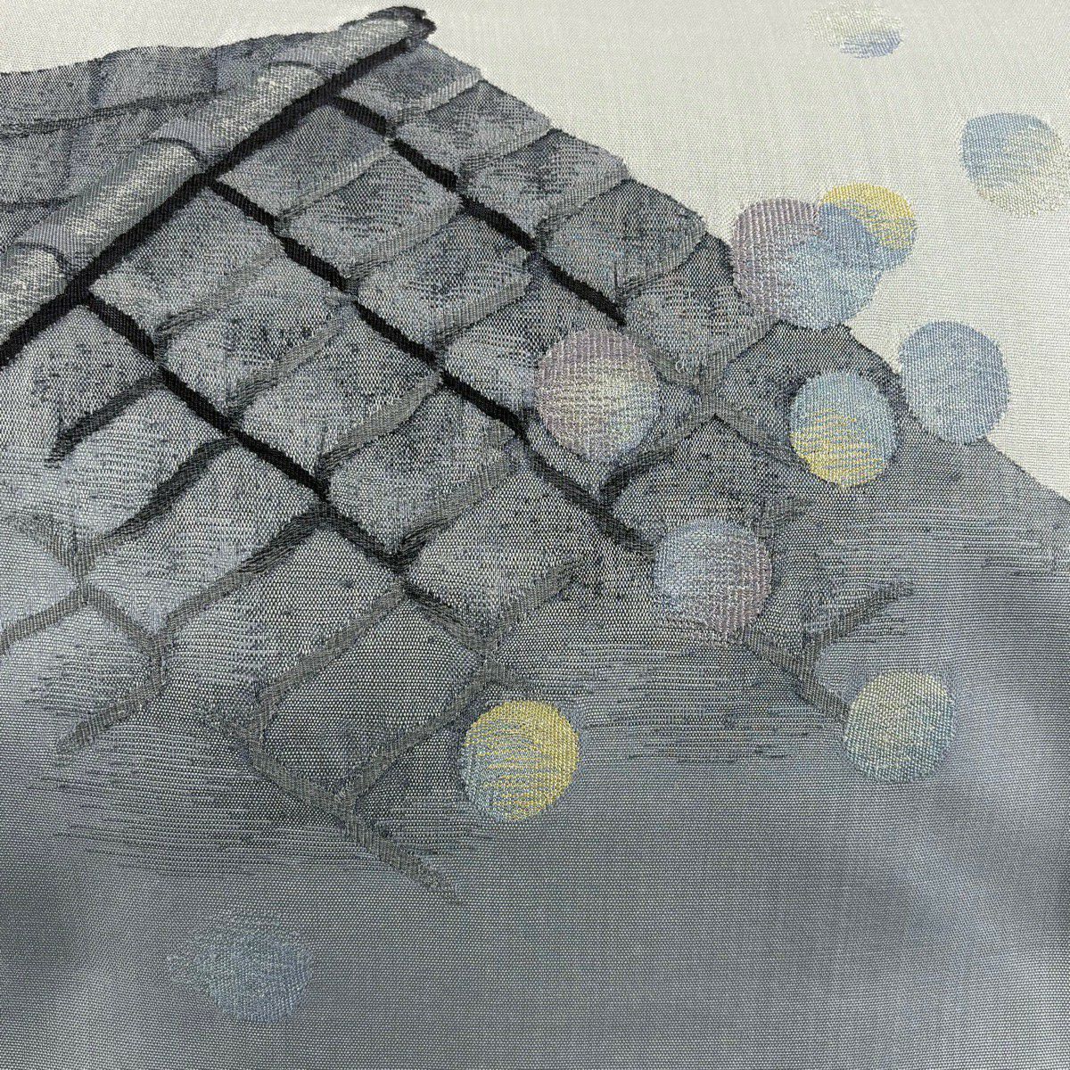 【美品】 袋帯 秀品 変わり市松 よろけ縞 銀糸 箔 灰色 六通 正絹