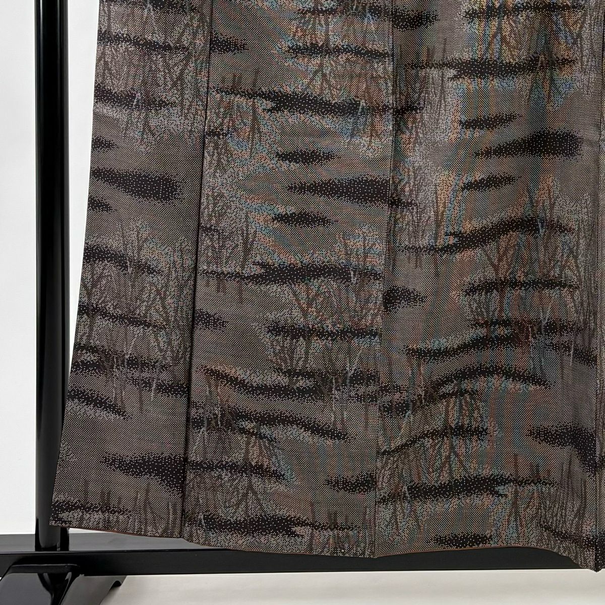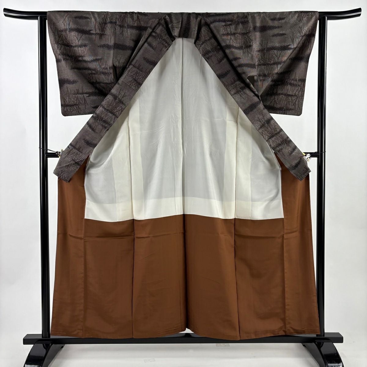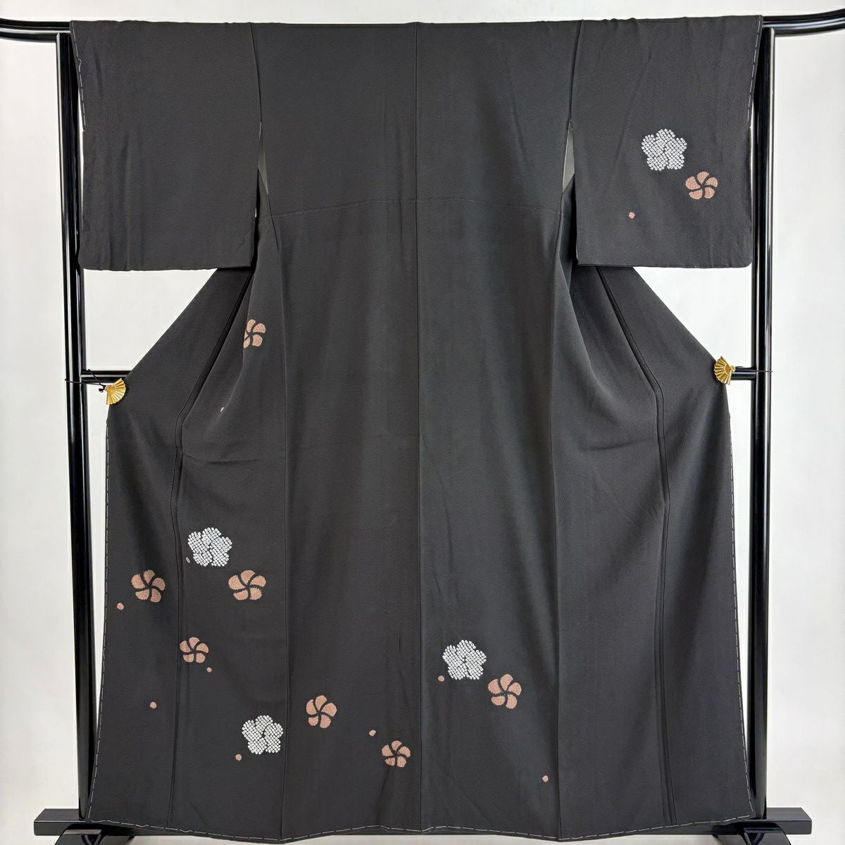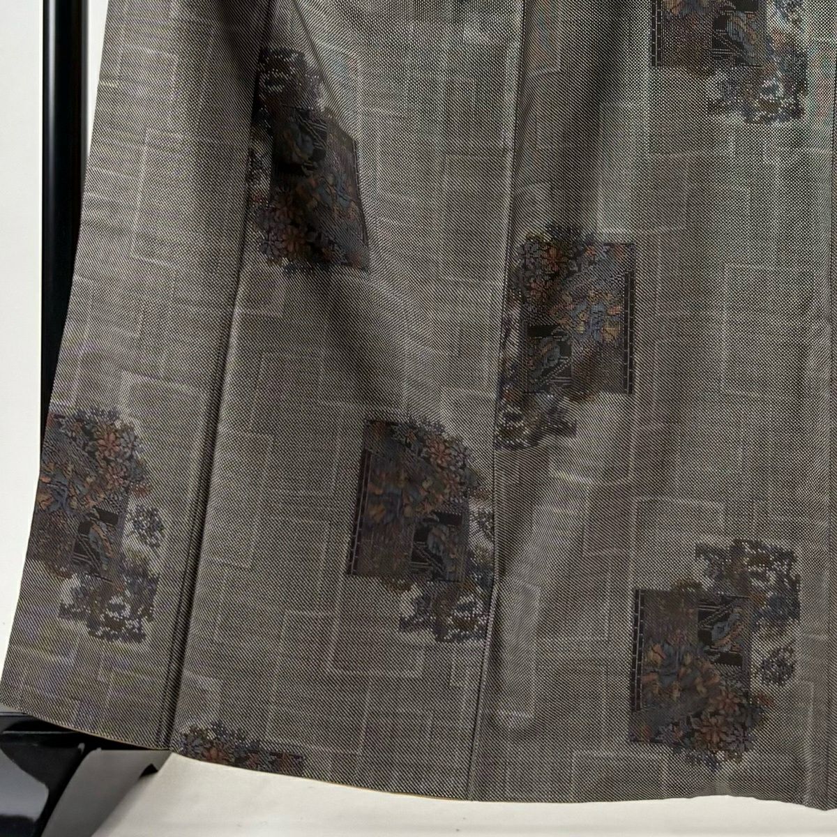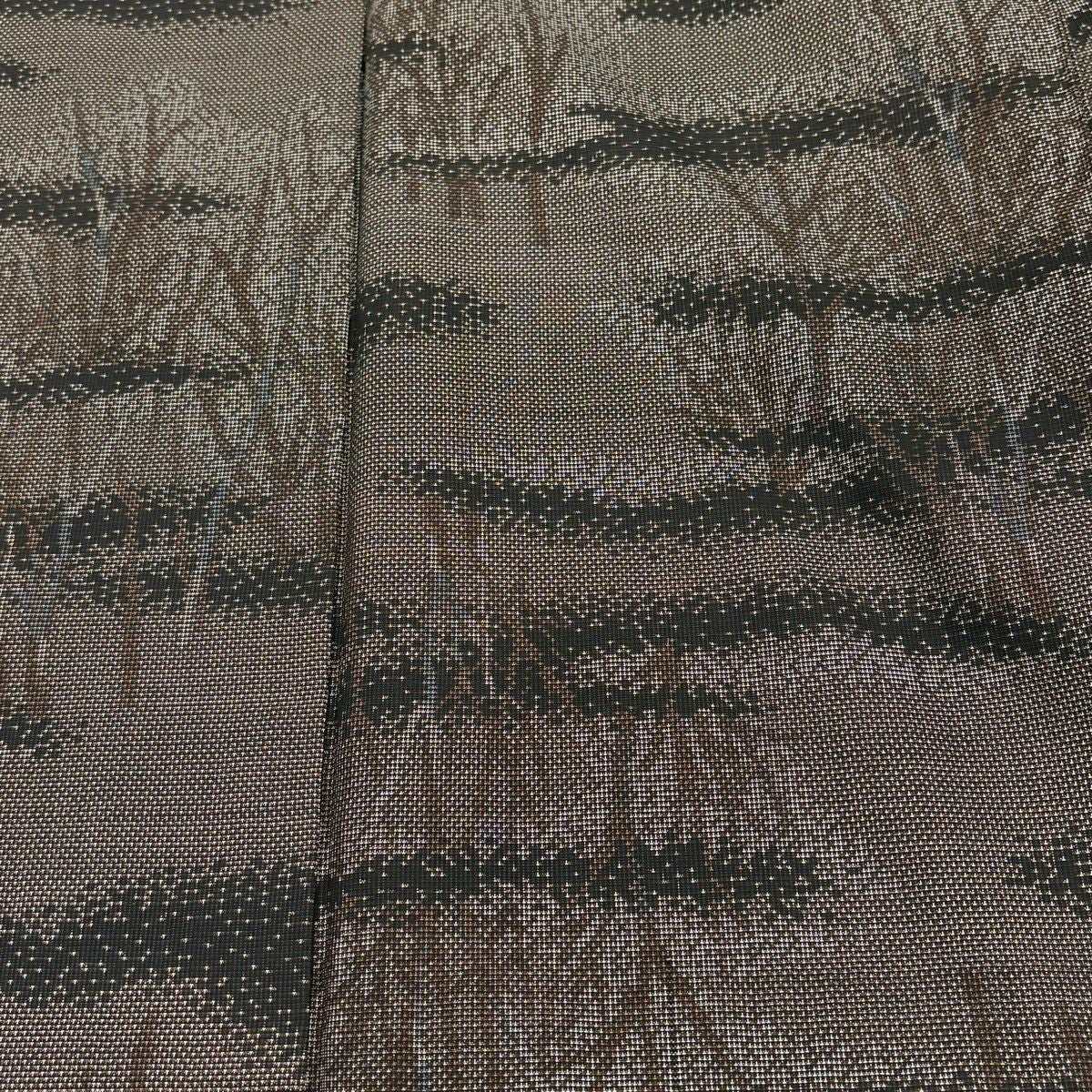 紬 身丈163cm 裄丈66cm M 袷 草花 色紙 焦茶色 正絹 秀品
