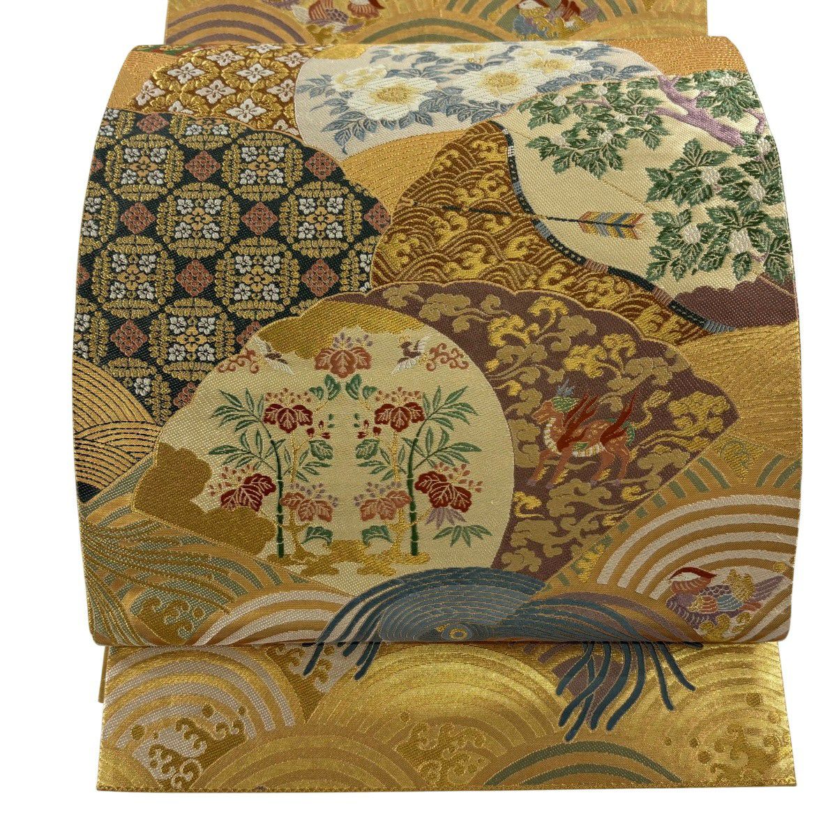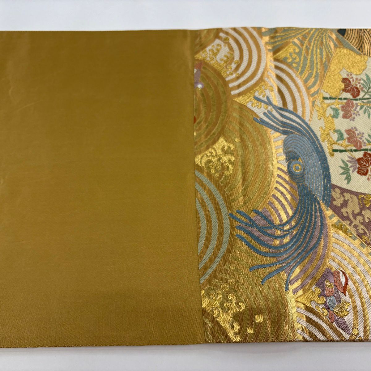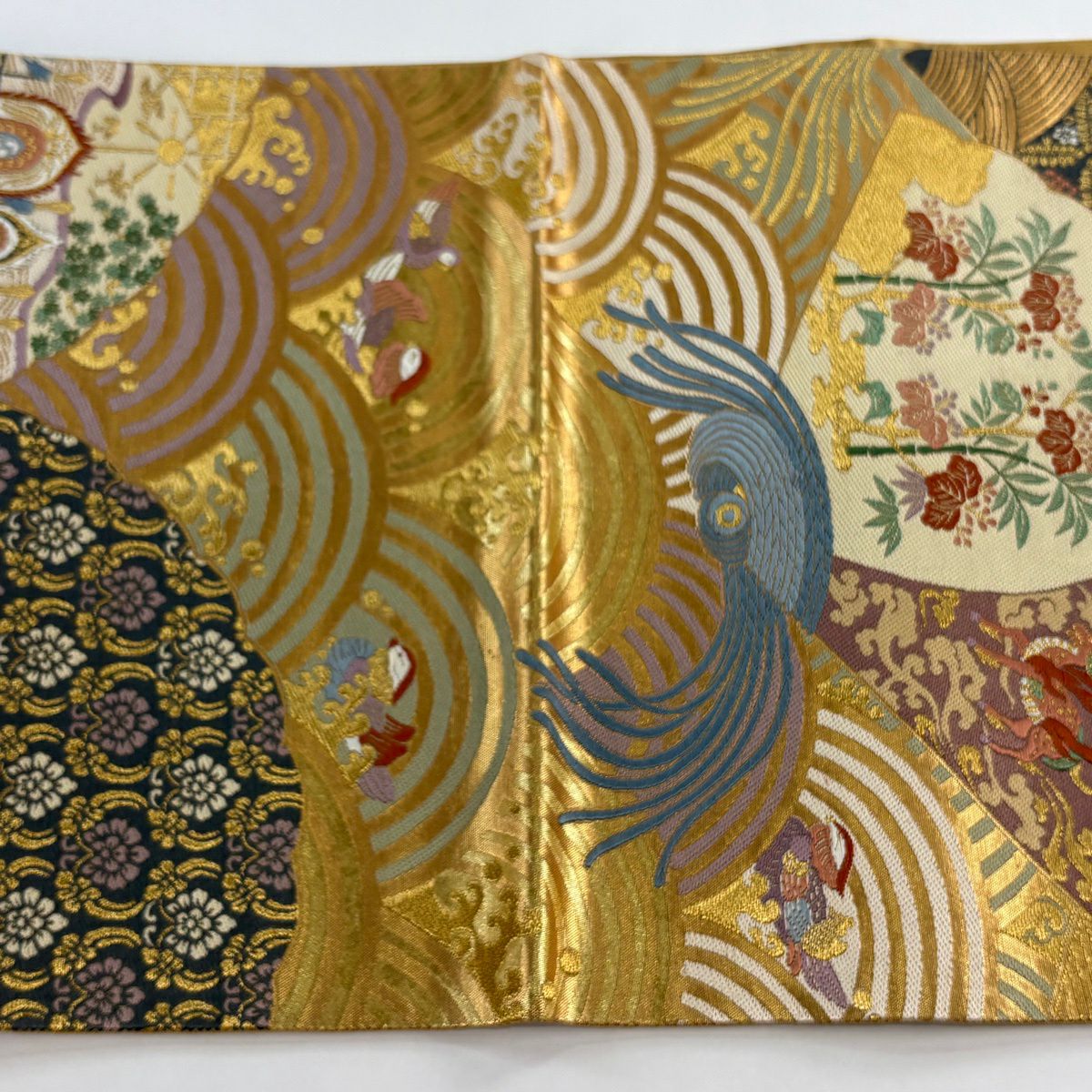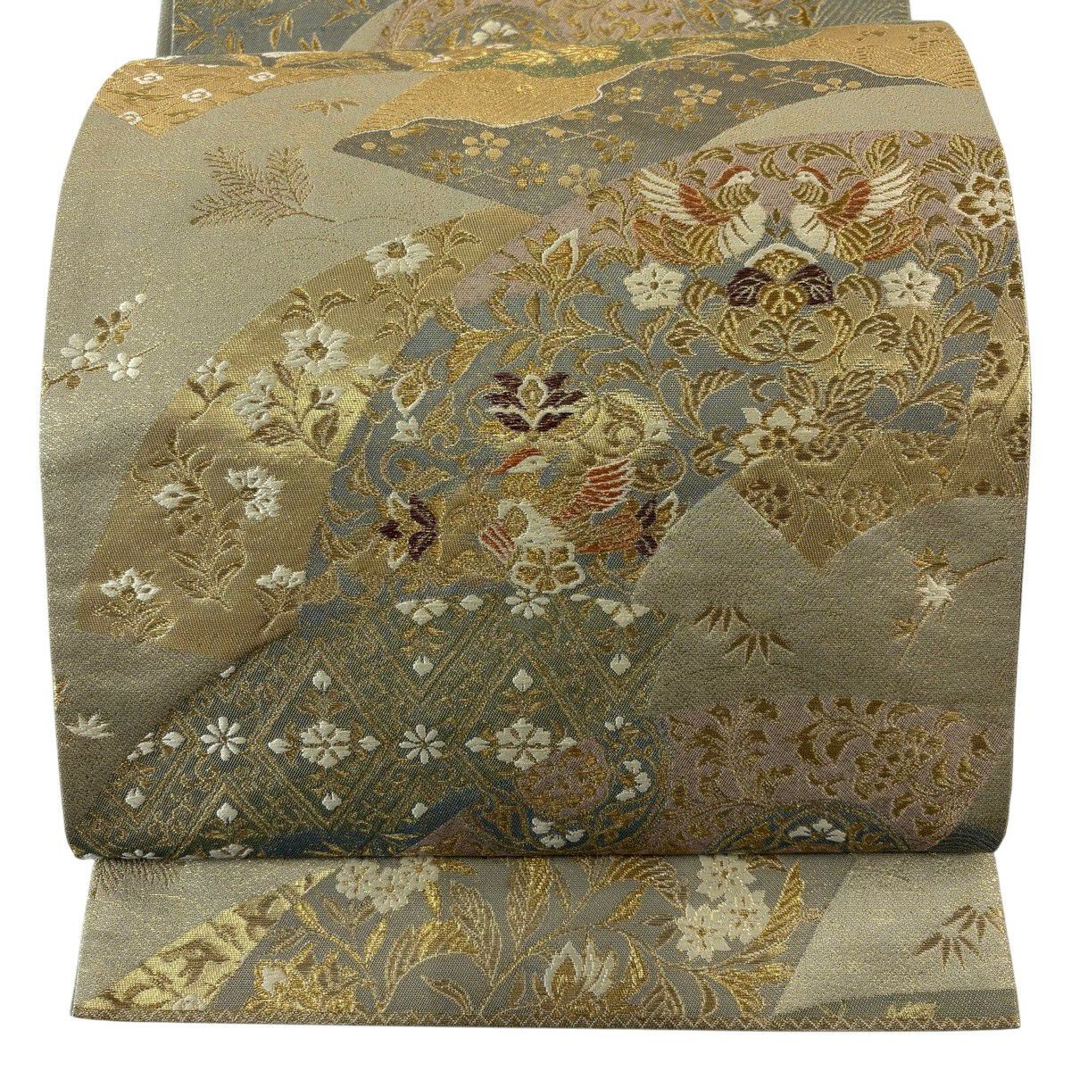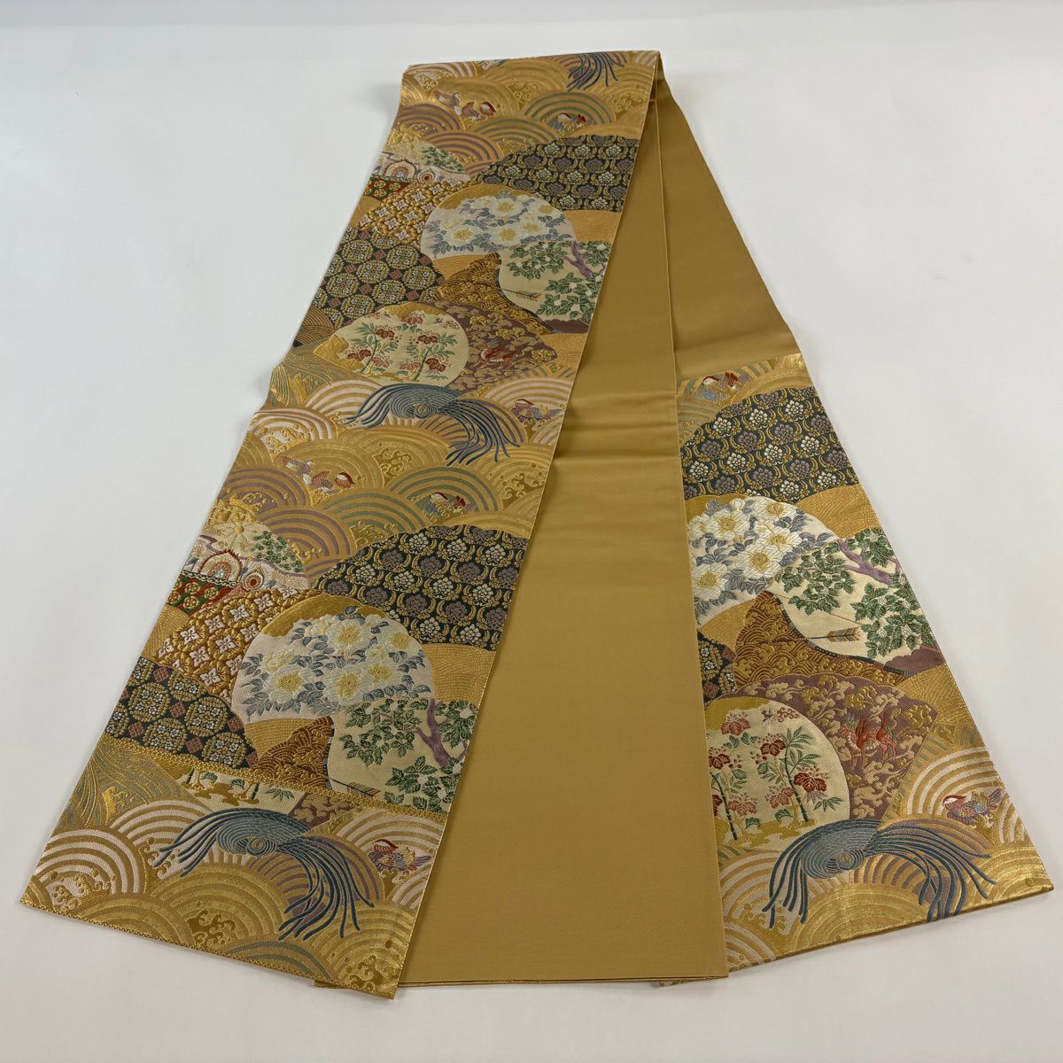 【美品】 袋帯 秀品 祝華文絵図 華文 花鳥 金糸 箔 金色 六通 正絹
