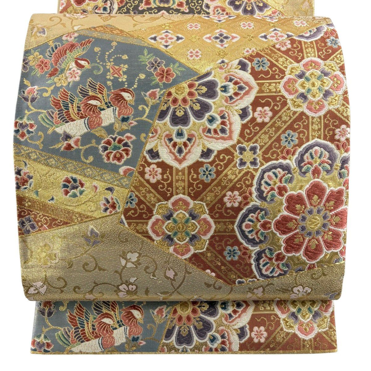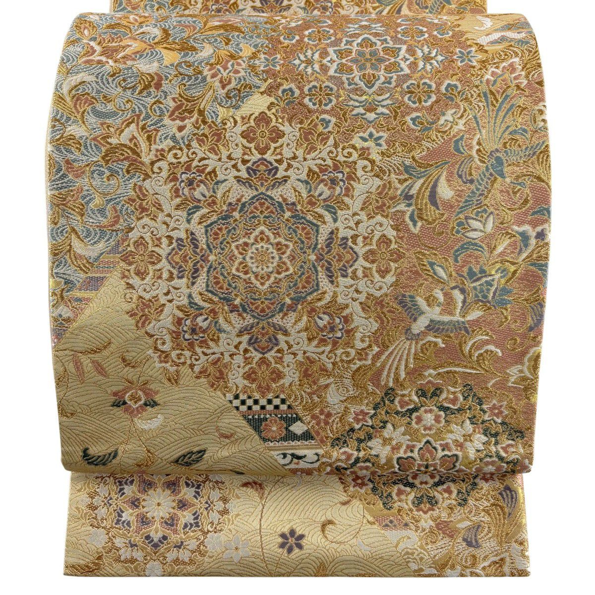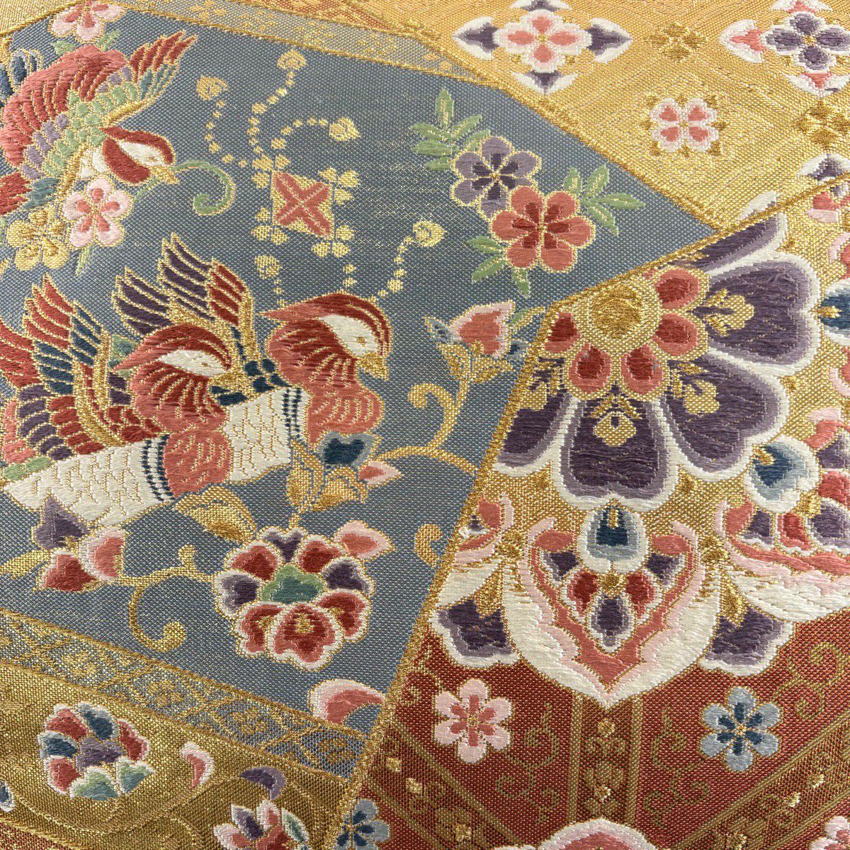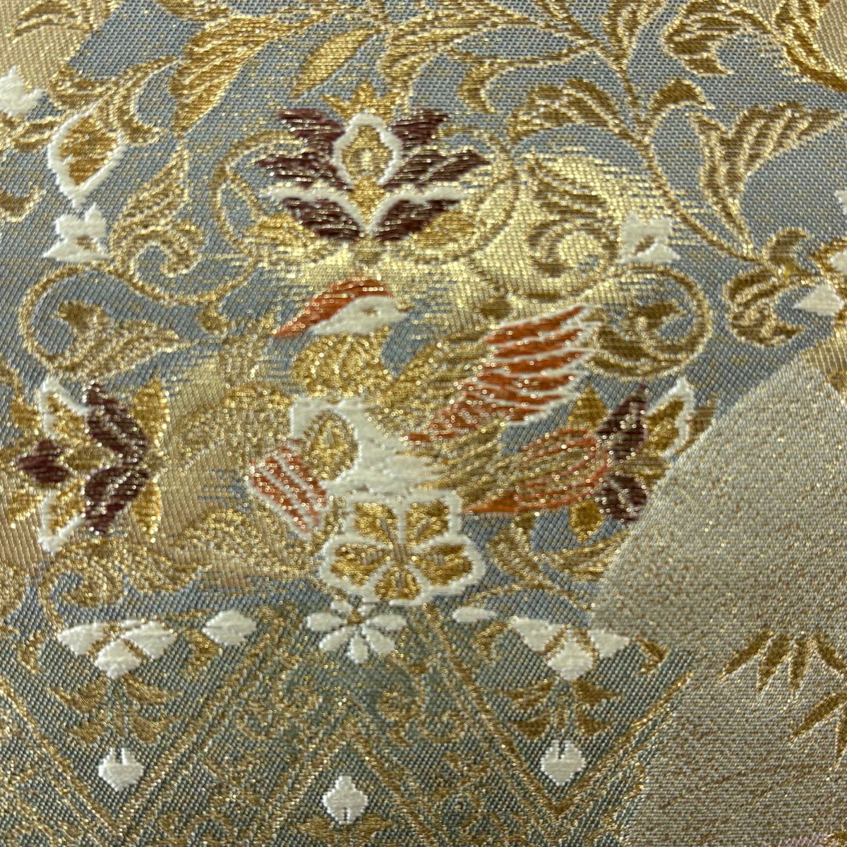 【美品】 袋帯 秀品 更紗正倉院華文 華文 鳥 箔 金糸 金色 六通 正絹