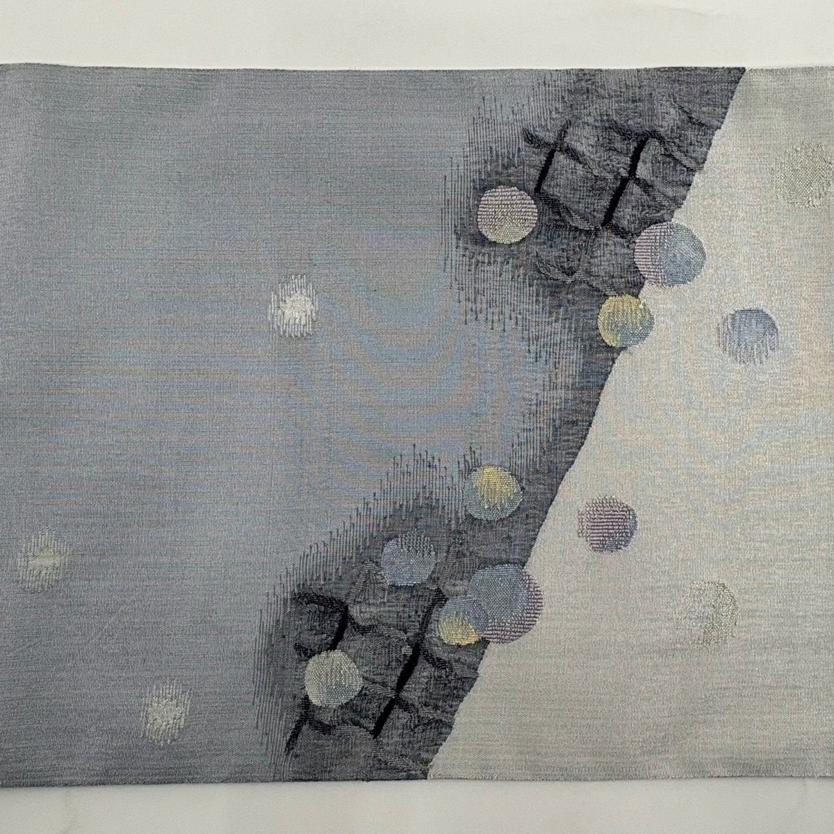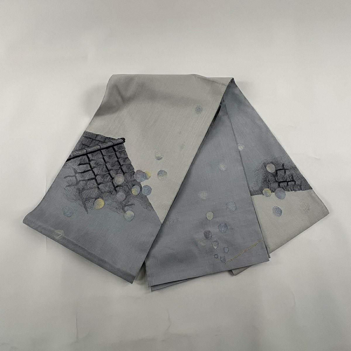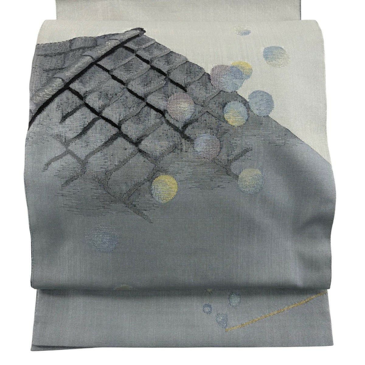 袋帯 秀品 落款あり シャボン玉 屋根 銀糸 青灰色 お太鼓柄 正絹