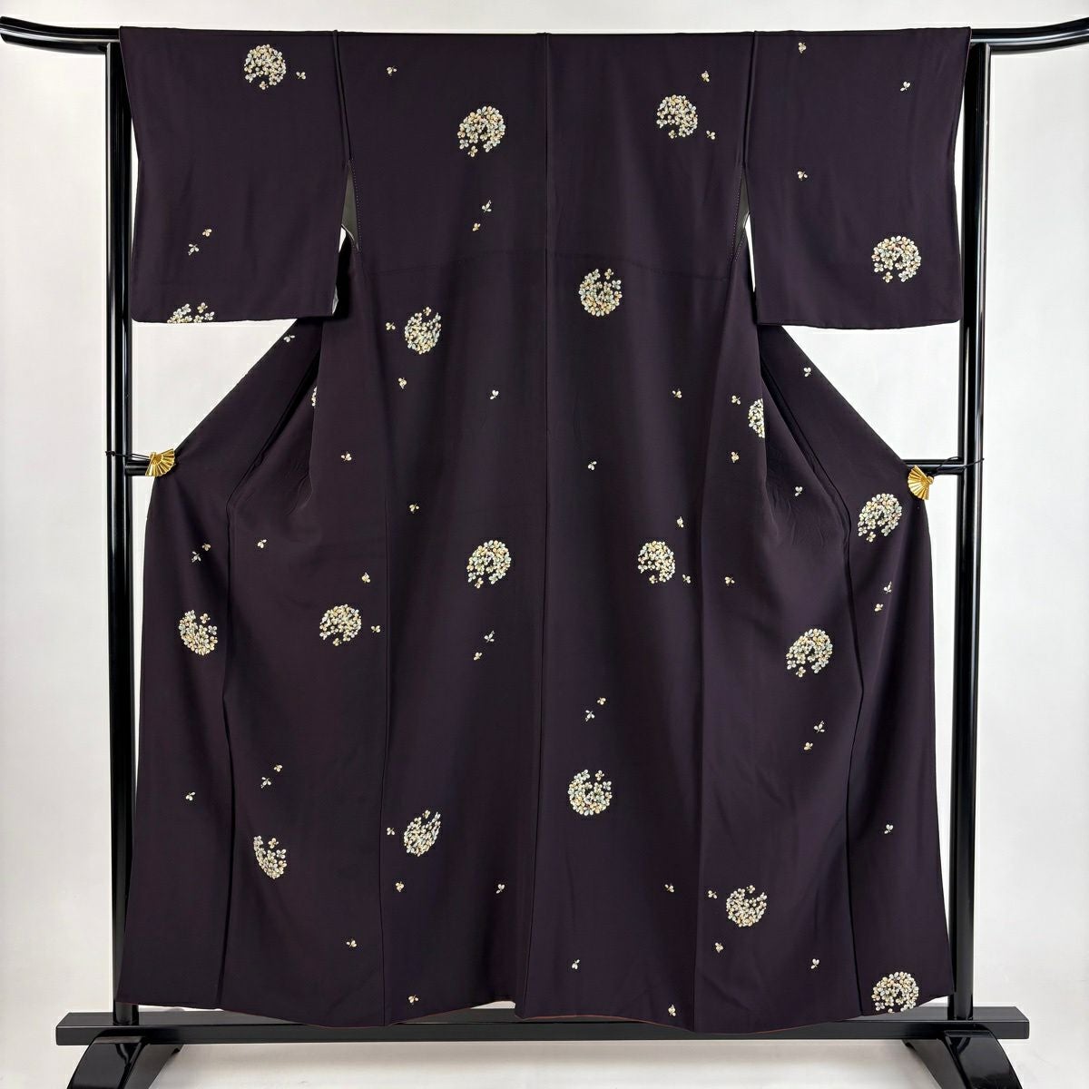 小紋 身丈155cm 裄丈64.5cm M 袷 萩 金彩 濃紫 正絹 秀品