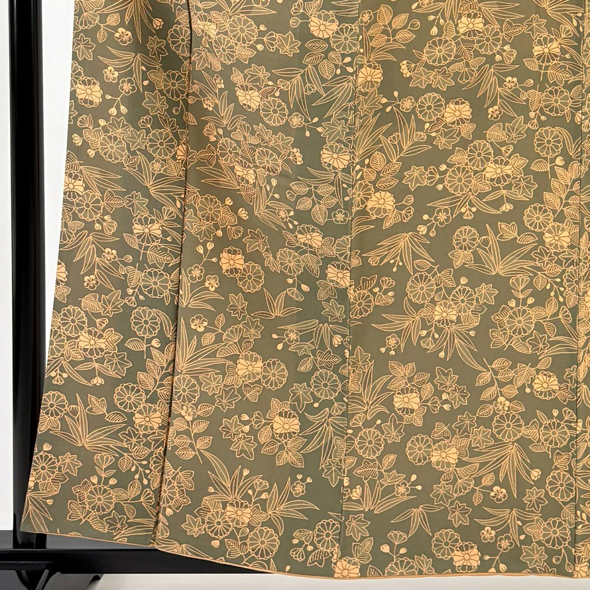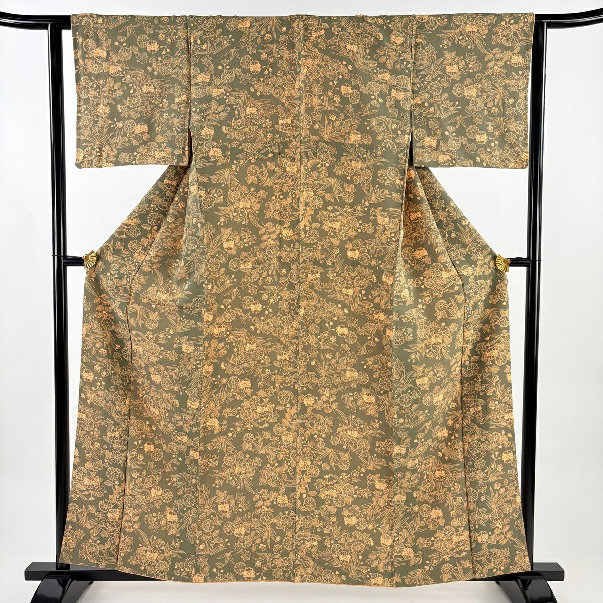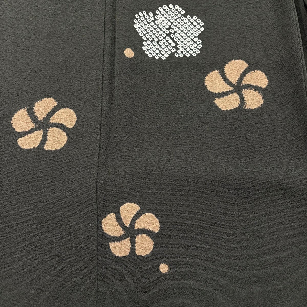 小紋 身丈160cm 裄丈62.5cm S 袷 菊 梅 灰緑 正絹 秀品