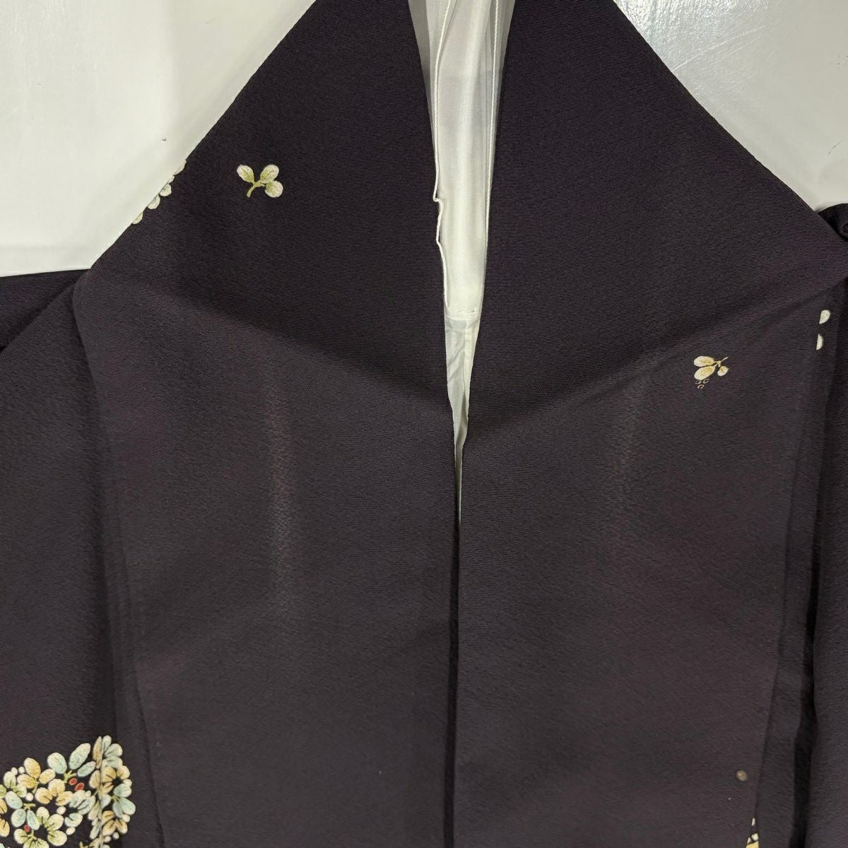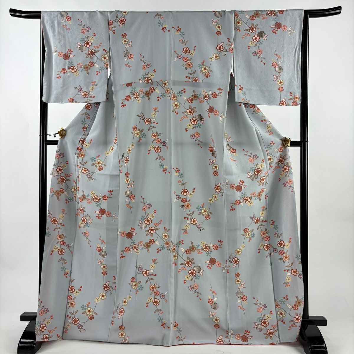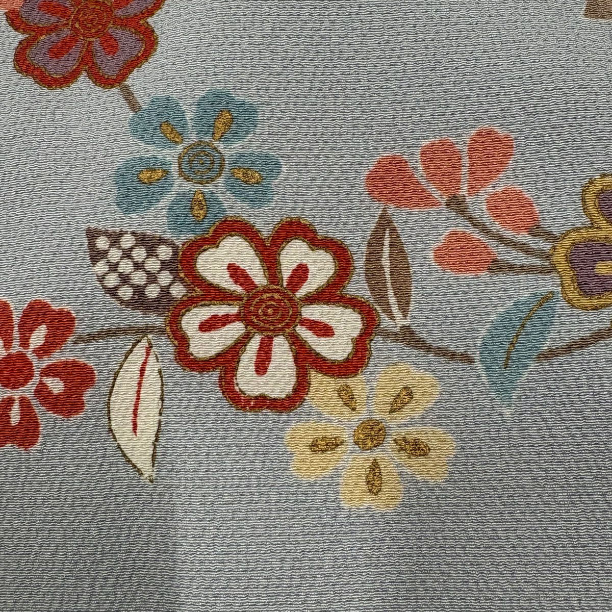 小紋 身丈160cm 裄丈62.5cm S 袷 菊 梅 灰緑 正絹 秀品