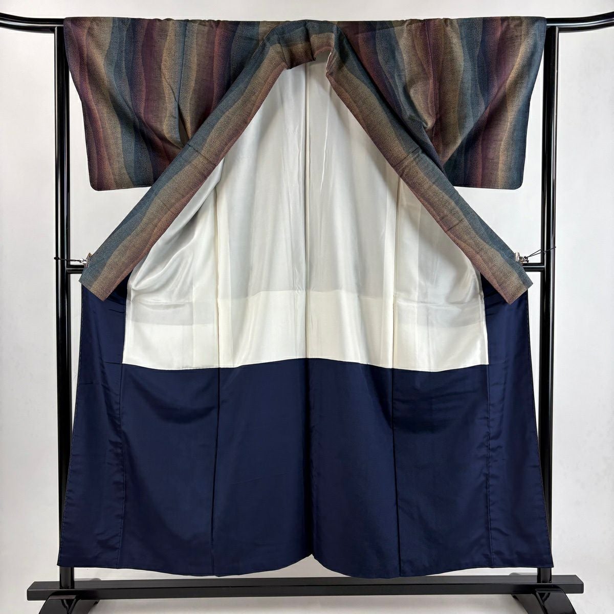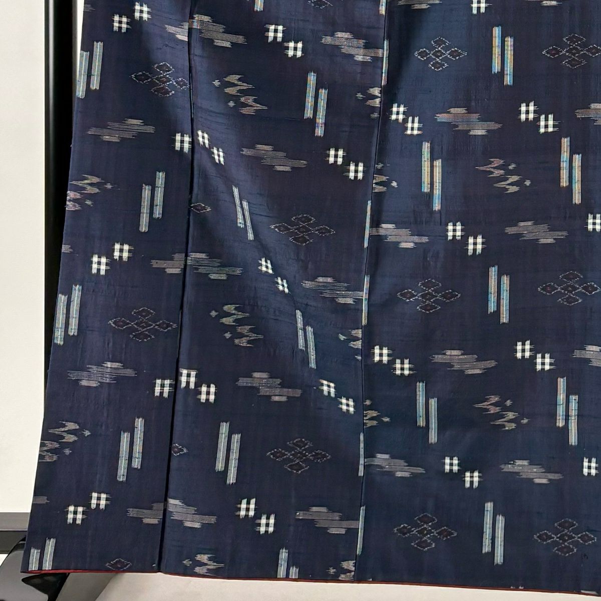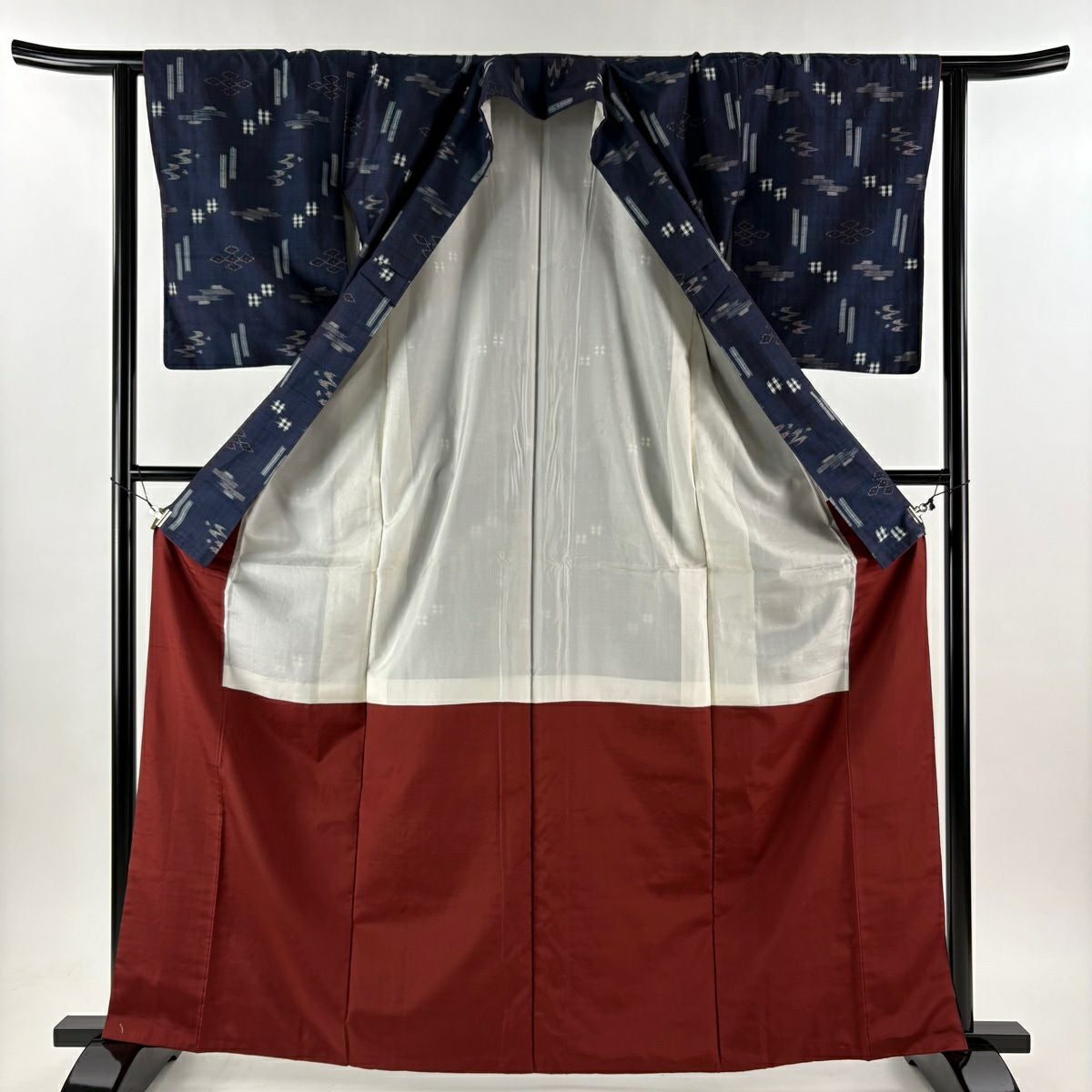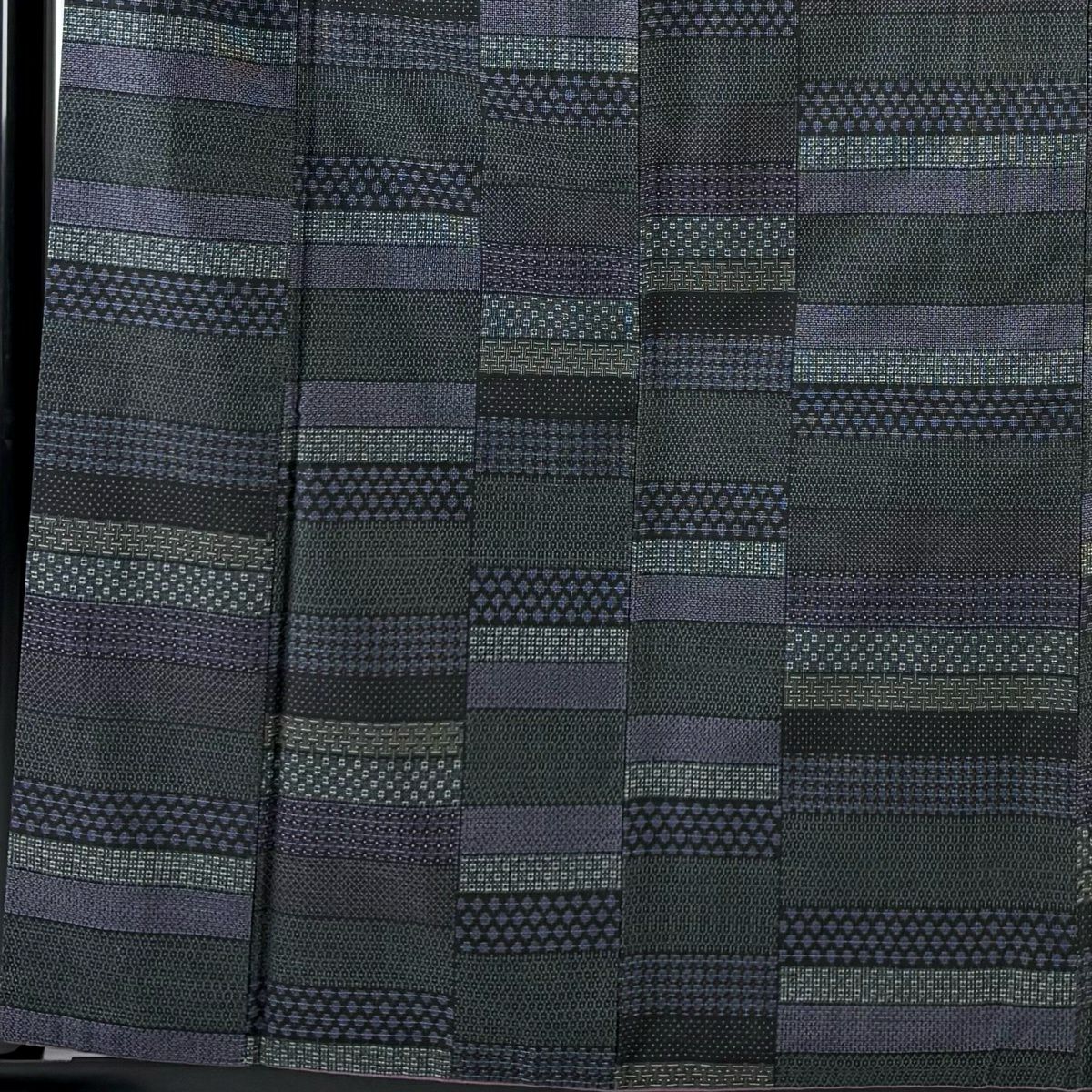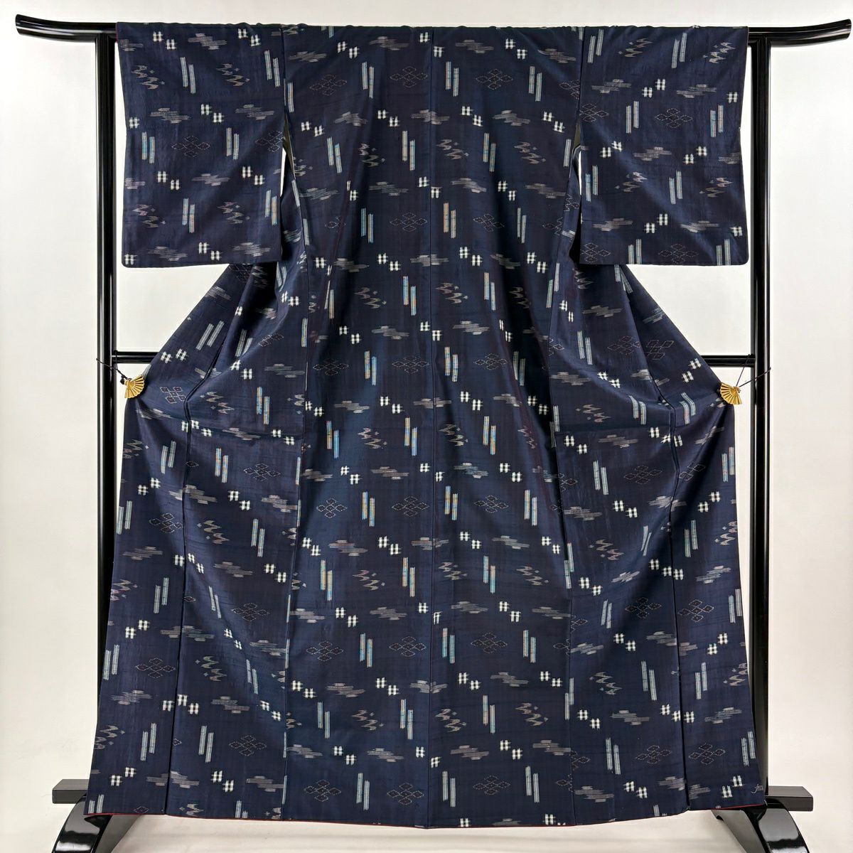 紬 身丈164.5cm 裄丈62cm S 袷 井桁 燕 紺色 正絹 秀品