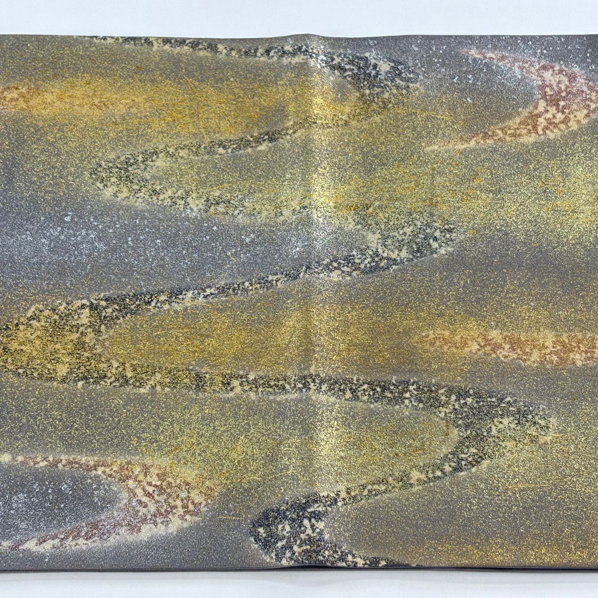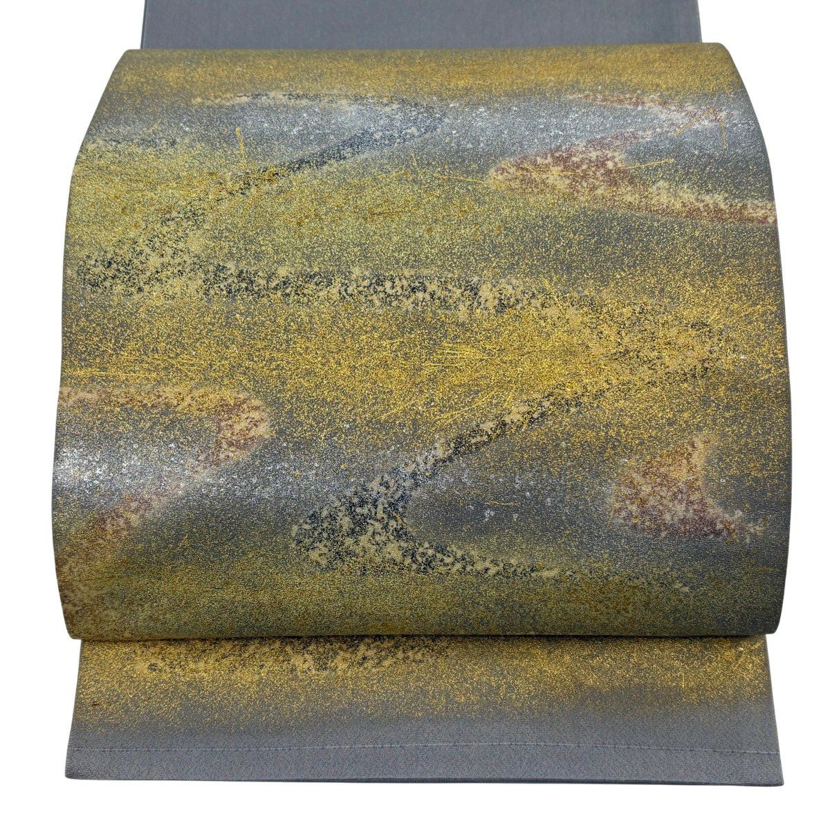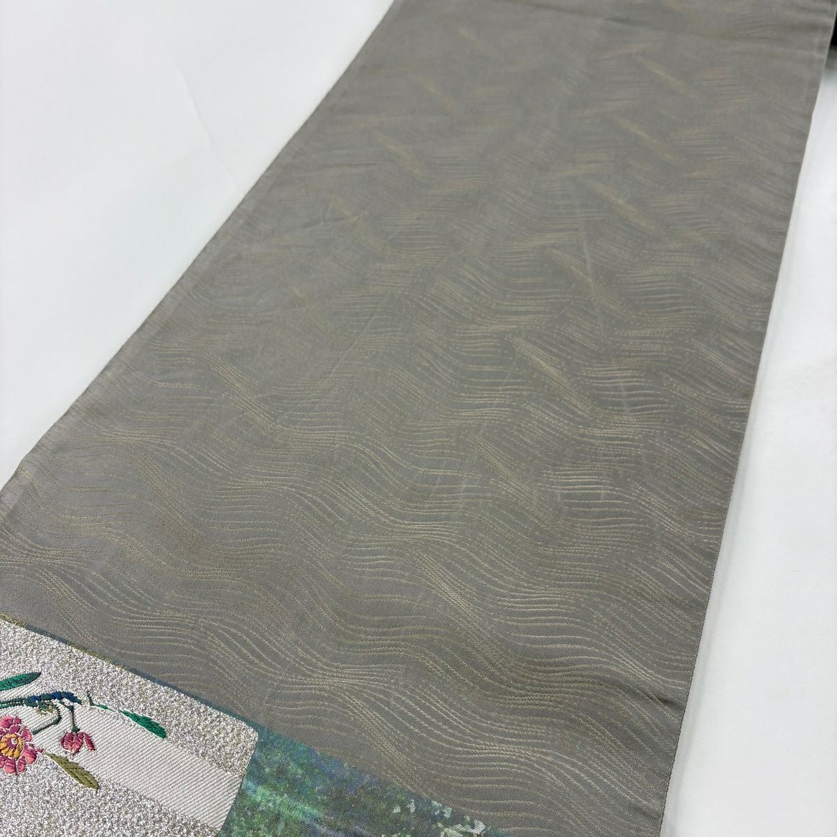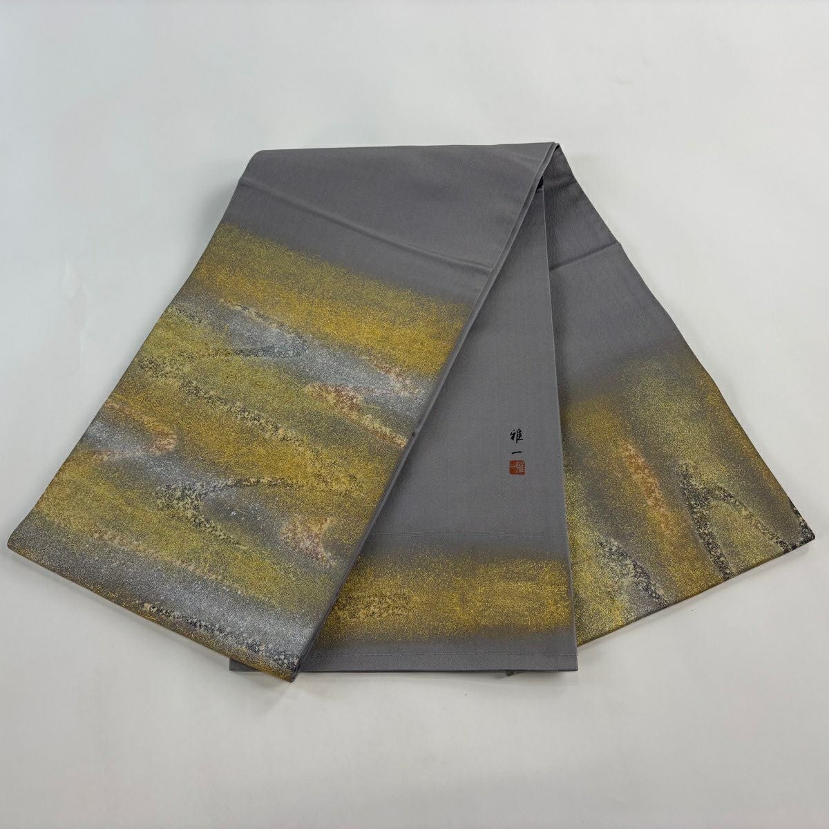 袋帯 秀品 落款あり 関西仕立て 霞 金銀彩 金糸 灰色 お太鼓柄 正絹