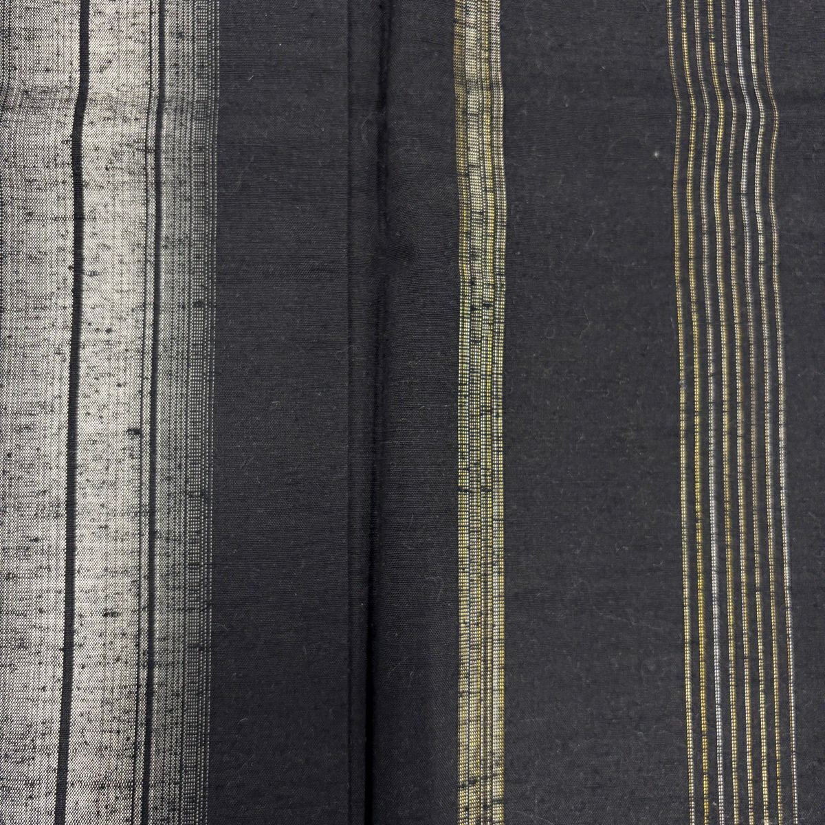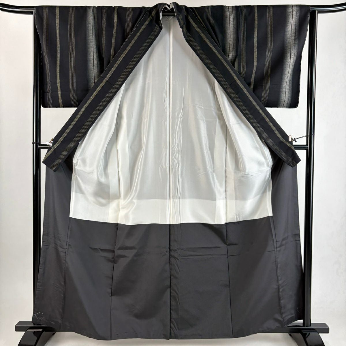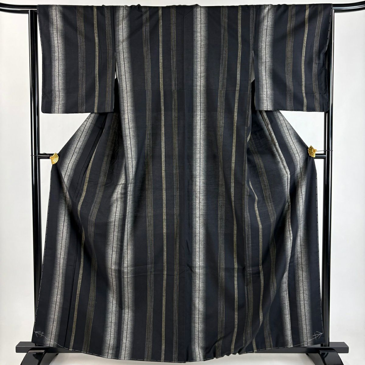 【美品】 紬 身丈163cm 裄丈64cm M 袷 縦縞 黒 正絹 秀品