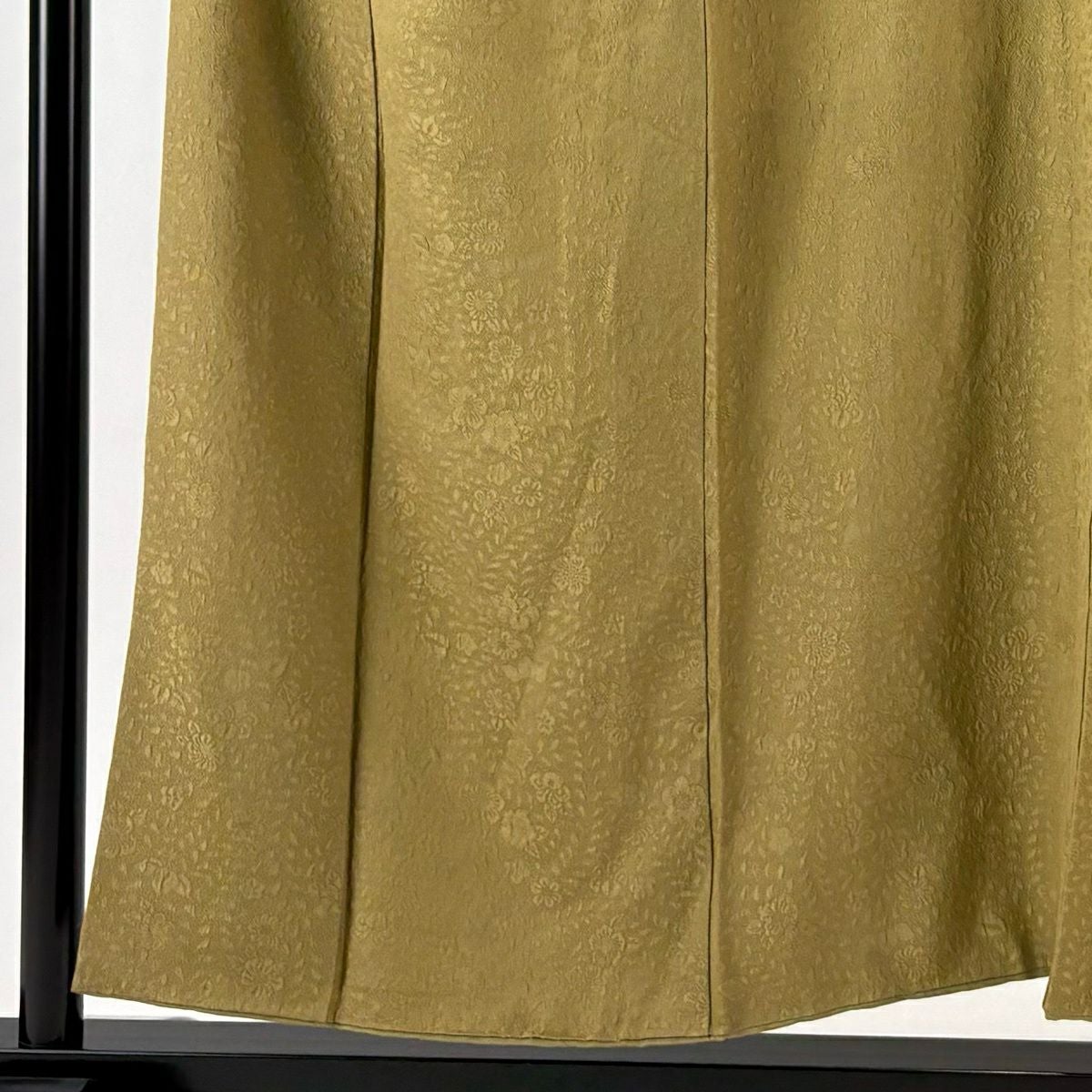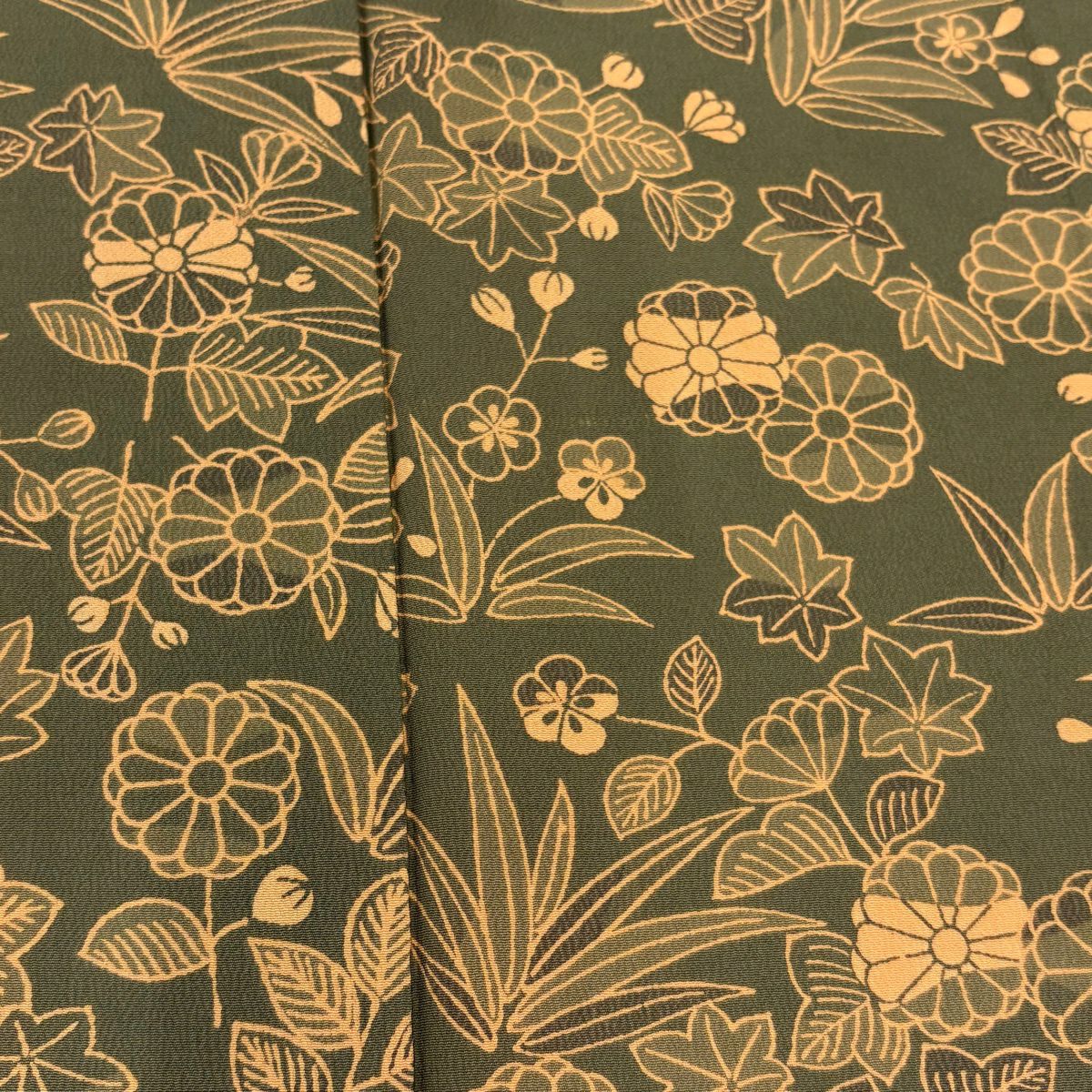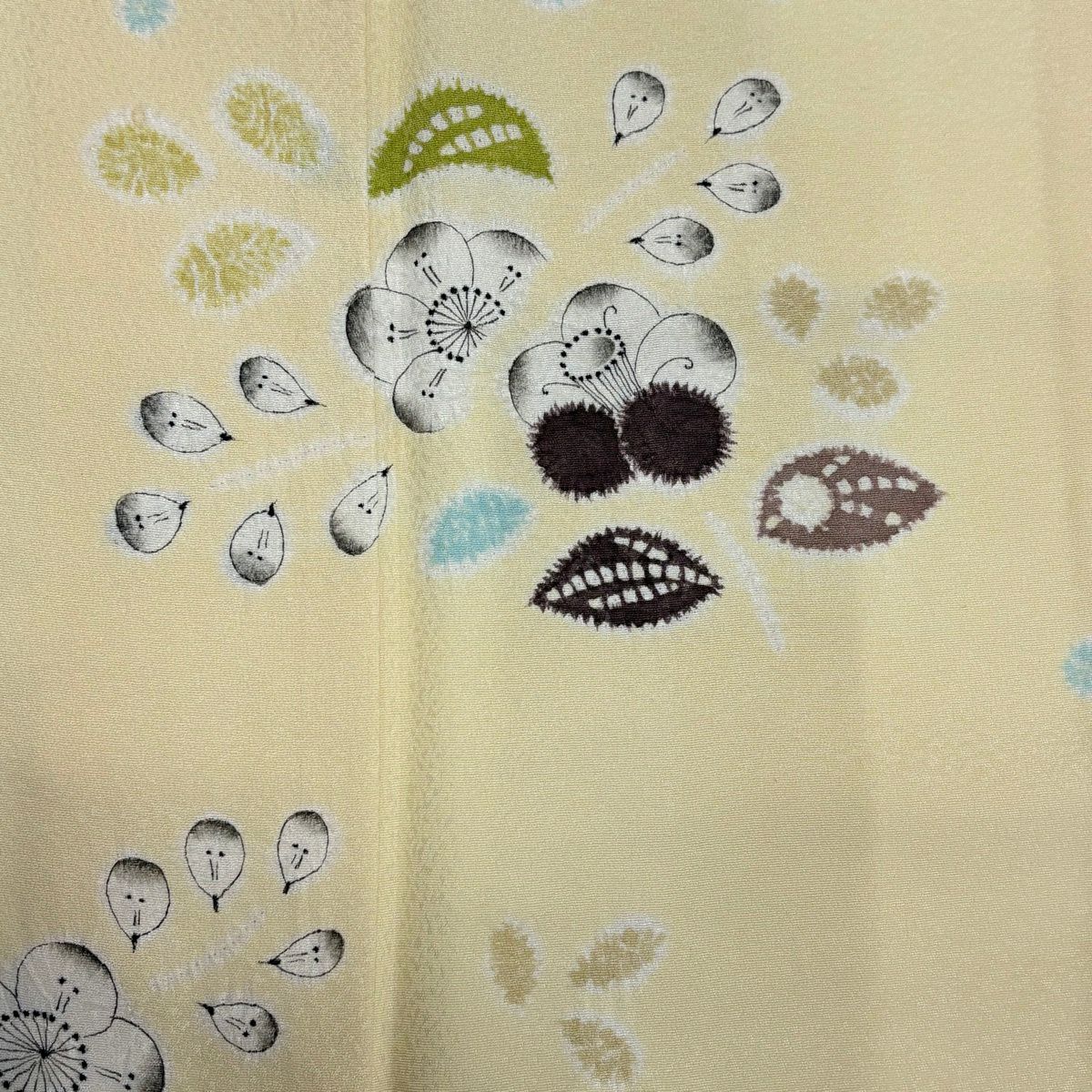 小紋 身丈152cm 裄丈64cm M 袷 草花 露芝 鶯色 正絹 秀品