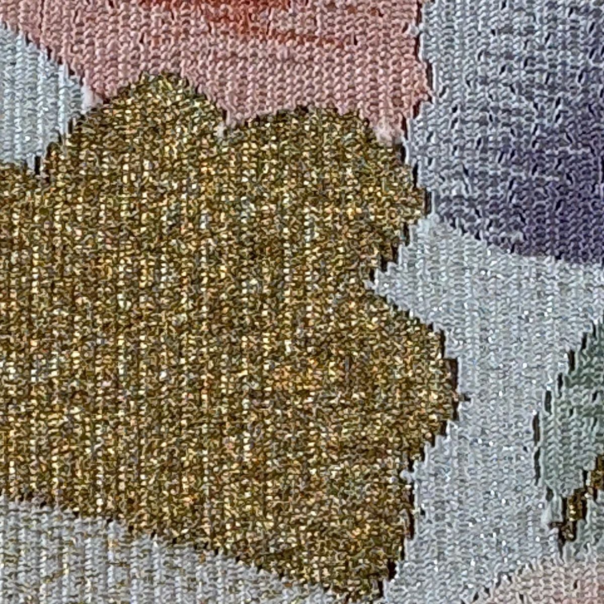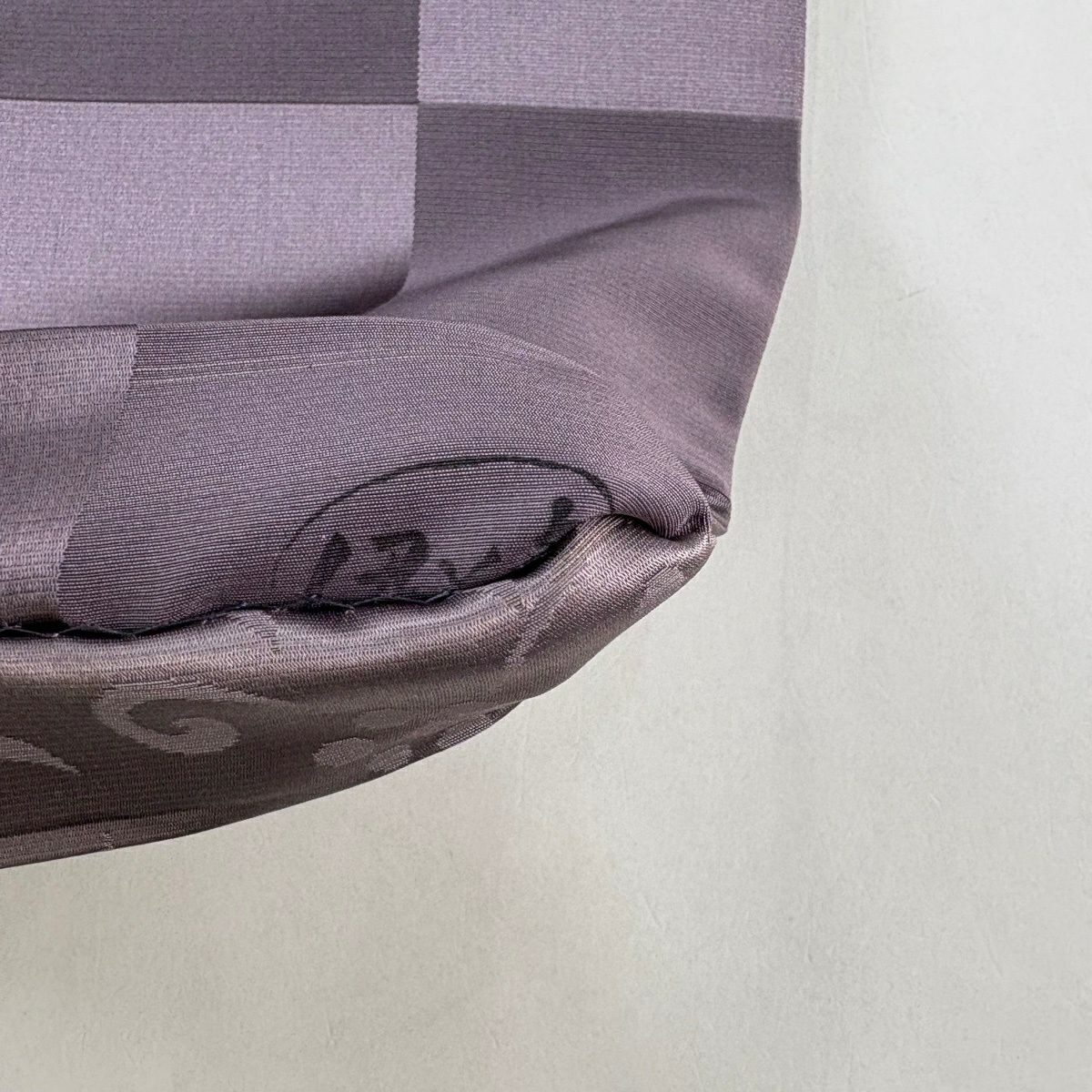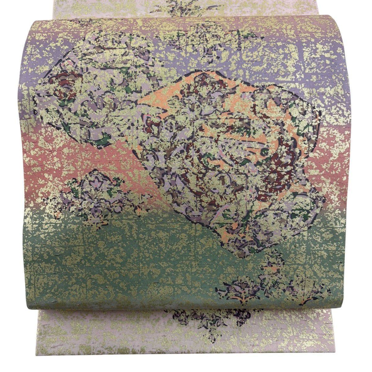 袋帯 秀品 紬地 草花 幾何学模様 銀彩 ぼかし 薄紫 お太鼓柄 正絹