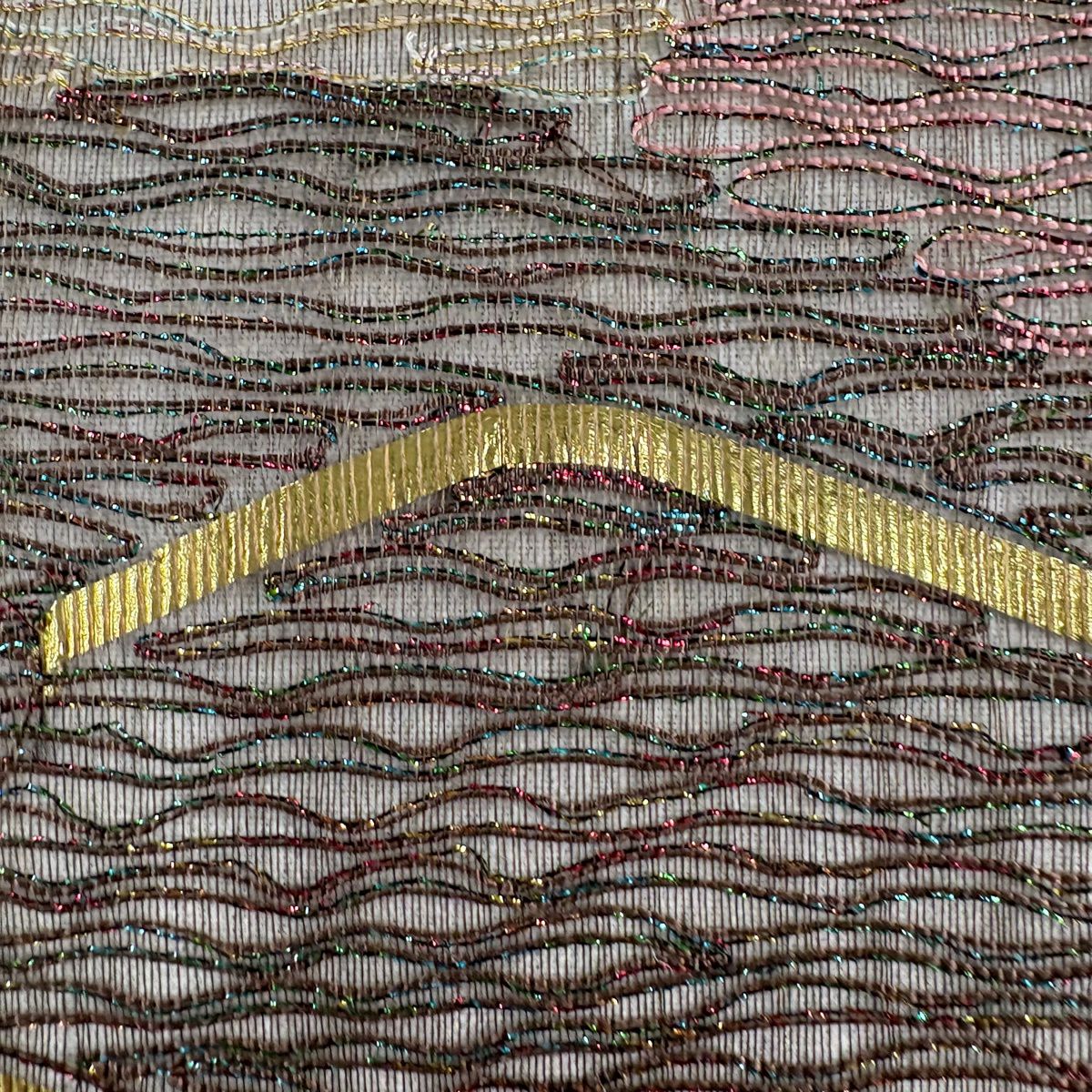 【美品】 袋帯 秀品 雪輪 波涛 金糸 唐織 ベージュ 六通 正絹