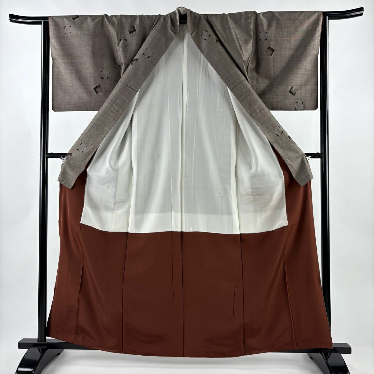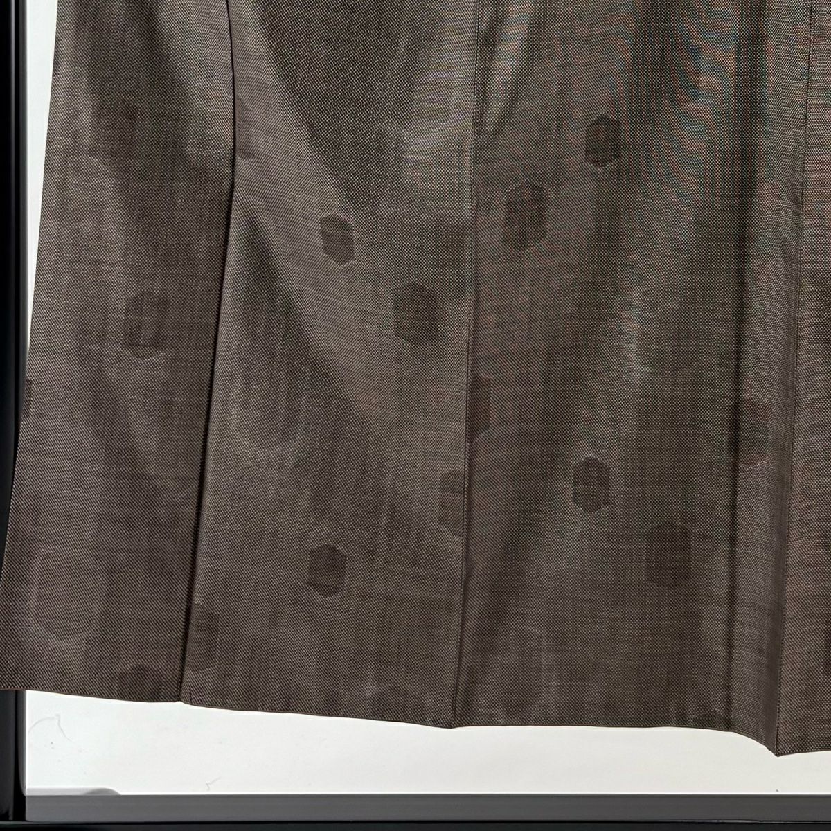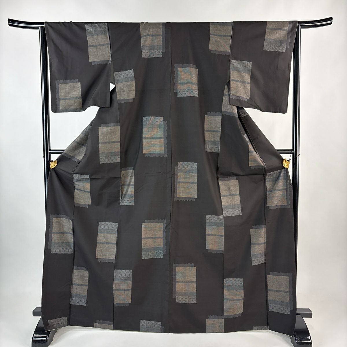紬 身丈152cm 裄丈65cm M 袷 幾何学模様 焦茶色 正絹 秀品