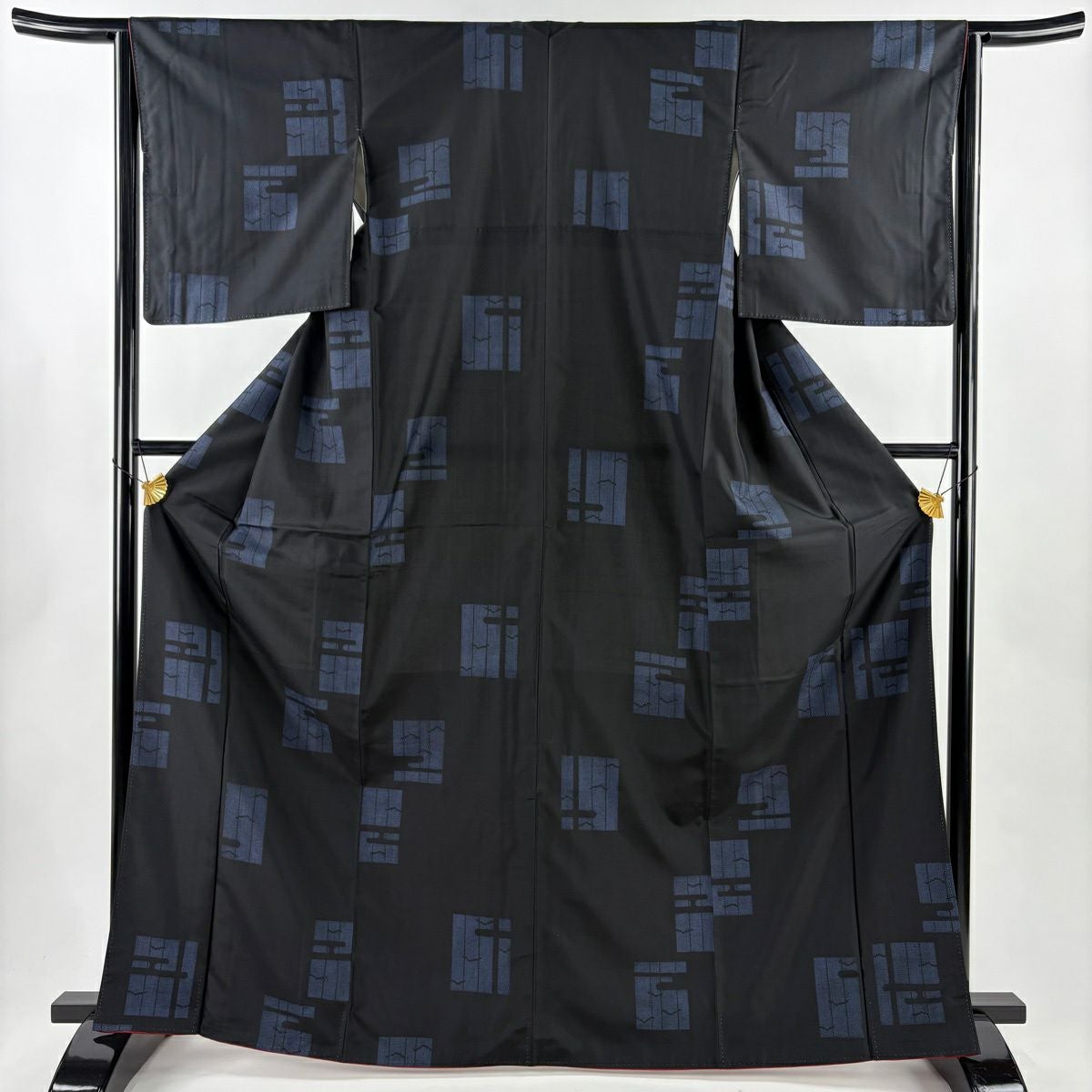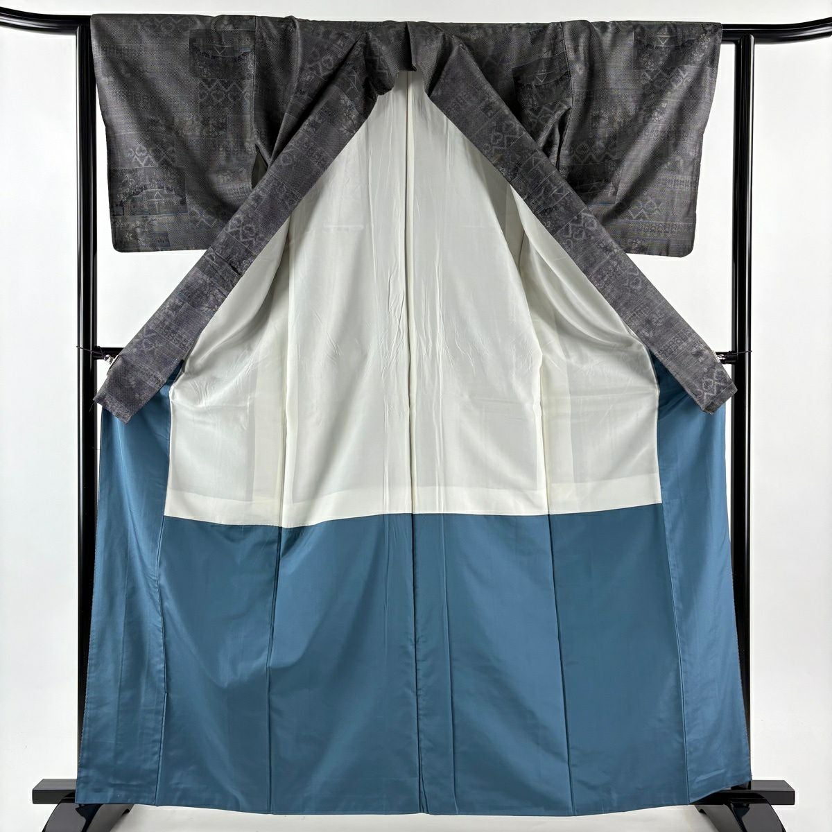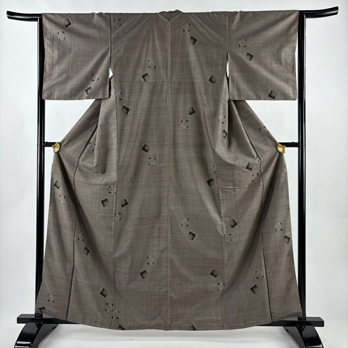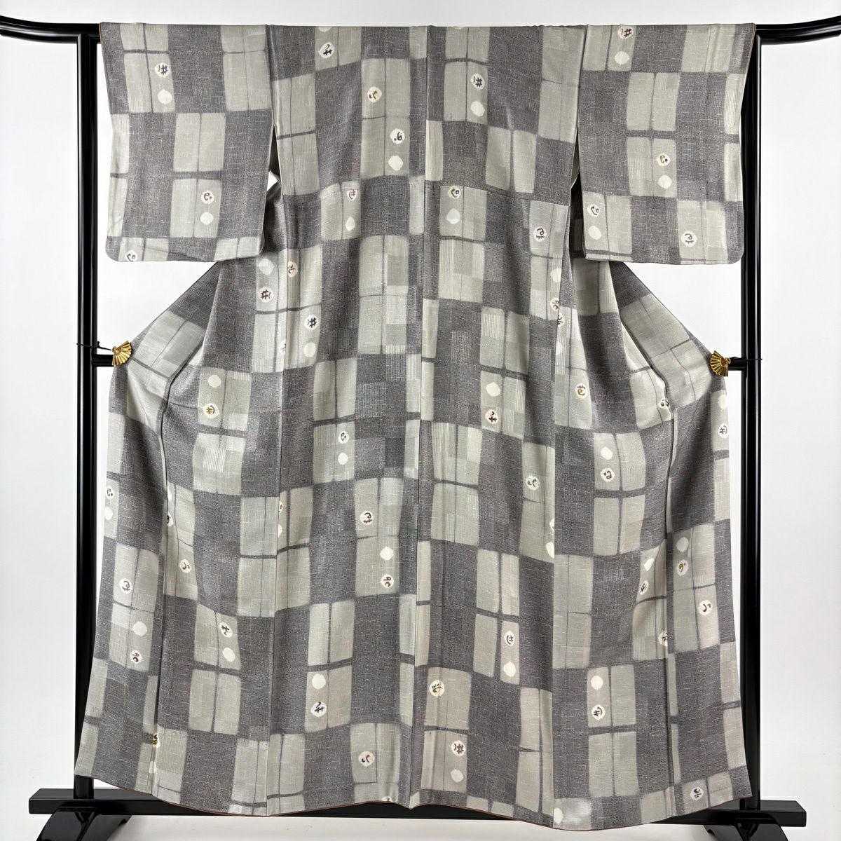 小紋 身丈158cm 裄丈64cm M 袷 幾何学模様 灰色 正絹 秀品
